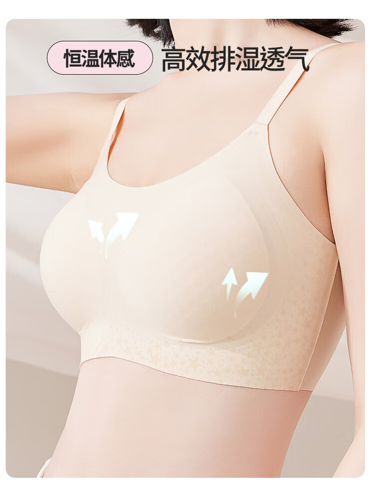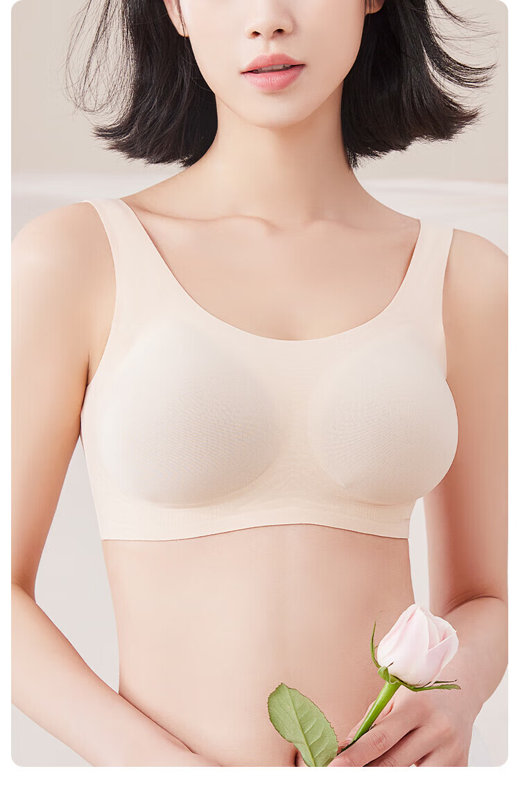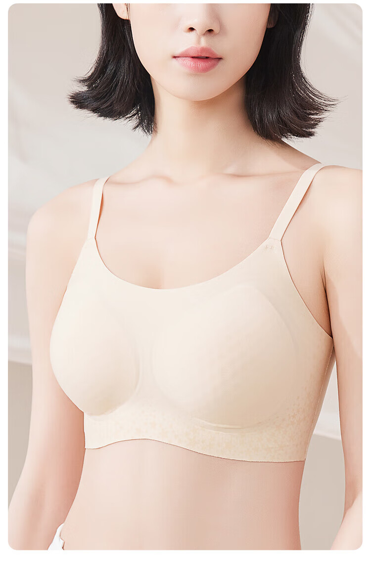 MiiOW Vest Bra Women's Underwear Seamless Wireless Breast-Reducing Push-Up Bra No Size Bra Thin Straps - Oatmeal Skin (Bra + Panties) One Size - Slim Version (Recommended 80-120 Jin Jin is equal to 0.5 kg)