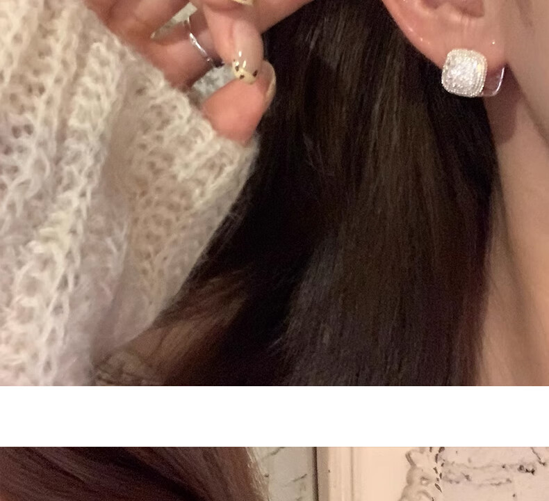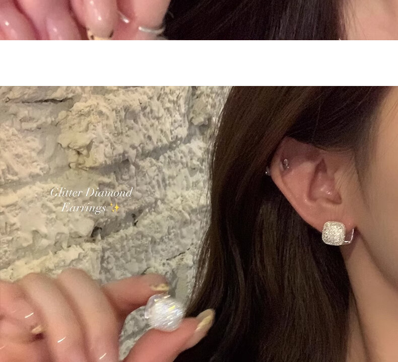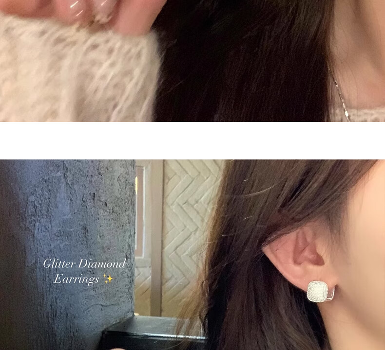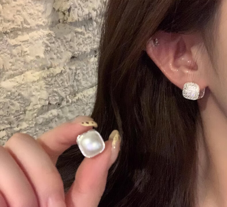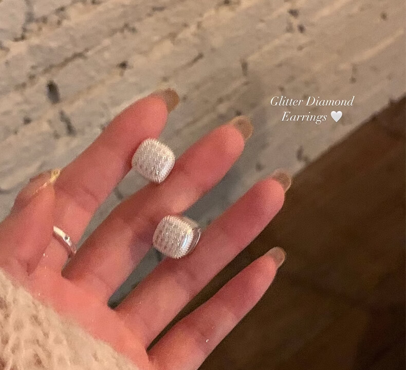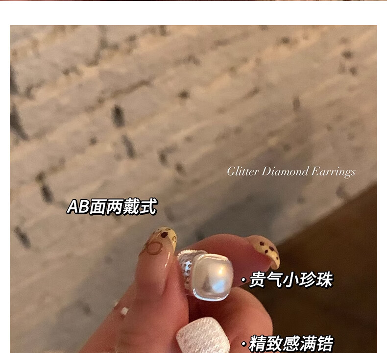 Idel Korean temperament fine glitter sugar cube imitation pearl earrings women's light luxury high-end earrings unique double-sided earrings E3782 fine glitter sugar cube earrings