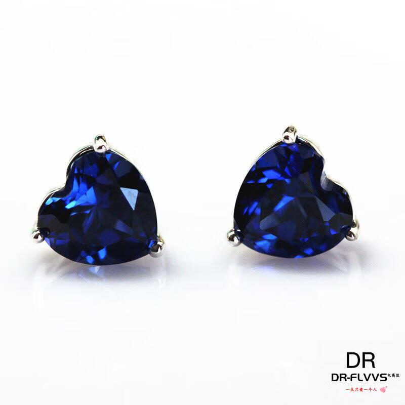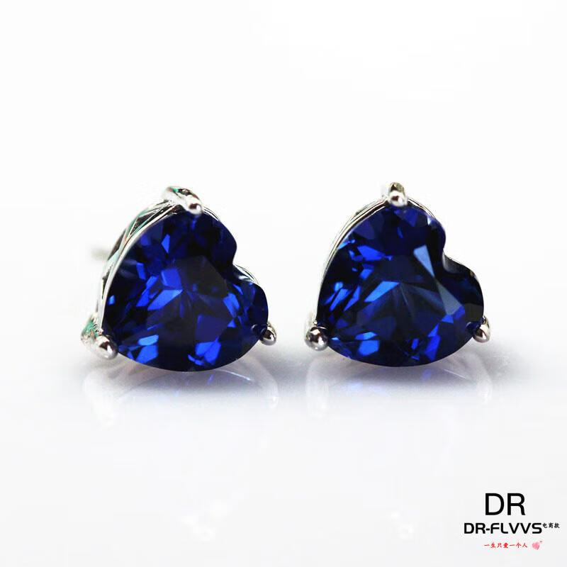 Fat Donglai's same Tanzanite sapphire fashionable heart-shaped stone earrings earrings Korean main stone 7X7mm