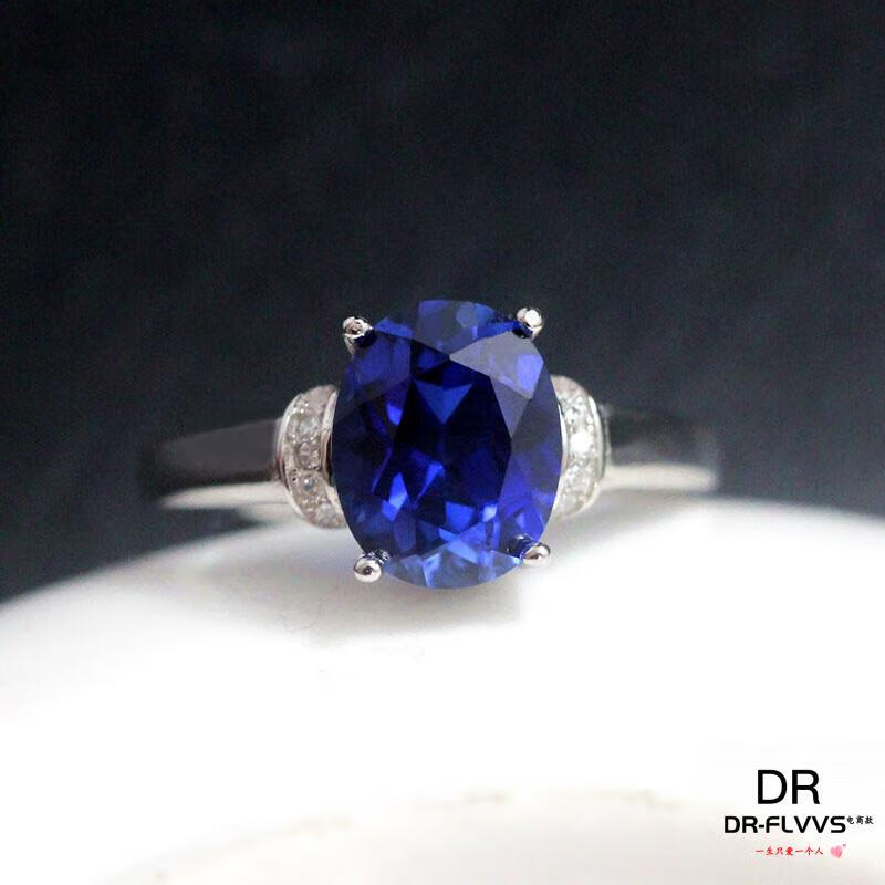 Fat Donglai's same style Tanzanite sapphire ring for women, oval stone, silver plated 18K gold, white gold (main stone 6X8mm) live mouth