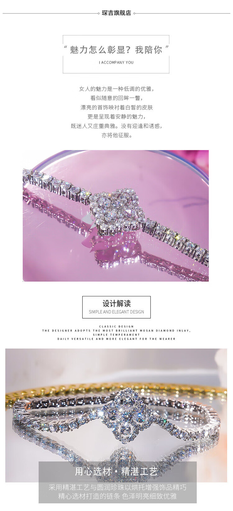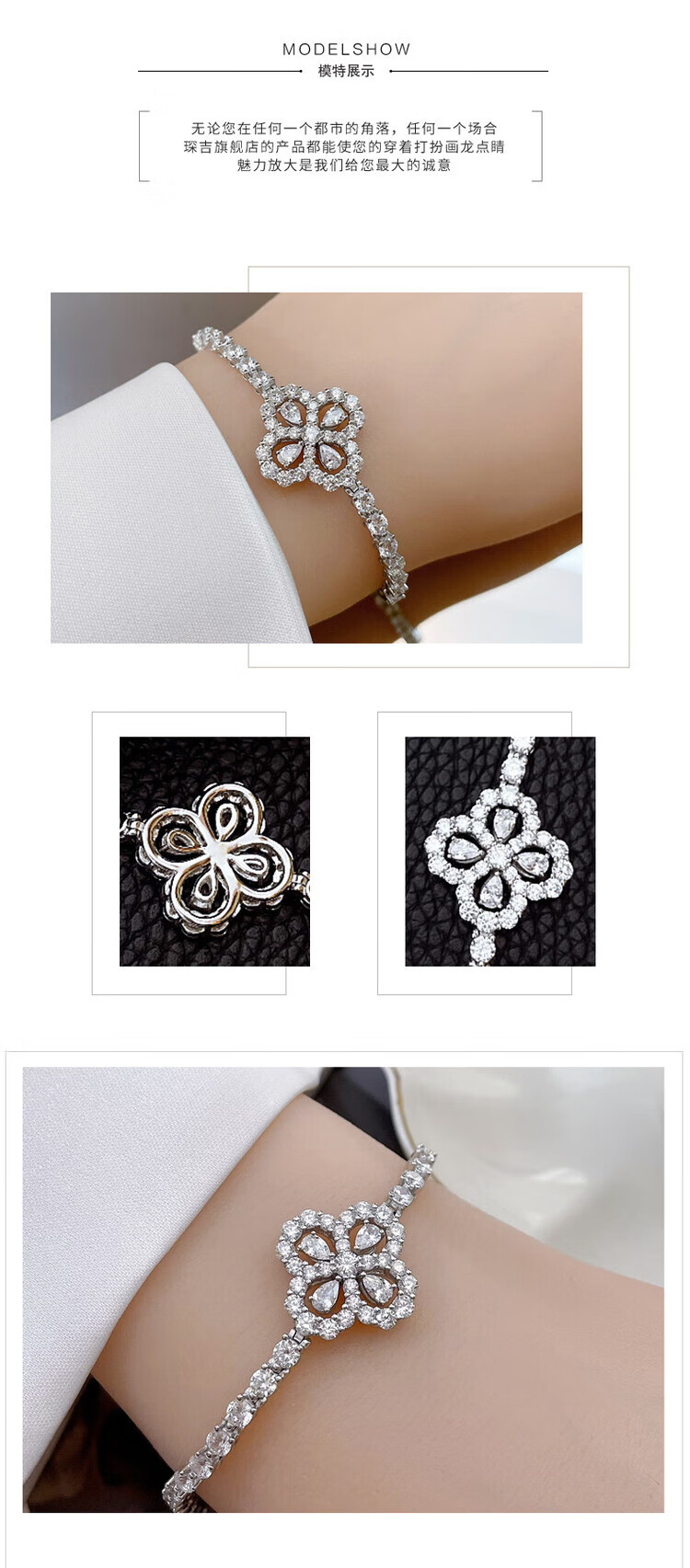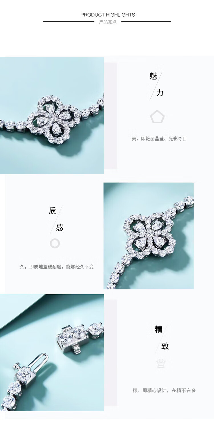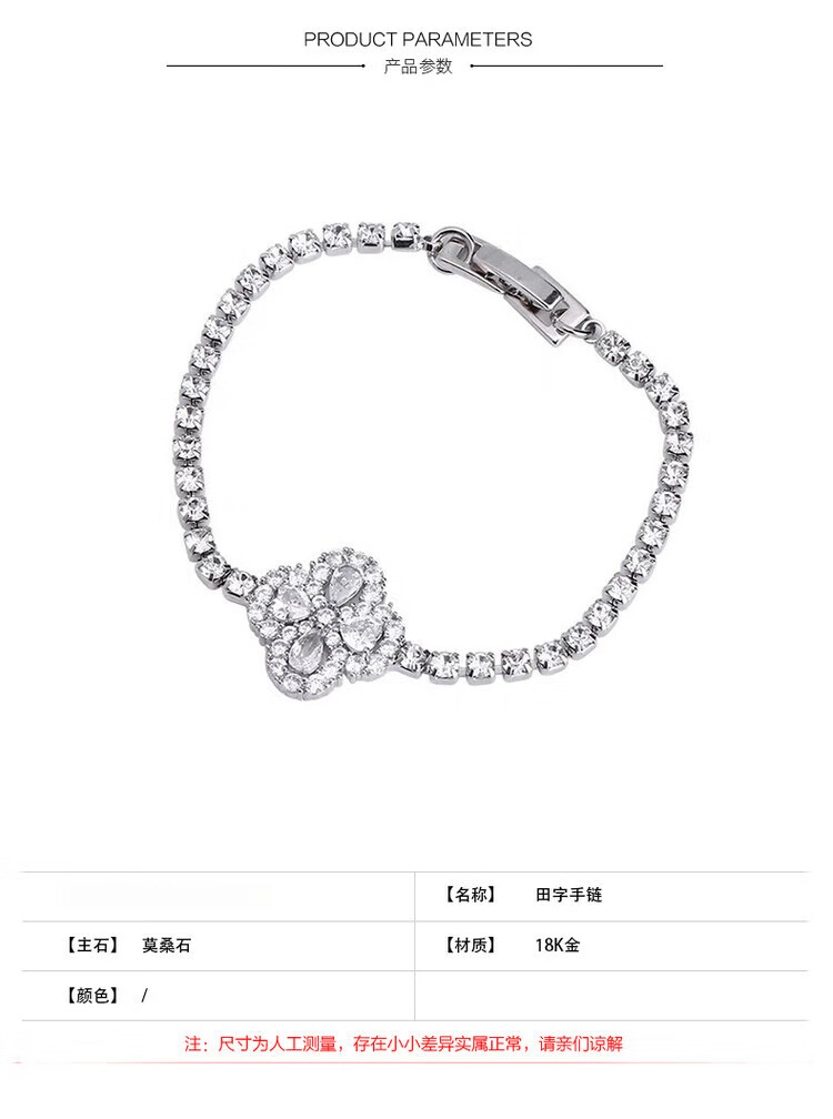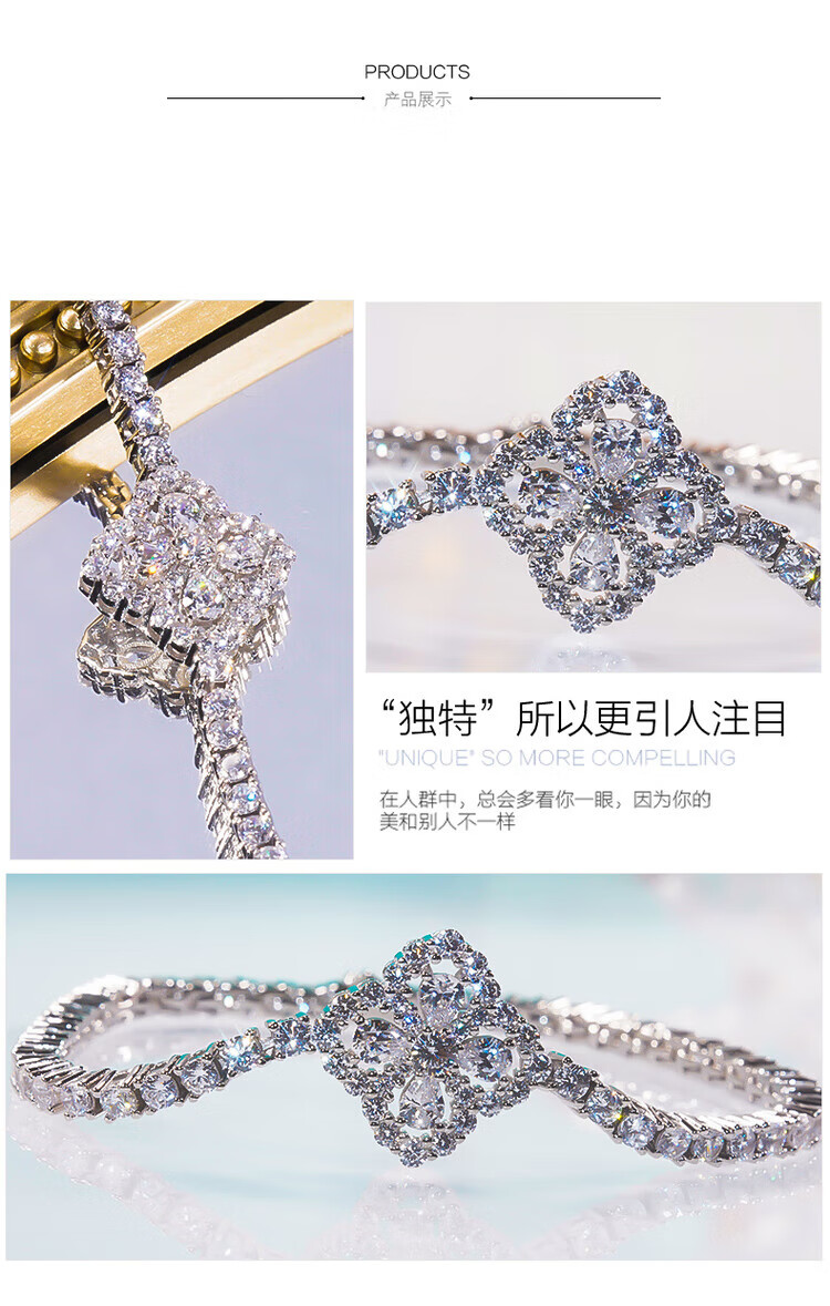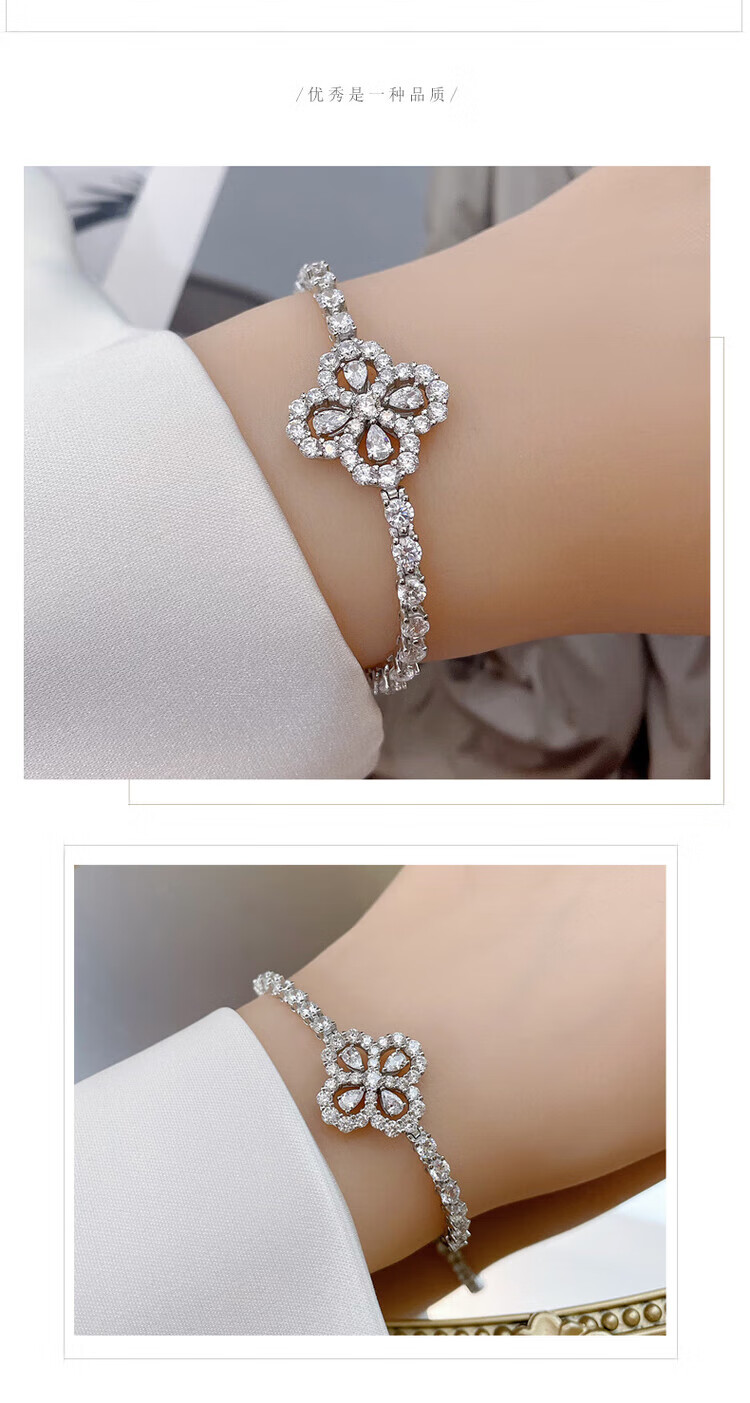 Chi Xing Super Flash Full Diamond Four-leaf Clover Bracelet Women's Foot Silver Non-Fading Bracelet Fashionable Simple 18K Gold Moissanite Bracelet White Gold