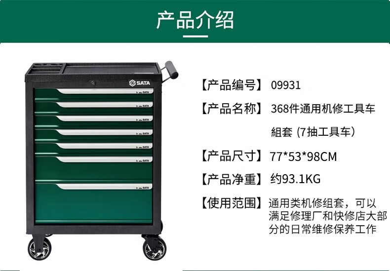Shida Tool Cart Auto Repair Tool Set Auto Repair Tool Cart Set 368 Pieces Set 09931 Shida Tool Set 95125 Auto Repair 4 Drawer 2 Door Tool Cart (Tools Not Included)