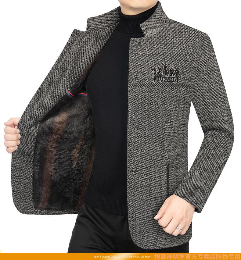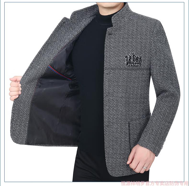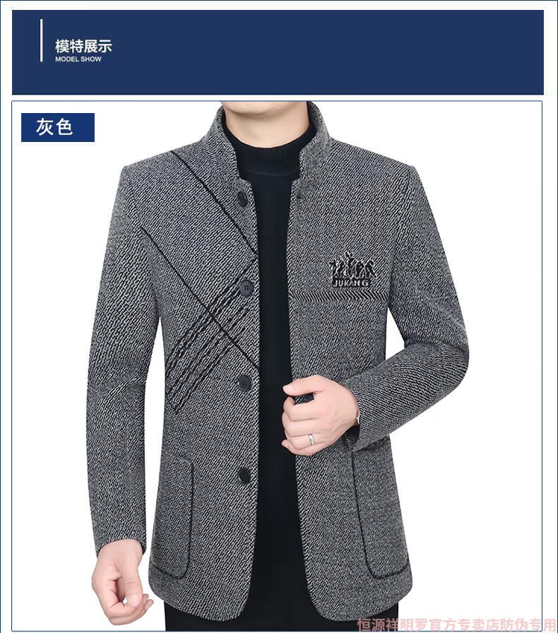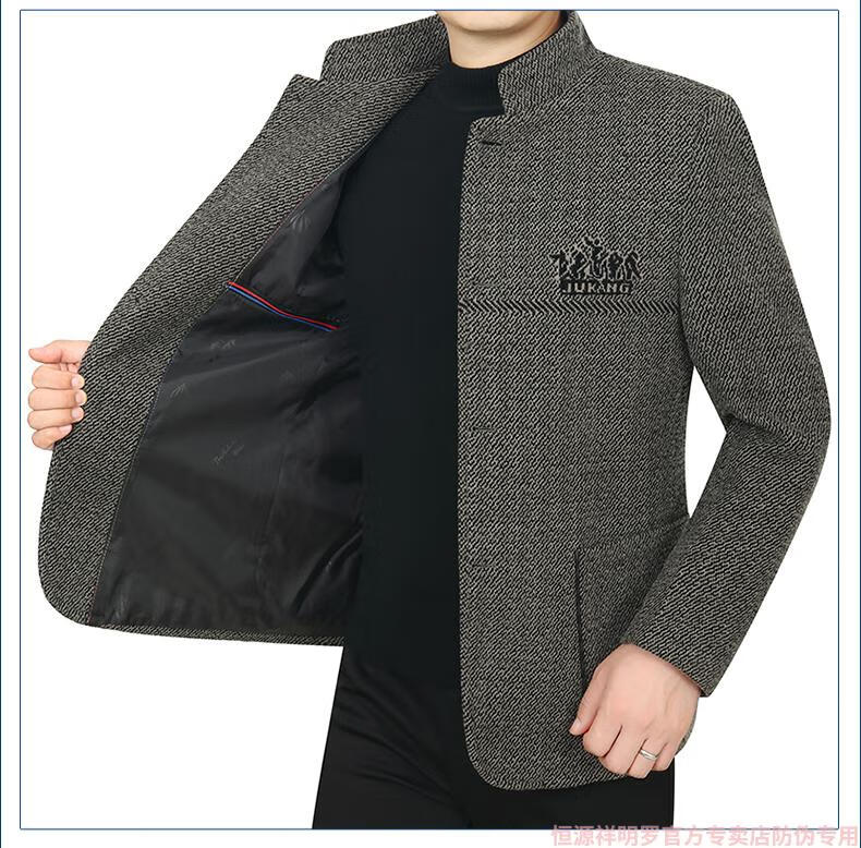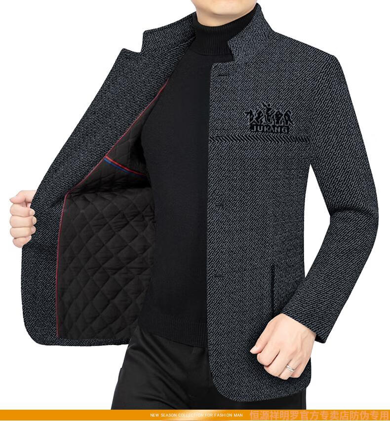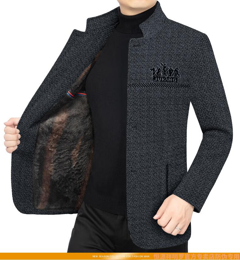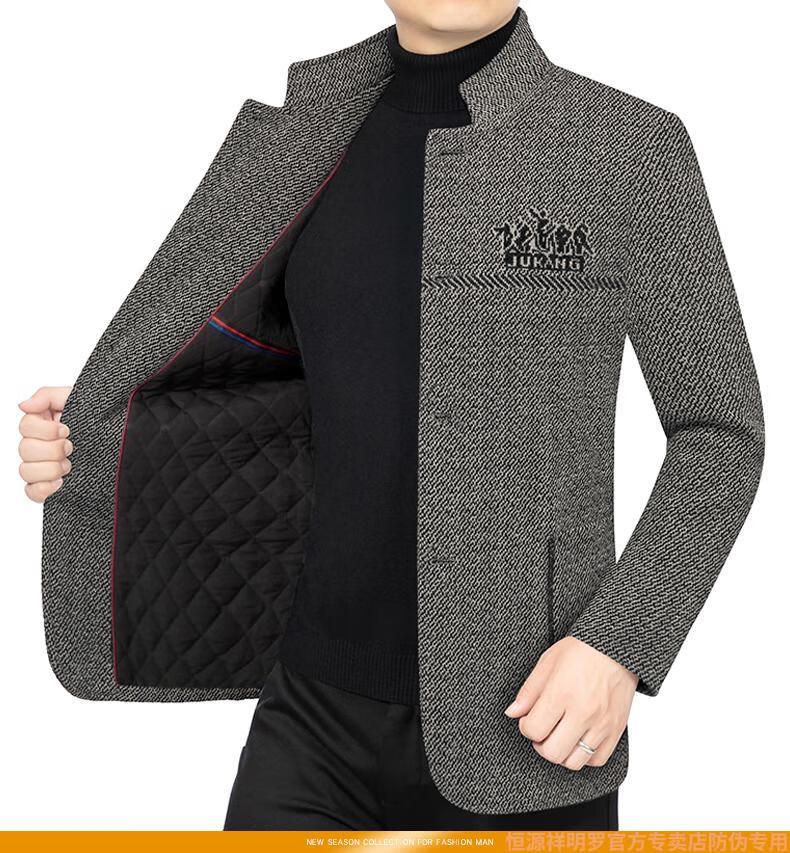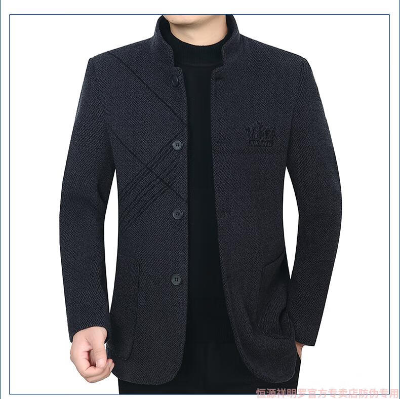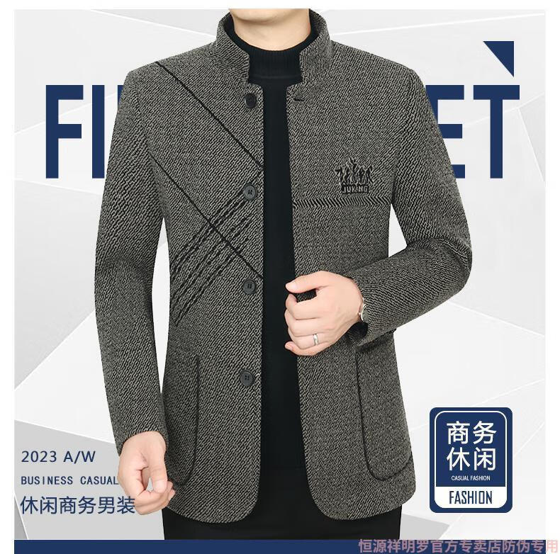 Hengyuanxiang woolen suit jacket men's 2024 autumn and winter stand-up collar woolen jacket business casual tunic top dark gray 2429D cotton high-end woolen thickened 175/L suitable for 115-135Jin Jin equals 0.5 kg