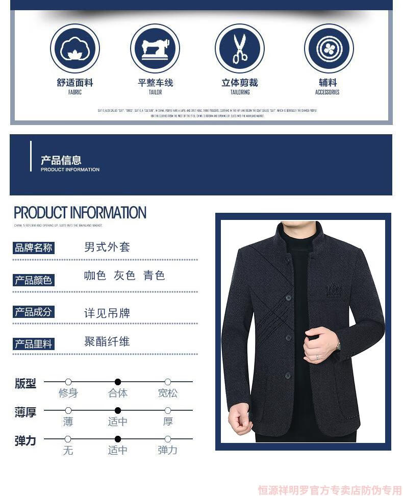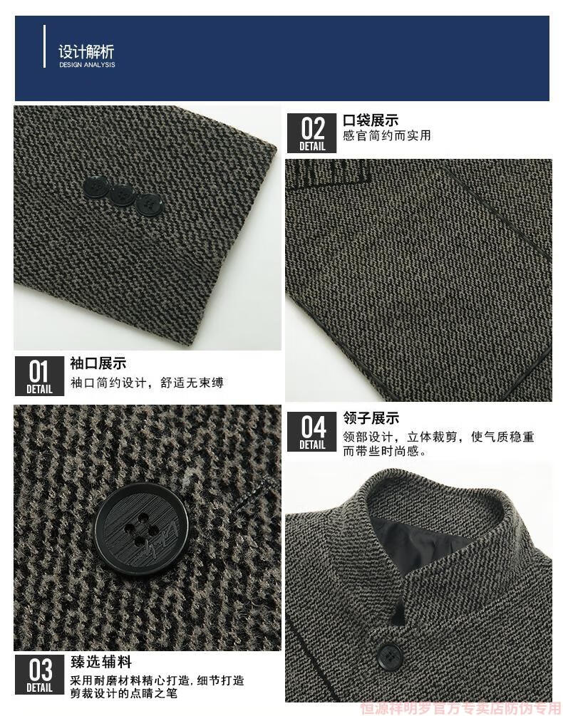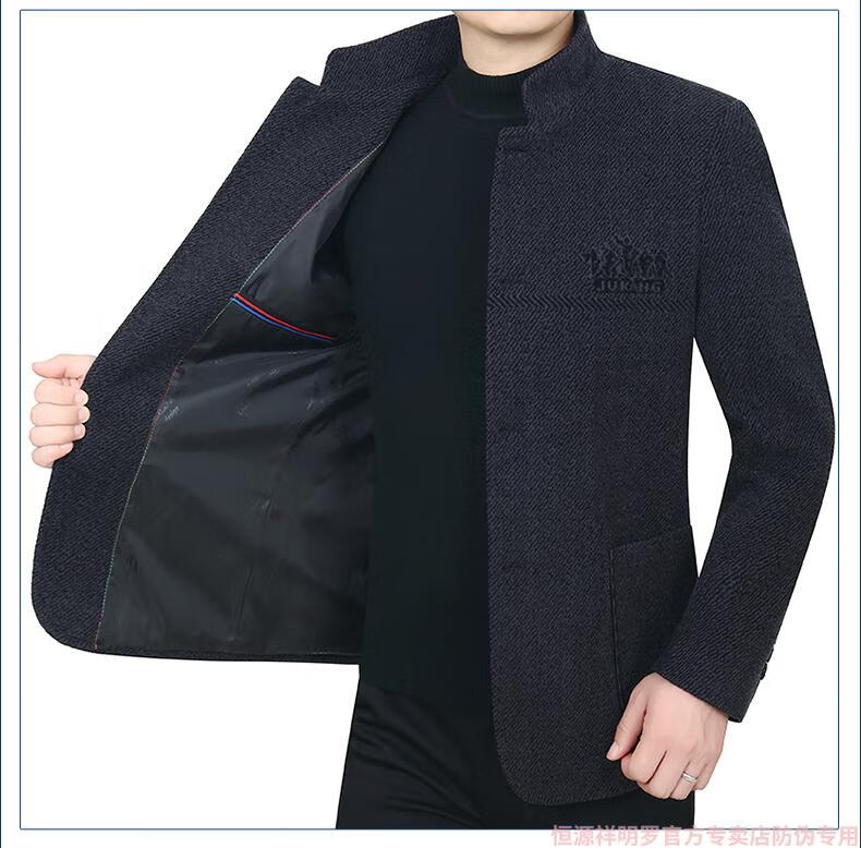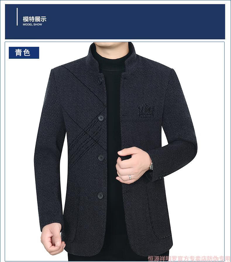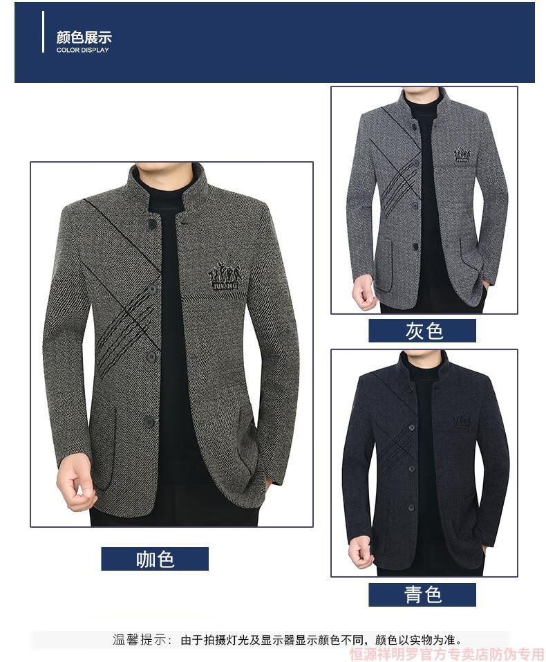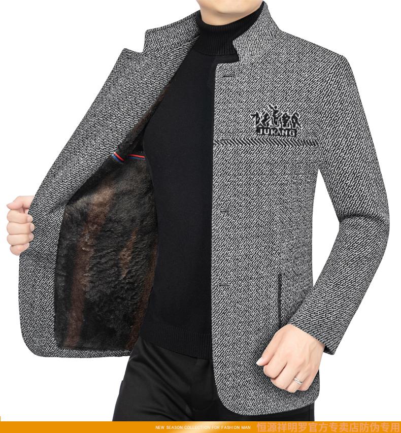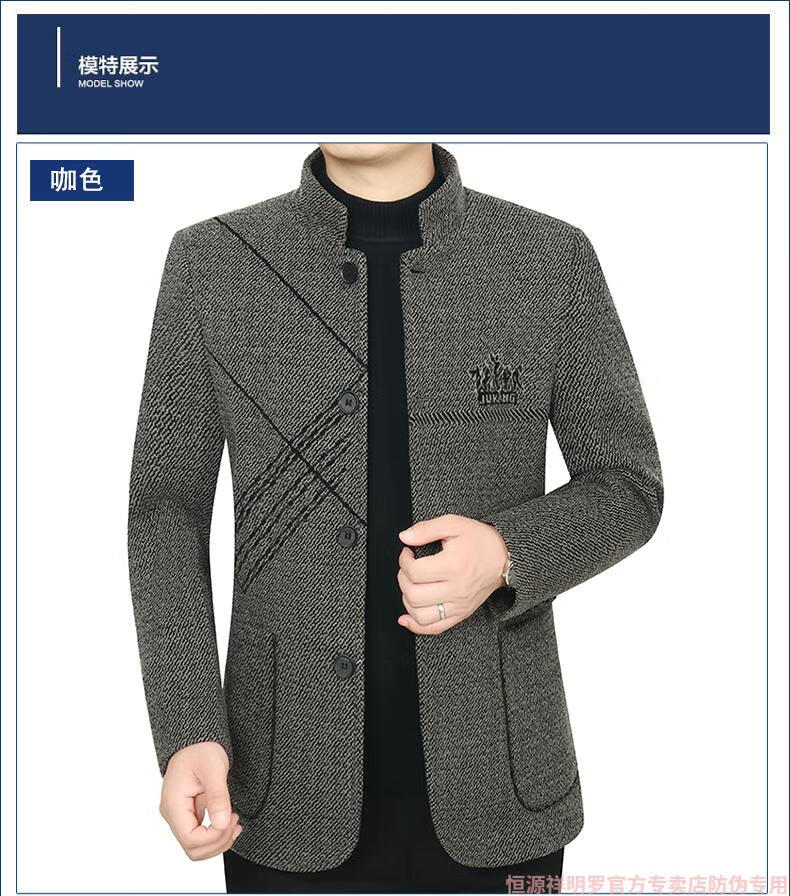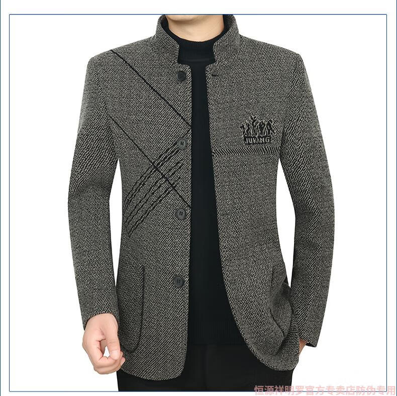 Hengyuanxiang woolen suit jacket men's 2024 autumn and winter stand-up collar woolen jacket business casual tunic top dark gray 2429D cotton high-end woolen thickened 175/L suitable for 115-135Jin Jin equals 0.5 kg