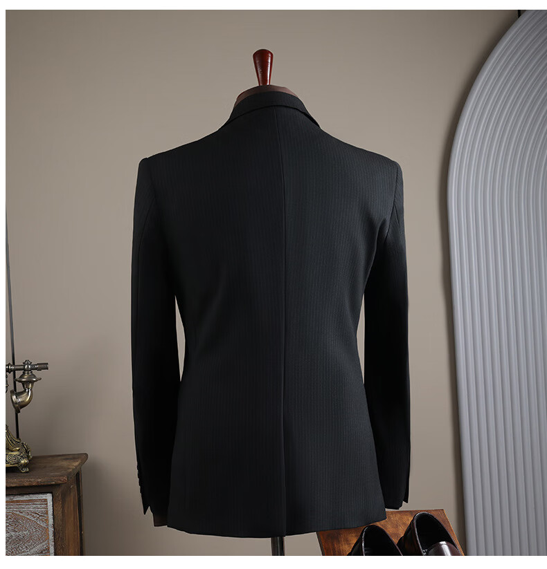 ROMON fashion striped suit suit men's business casual banquet wedding dress professional formal suit men's suit black (suit + trousers) XL 52 (125-138Jin Jin equals 0.5 kg)