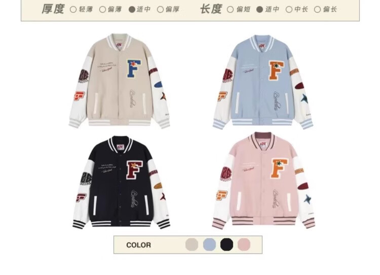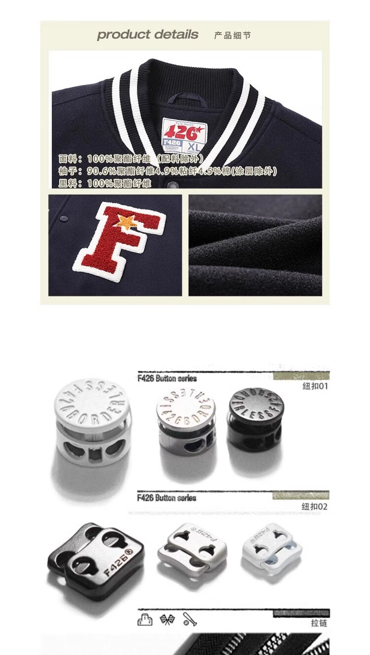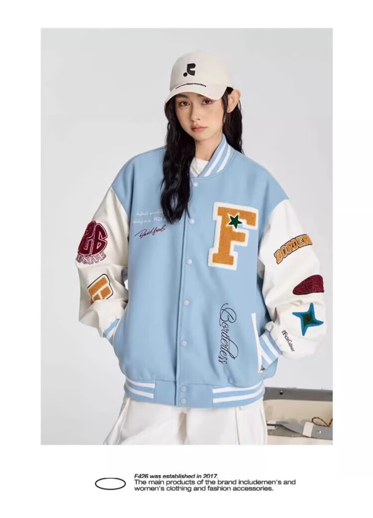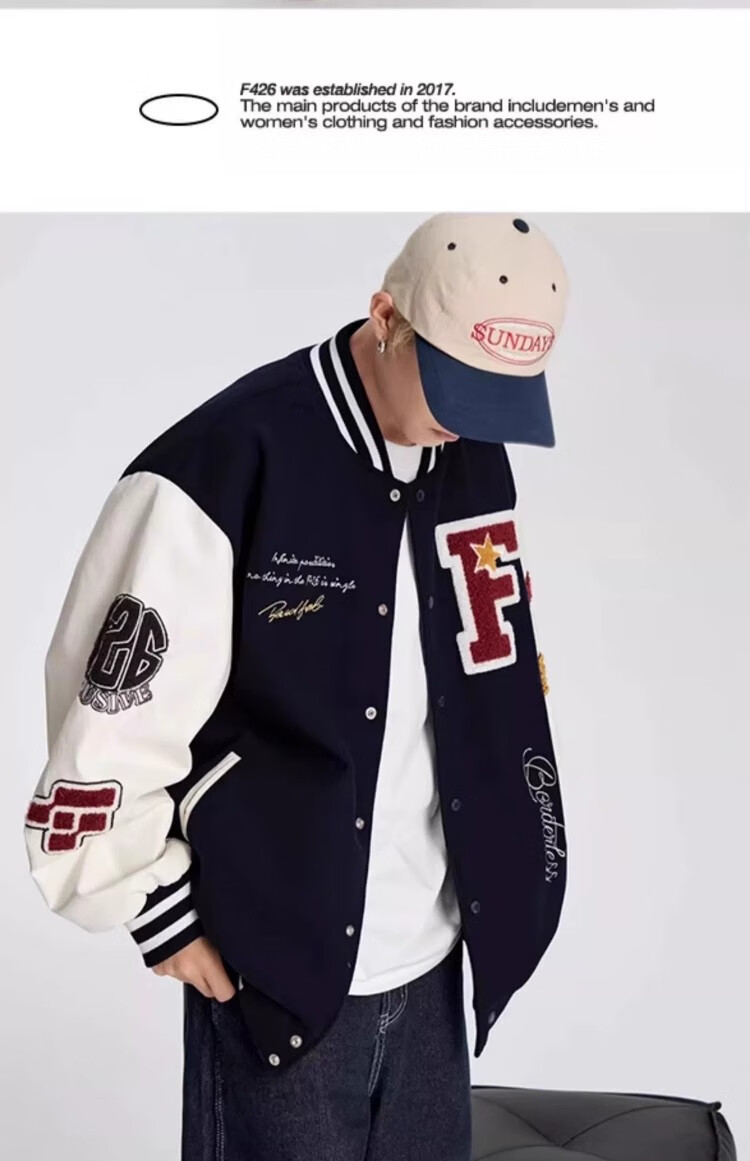 F426 Zhao Lusi and Xu Yan same style national fashion brand spring high-end contrast color towel embroidered baseball uniform long-sleeved jacket, navy L