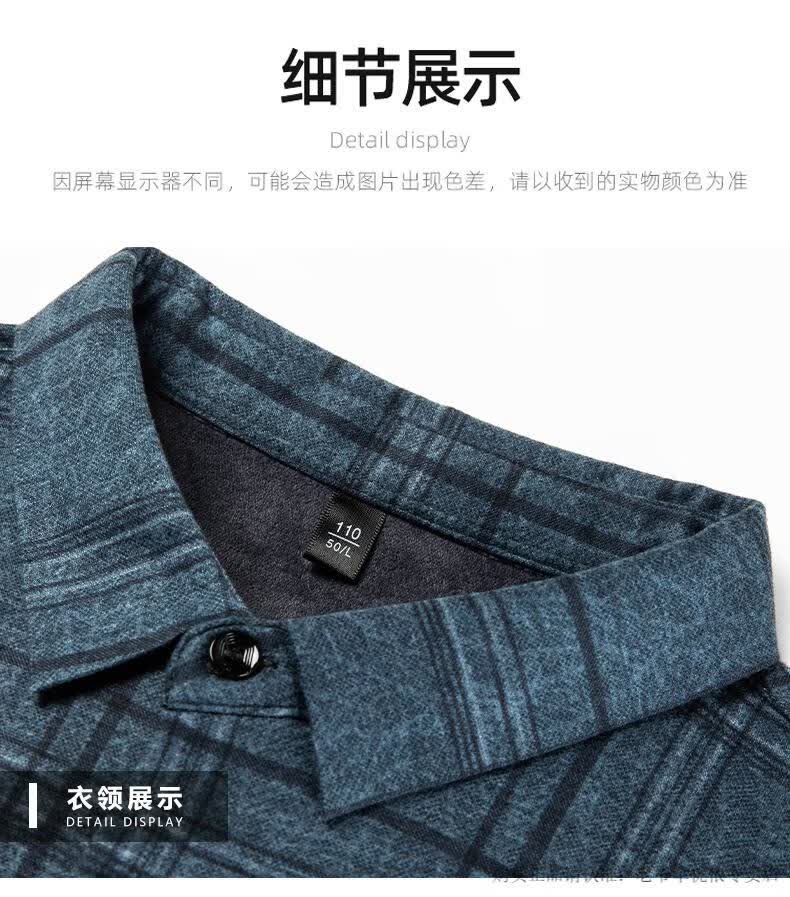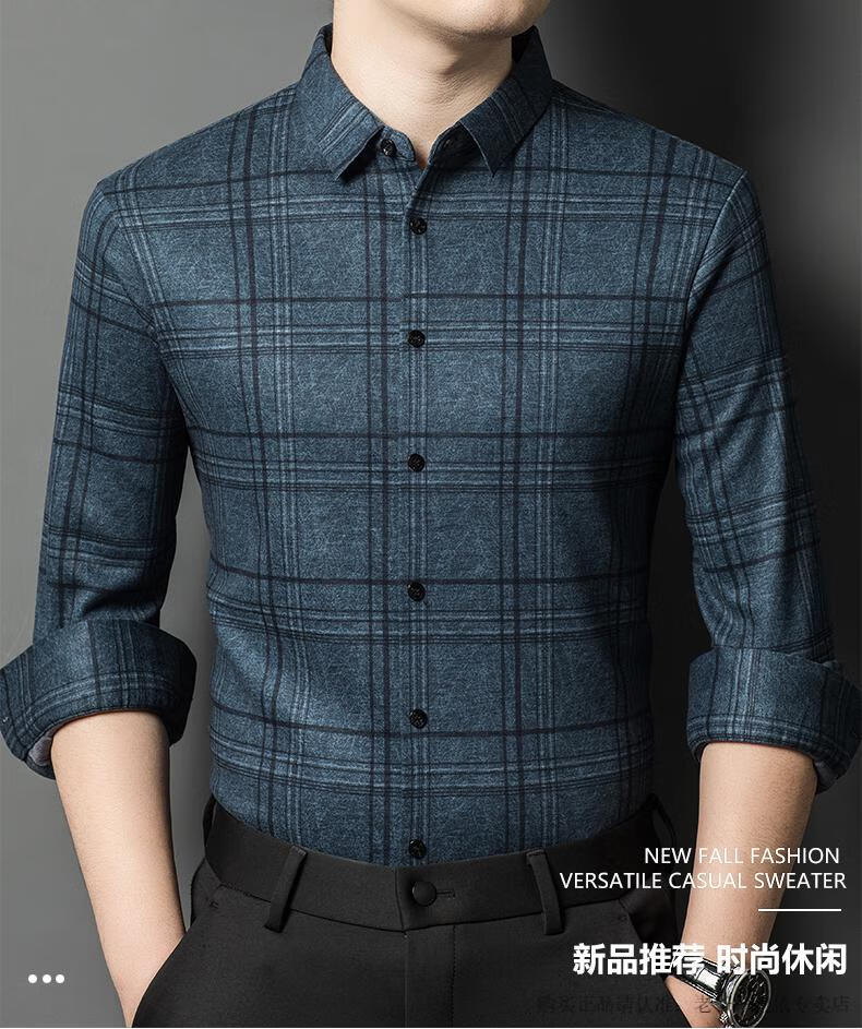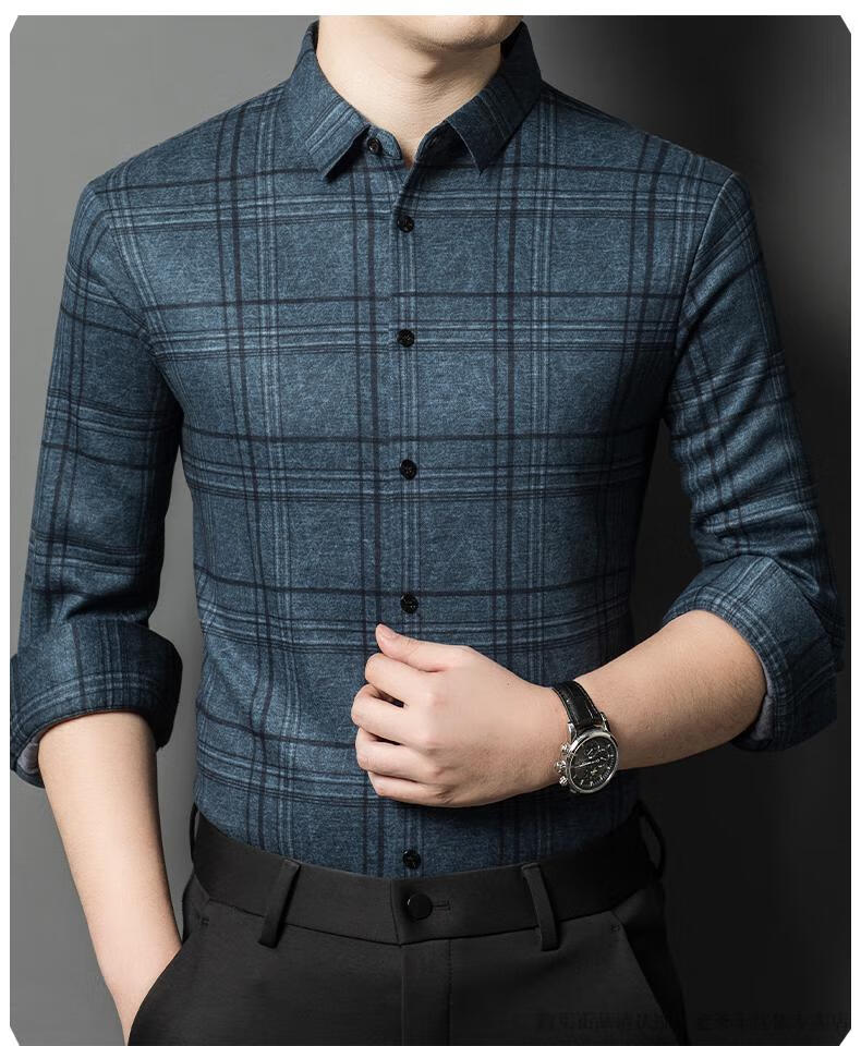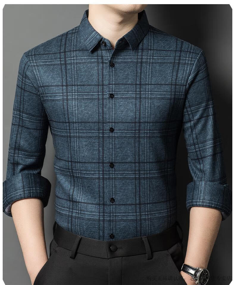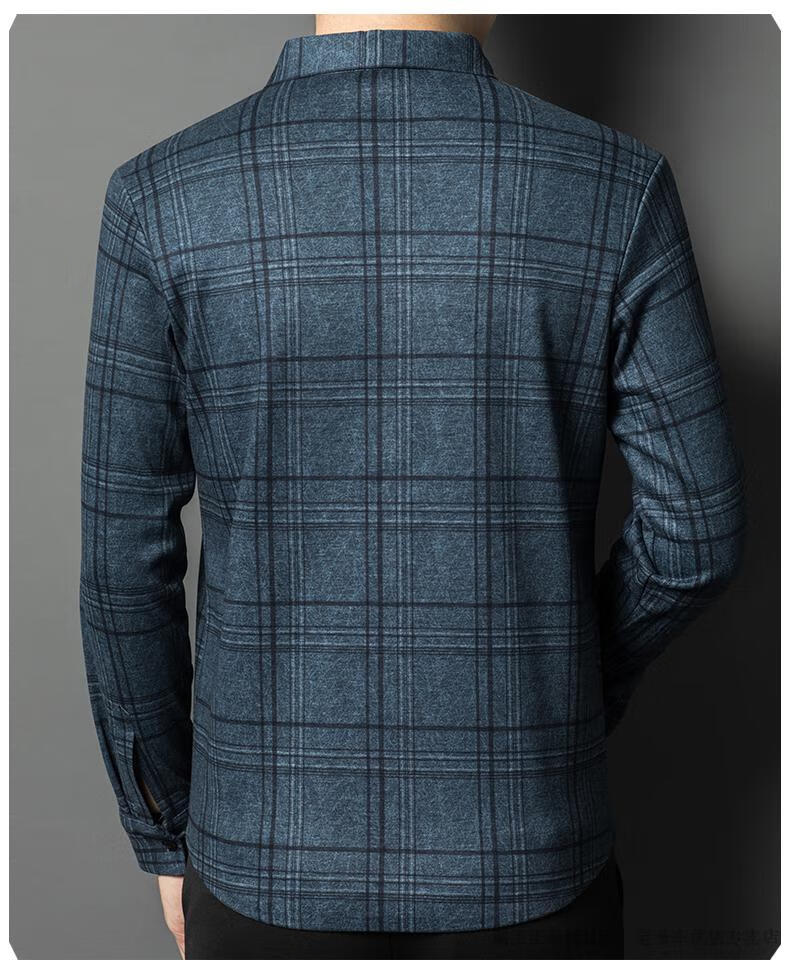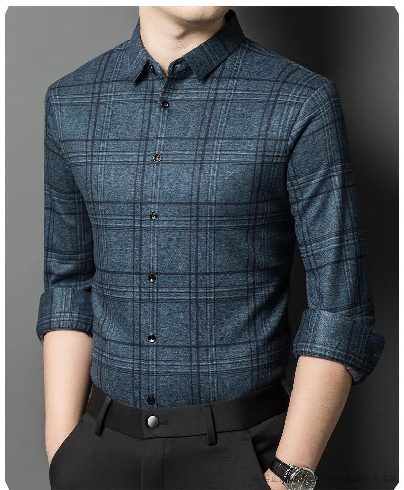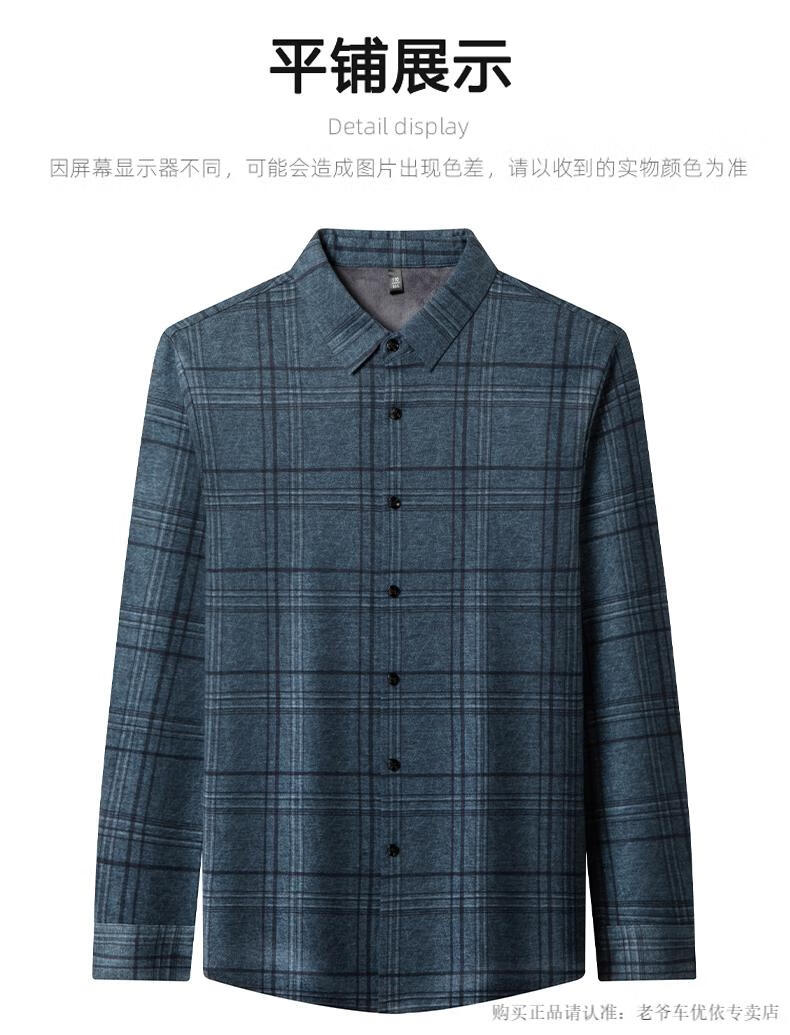 Camisa de manga larga de cachemira de alta gama para hombres clásicos, otoño e invierno, para hombres, de mediana edad, informal, de negocios, con fondo cálido y engrosado, a cuadros más camisa de terciopelo 8895 azul más terciopelo 115 / XL peso recomendado 130-145 Jin Jin equivale a 0,5 kg gratis