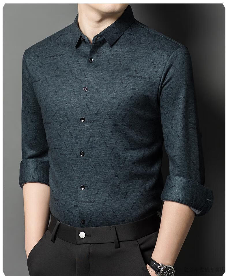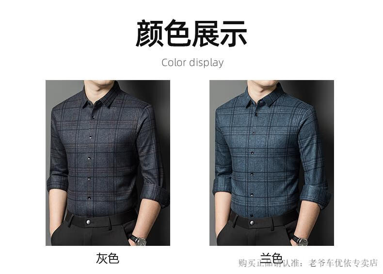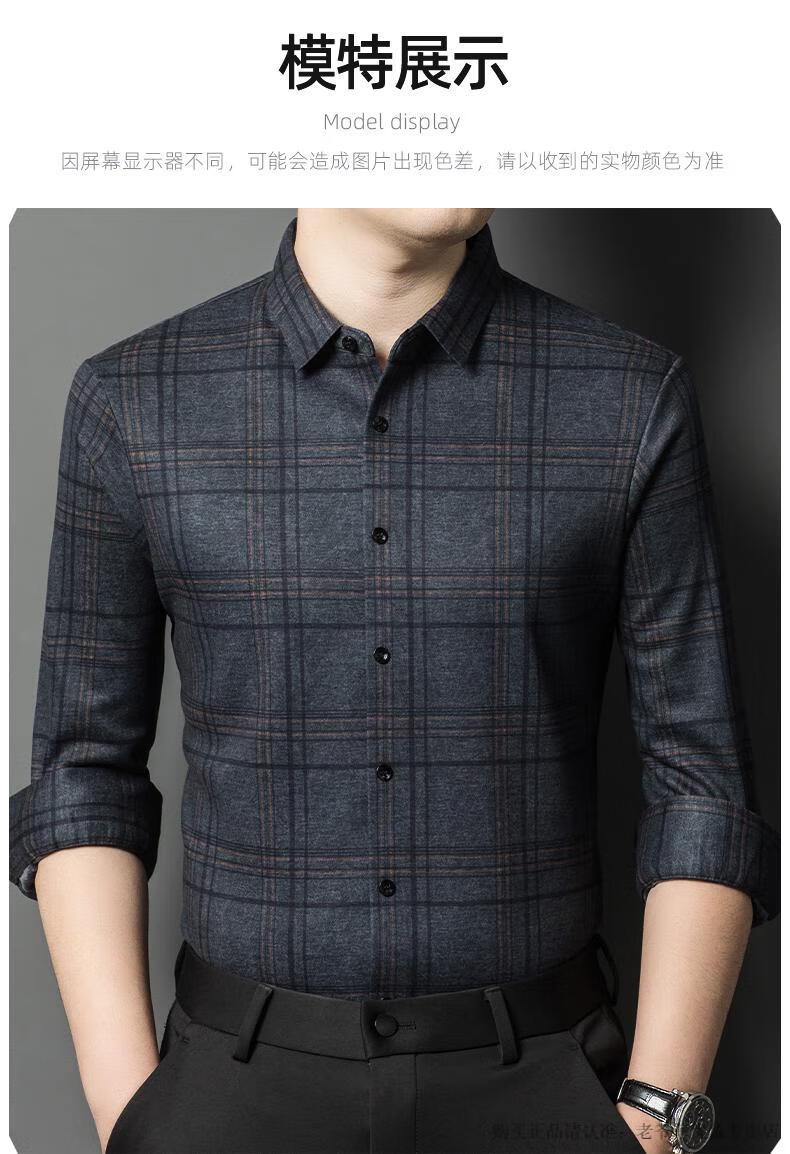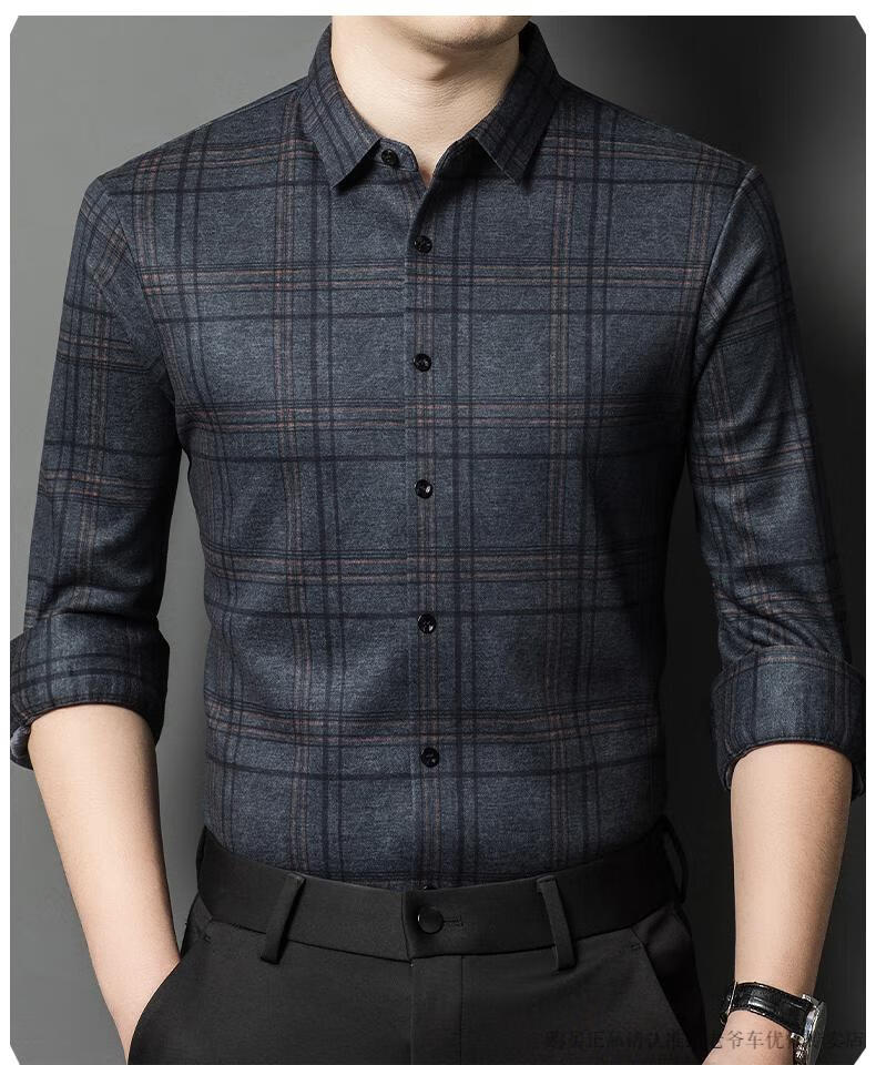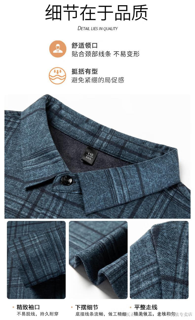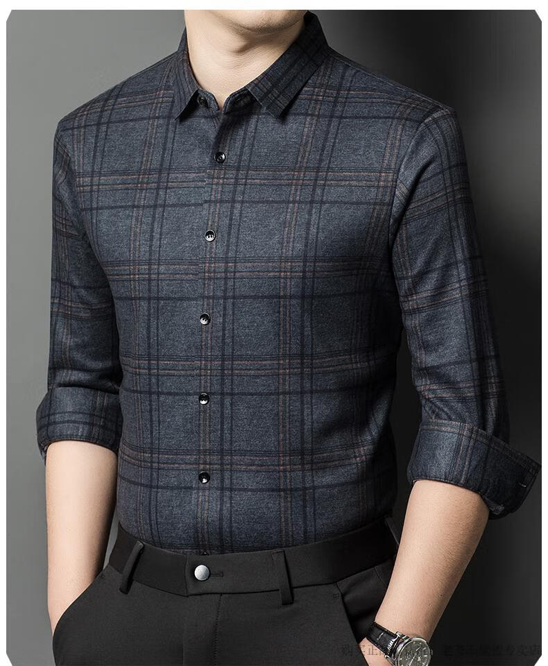 Camisa de manga larga de cachemira de alta gama para hombres clásicos, otoño e invierno, para hombres, de mediana edad, informal, de negocios, con fondo cálido y engrosado, a cuadros más camisa de terciopelo 8895 azul más terciopelo 115 / XL peso recomendado 130-145 Jin Jin equivale a 0,5 kg gratis