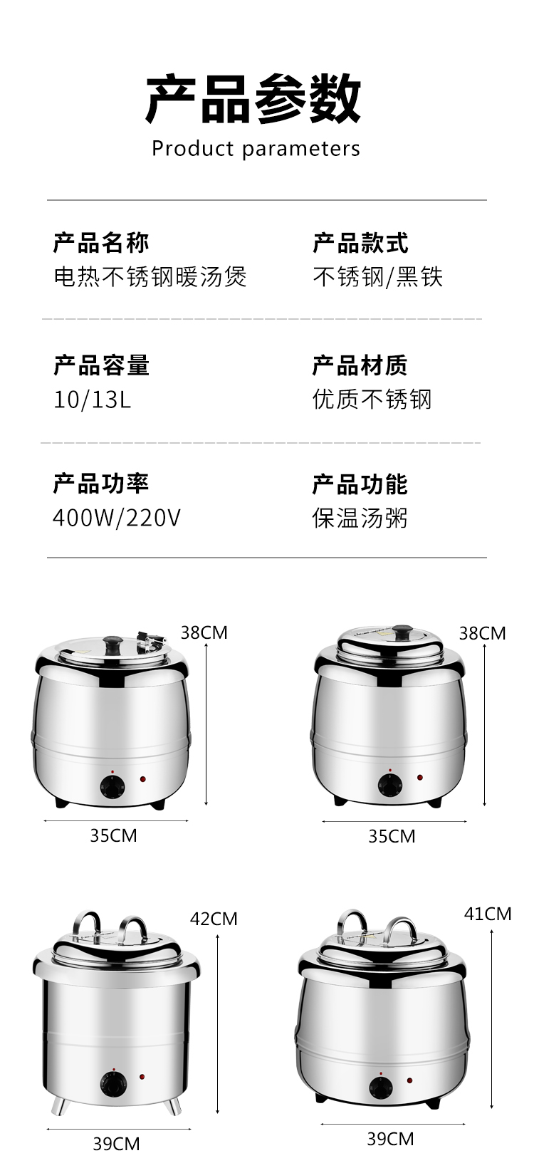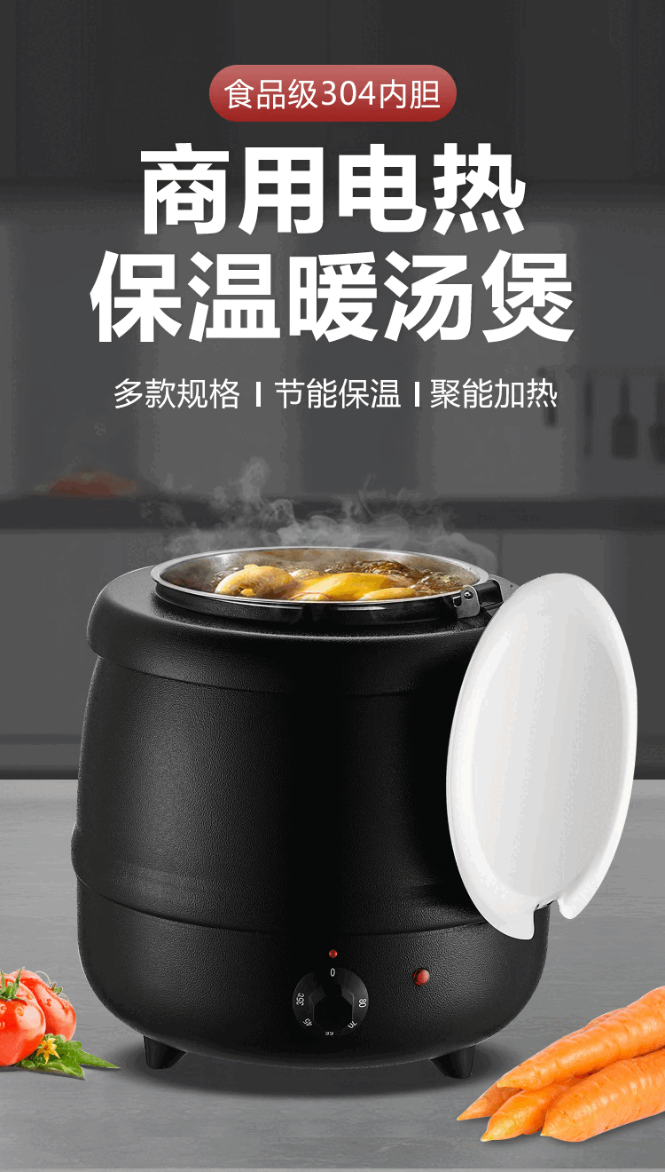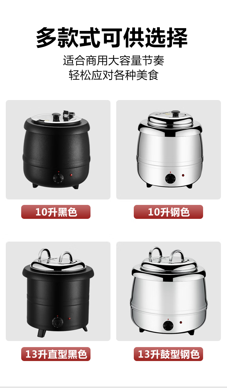 Suiqi Electronic Warming Soup Pot Insulated Soup Bucket Commercial 304 Stainless Steel Soup Pot Porridge Bucket 10-liter Steel Soup Pot Large Mouth Lid/Upgraded 304 Liner