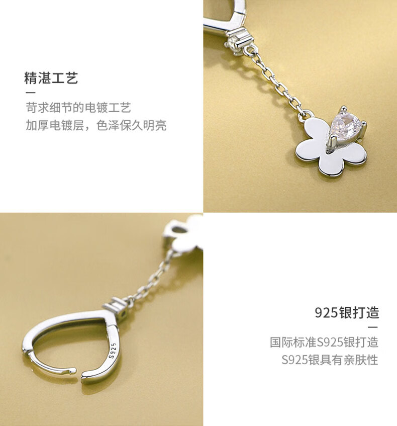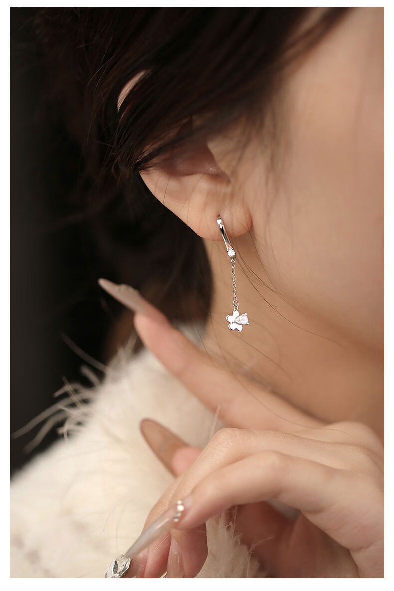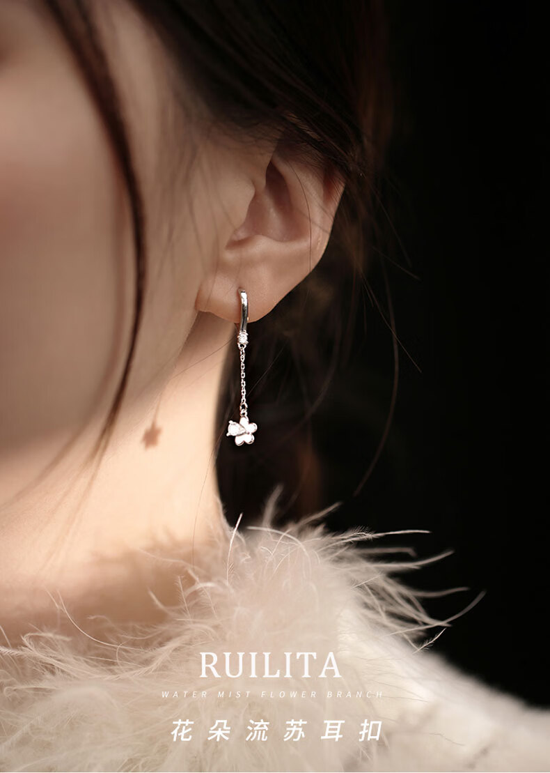 Ruilita Silver Earrings Earrings Women's Flower Tassel Anti-falling Earrings New Fashion Versatile Light Luxurious High-end Earrings A Pair of Flower Tassel Earrings
