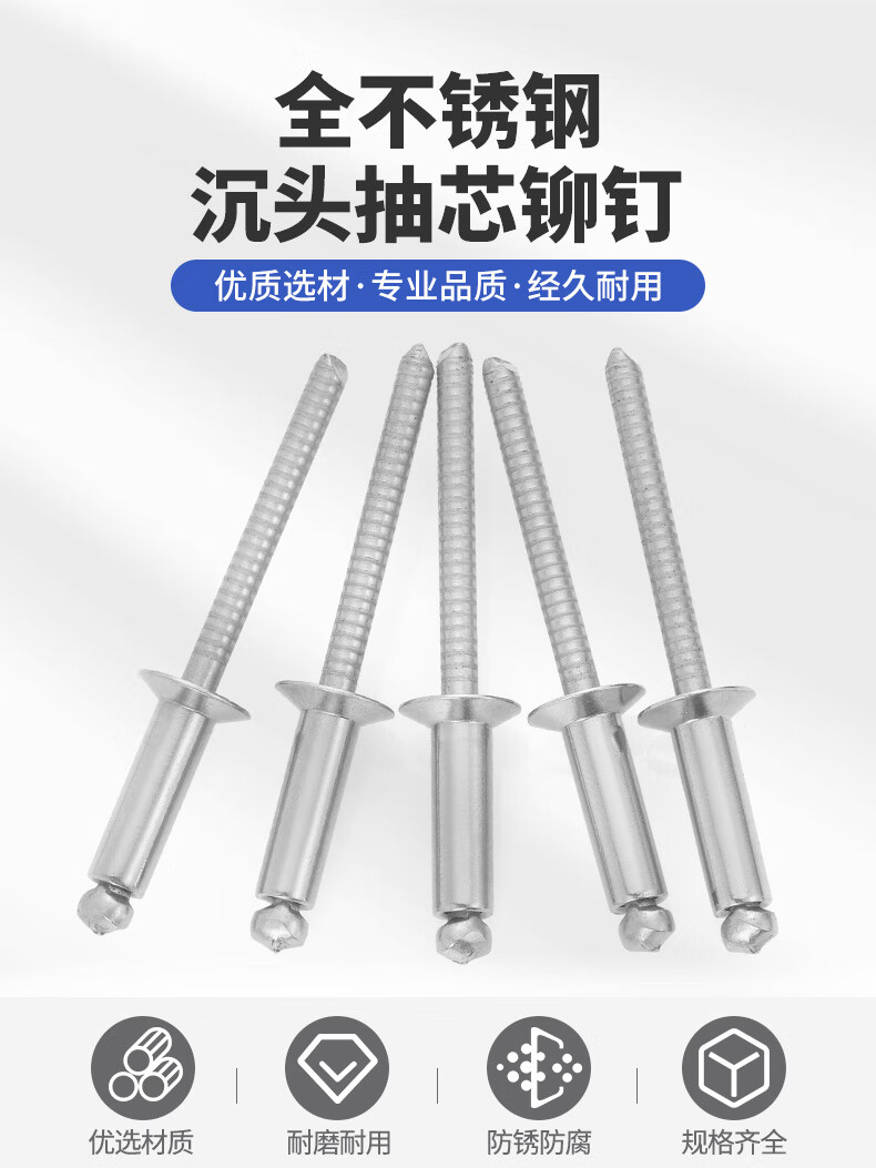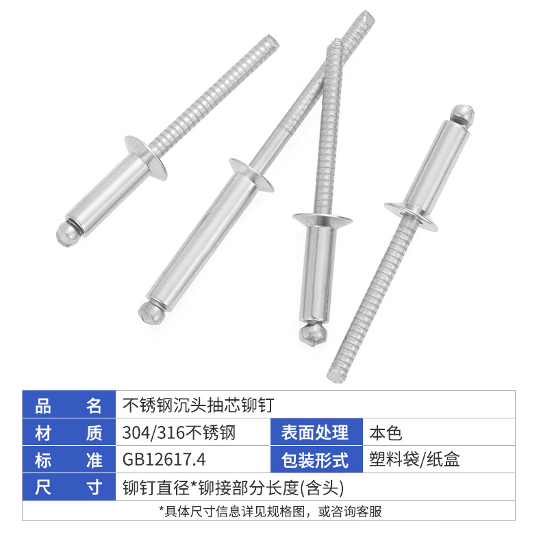 Jinggong (JINGGONG) HZ all stainless steel countersunk head blind rivet 304/316 flat head rivet open rivet GB12617.4 5*10 (20 pieces)