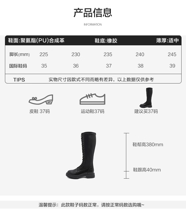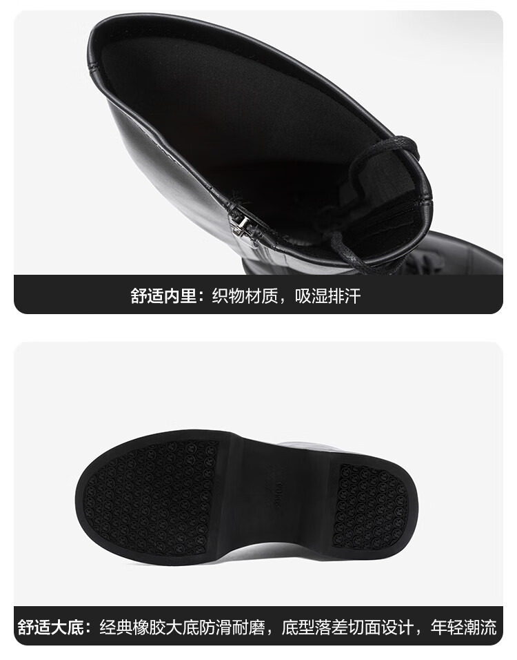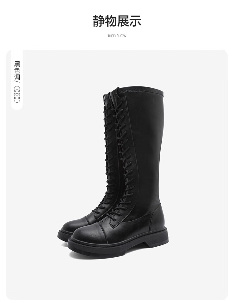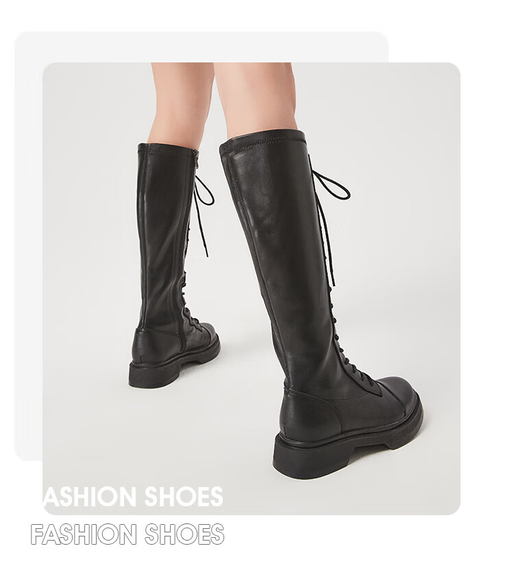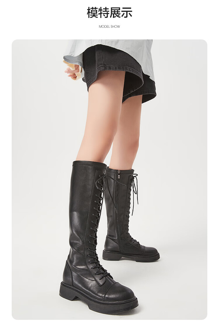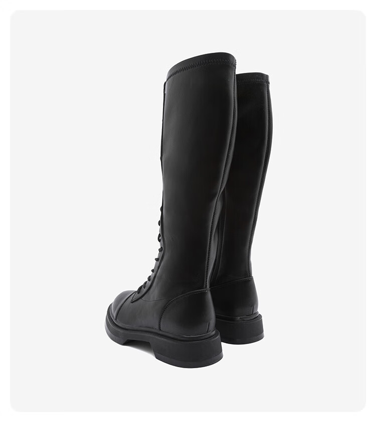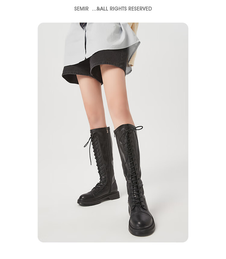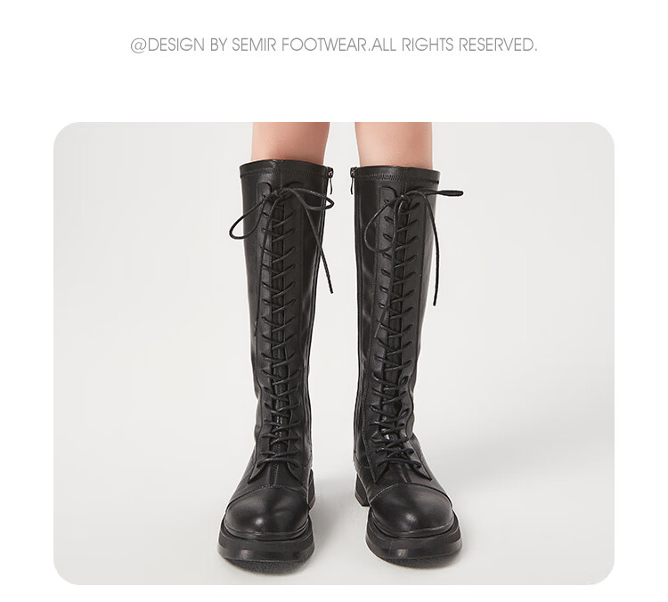 Semir official authentic fashion boots women's boots spring and autumn new fashion casual high-top lace-up motorcycle boots long boots for women black 37