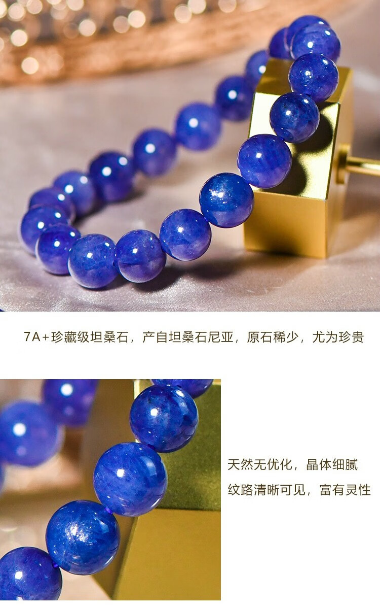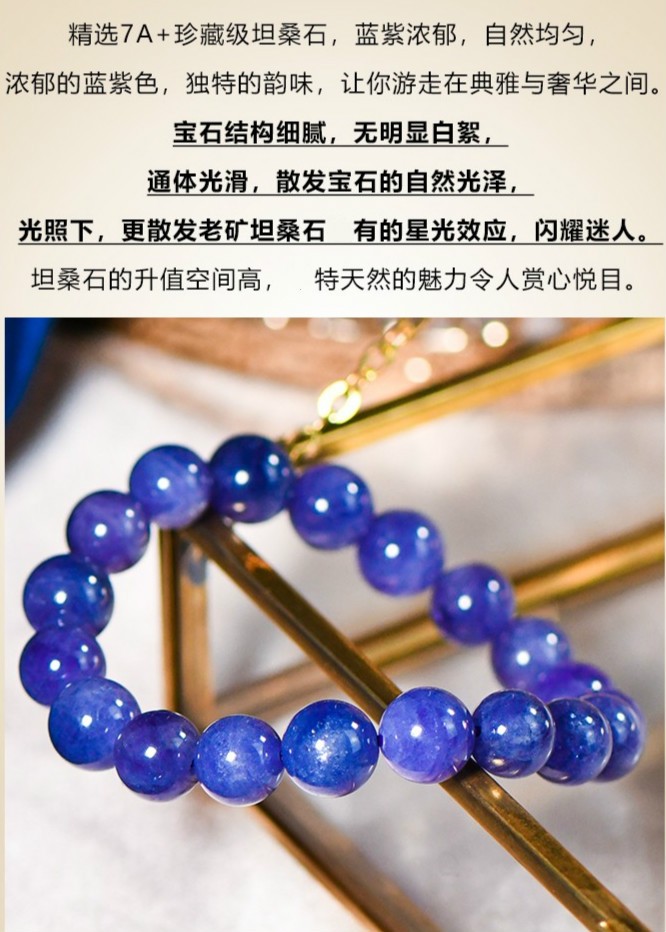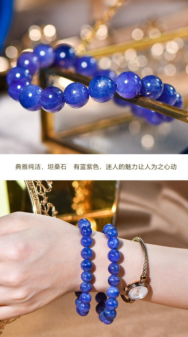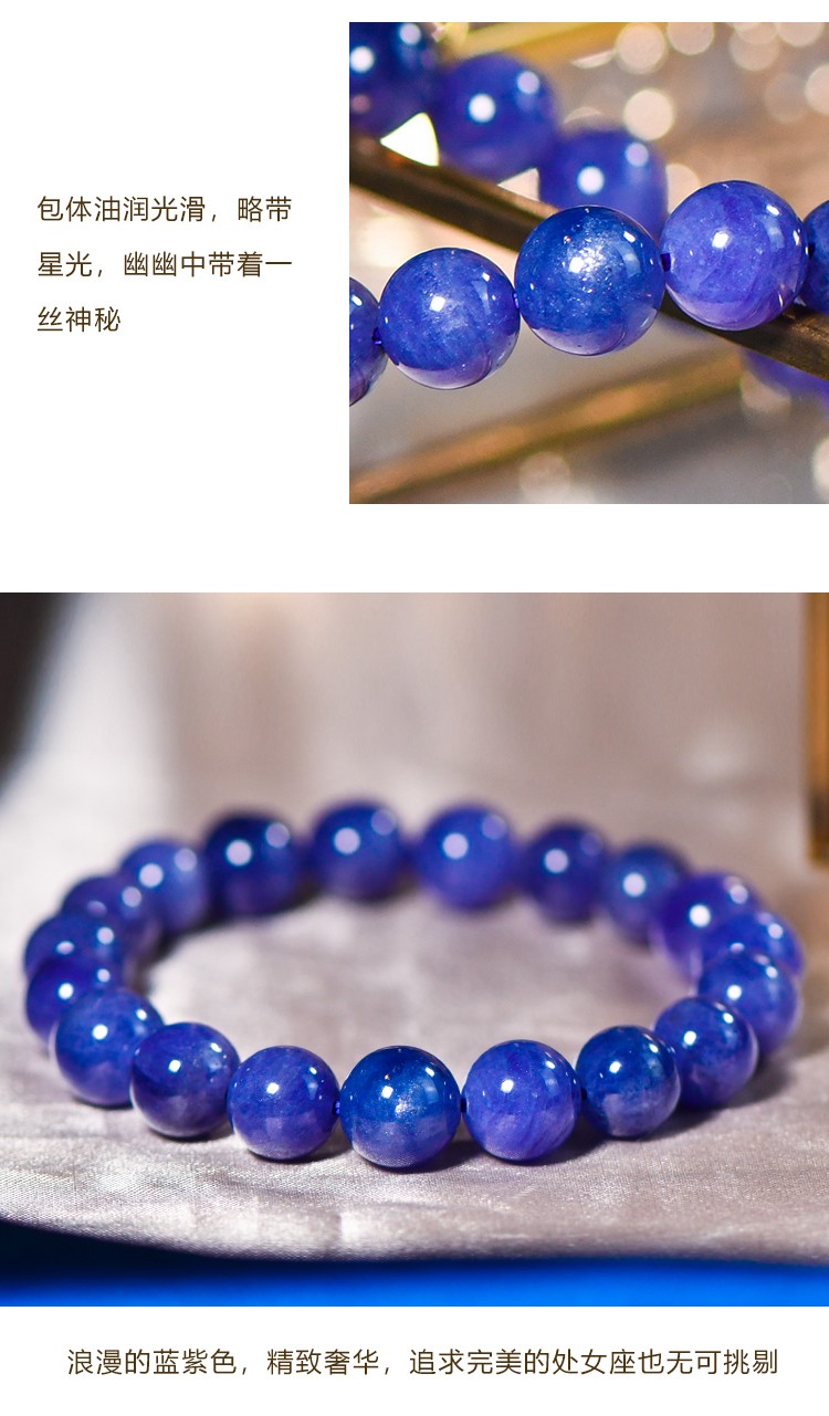 Shanguan Natural Crystal 7A+ Tanzanite Beads Old Ore Bracelet Collection Grade Starlight Bracelet for Women and Men 10 Free 7A+ About 9MM