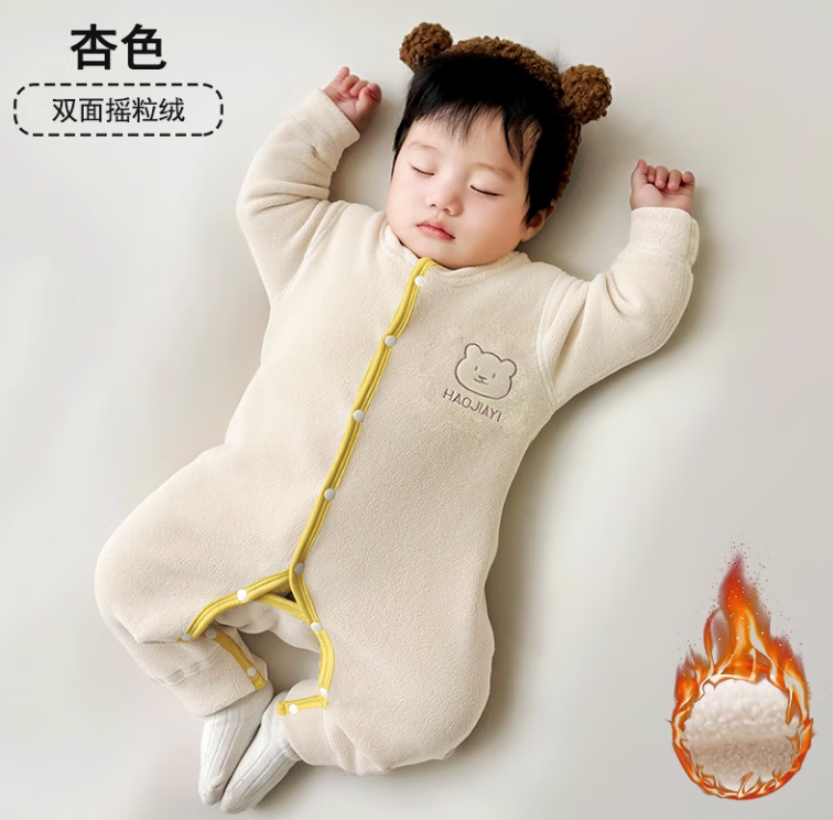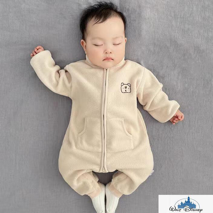 Disney (Disney) Baby Warm One-piece Polar Fleece Harness Baby Autumn One-piece Zippered Outing Plush Winter Climbing Suit Polar Fleece One-piece Beige 36cm 80 Recommended for 6-12 months