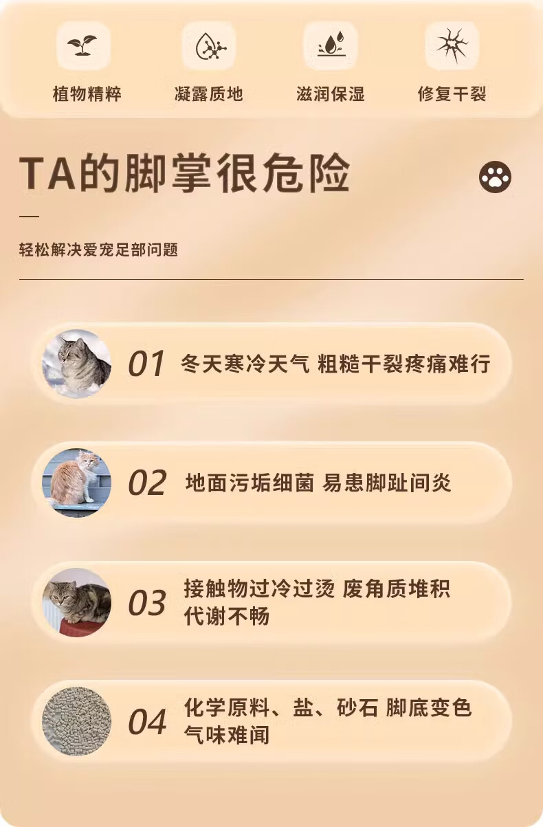 Tiger Pet Pet Paw Care Cream for Dogs and Cats Foot Moisturizing Gel for Soles and Cracked Nose Pads and Foot Care Cream Pet Foot Moisturizing Gel - Single 60ML/Piece