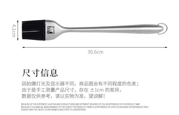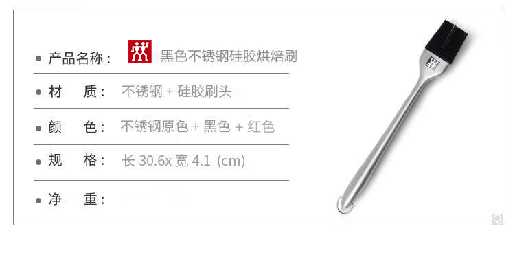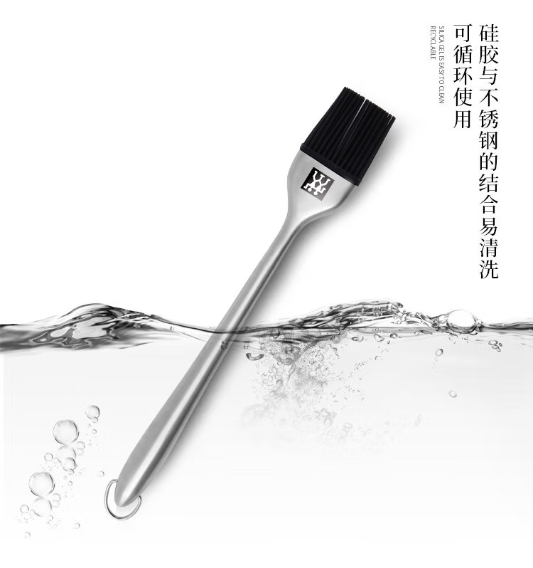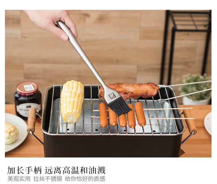ZWILLING German tail goods 304 stainless steel silicone oil brush barbecue brush high temperature resistant brush baking brush removable 304 steel silicone brush black