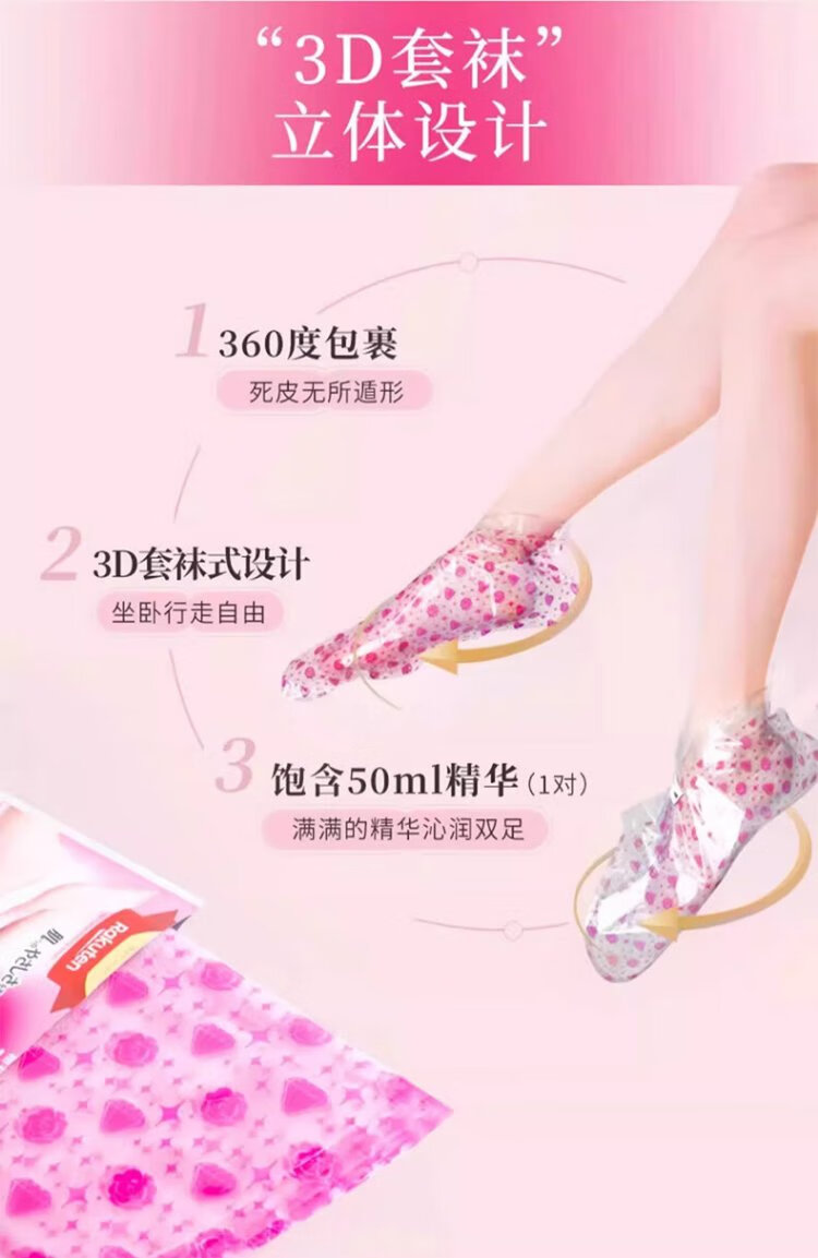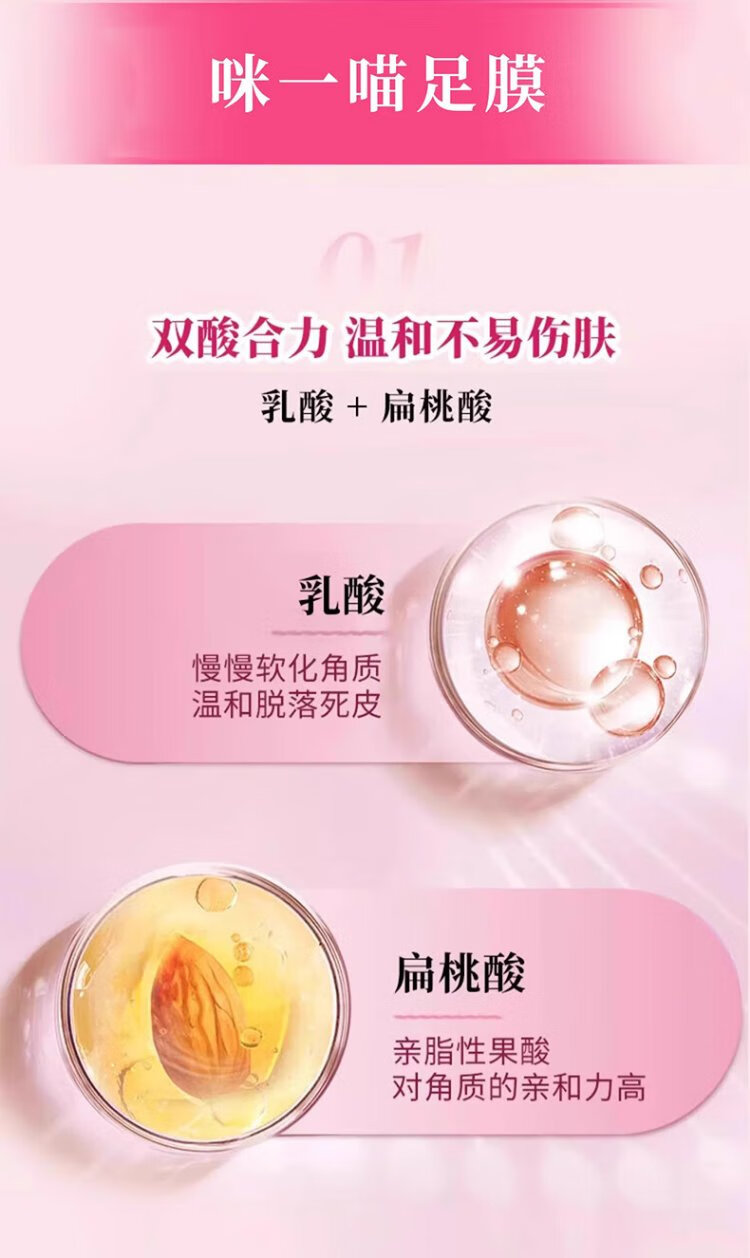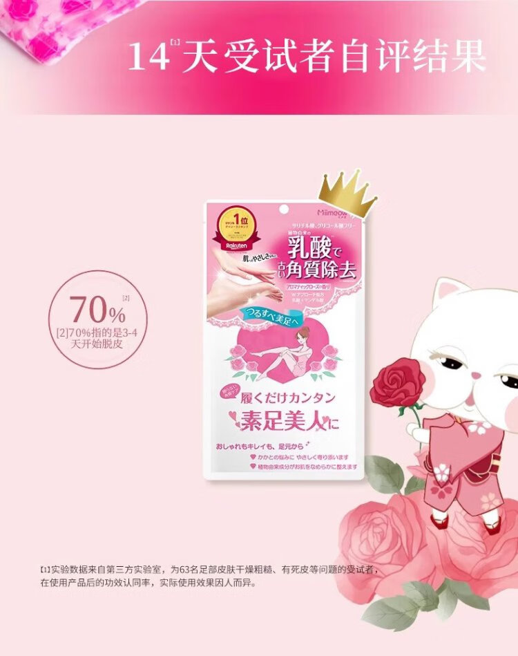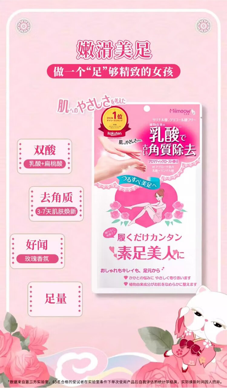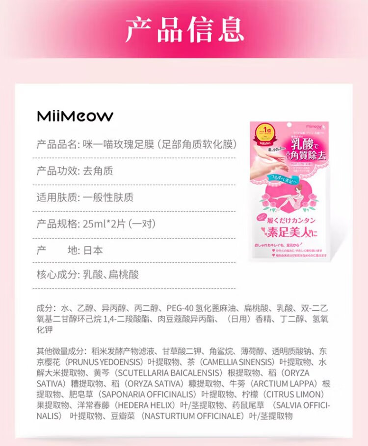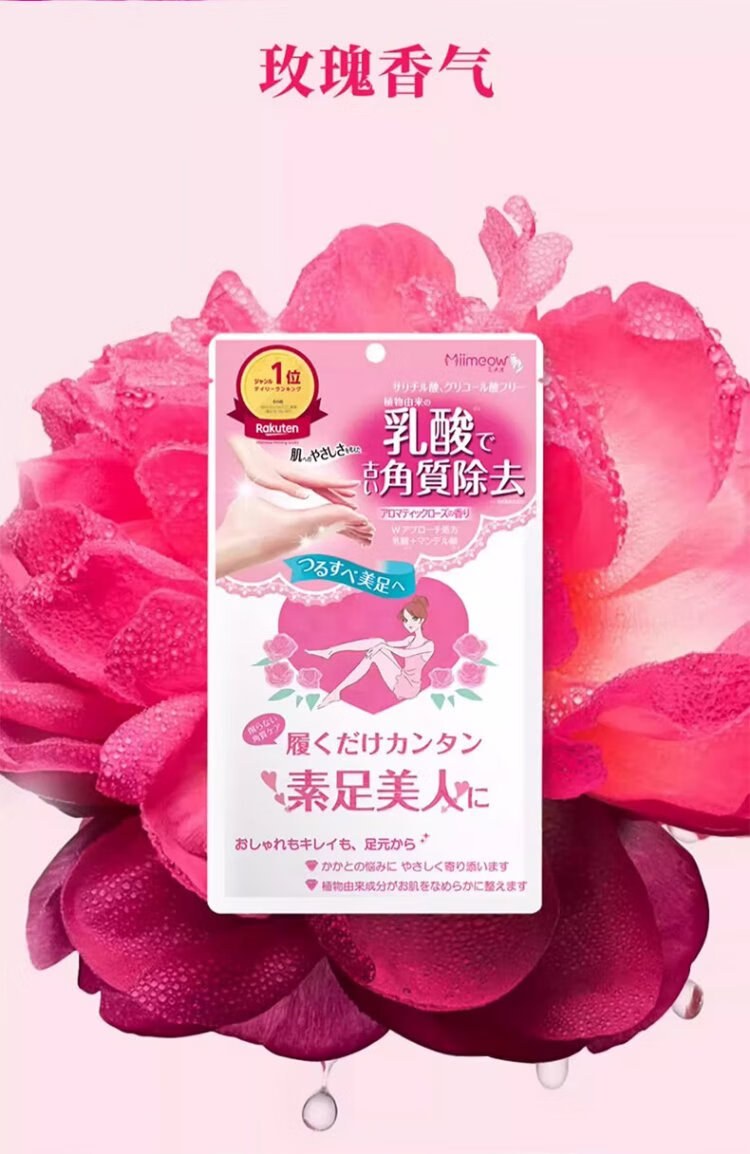 Miimeow foot mask, lactic acid exfoliating foot mask, soft mask to remove dead skin and calluses, rose foot mask 25ml*2 pieces (pair)