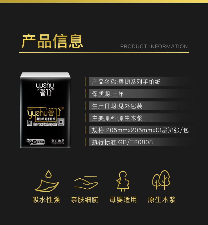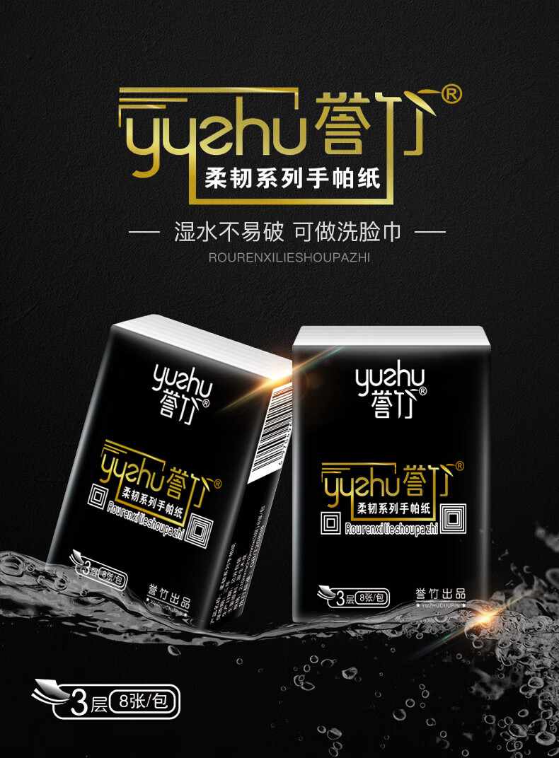 Limited time event Yuzhu handkerchief paper 8 pieces small pack tissue paper toilet paper portable flexible whole box wholesale 3 layers 8 pieces * 50 packs
