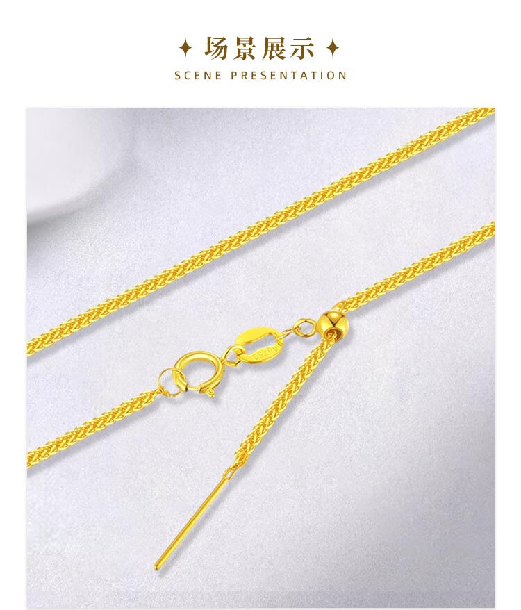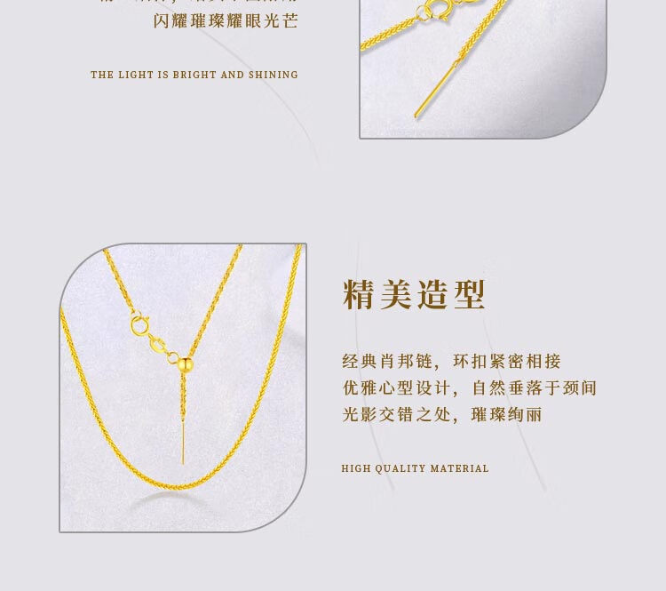 CHINA GOLD 18K gold Chopard chain for women, simple and versatile plain chain clavicle chain holiday birthday gift for girlfriend and lover 18K gold Chopard chain about 0.6-0.7g + brand gift box