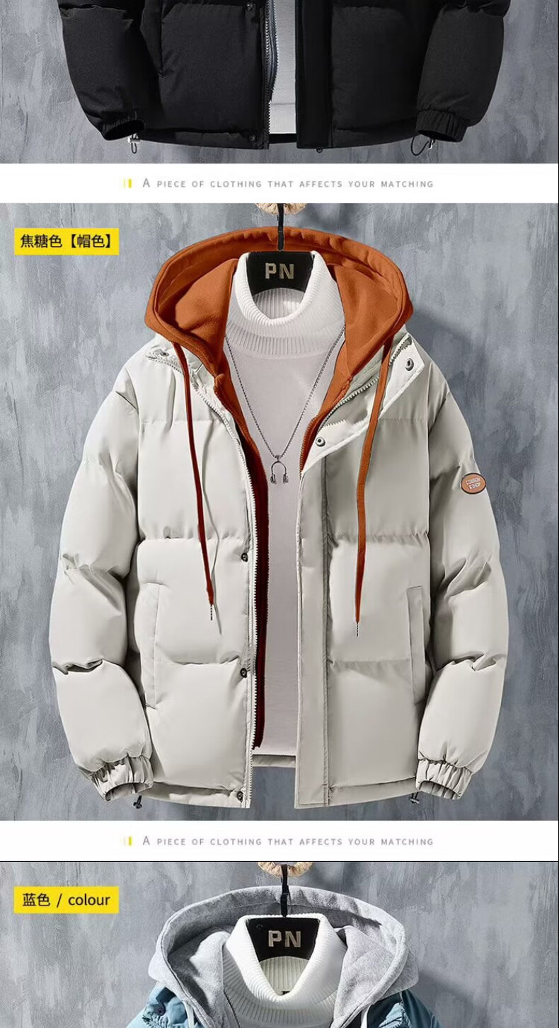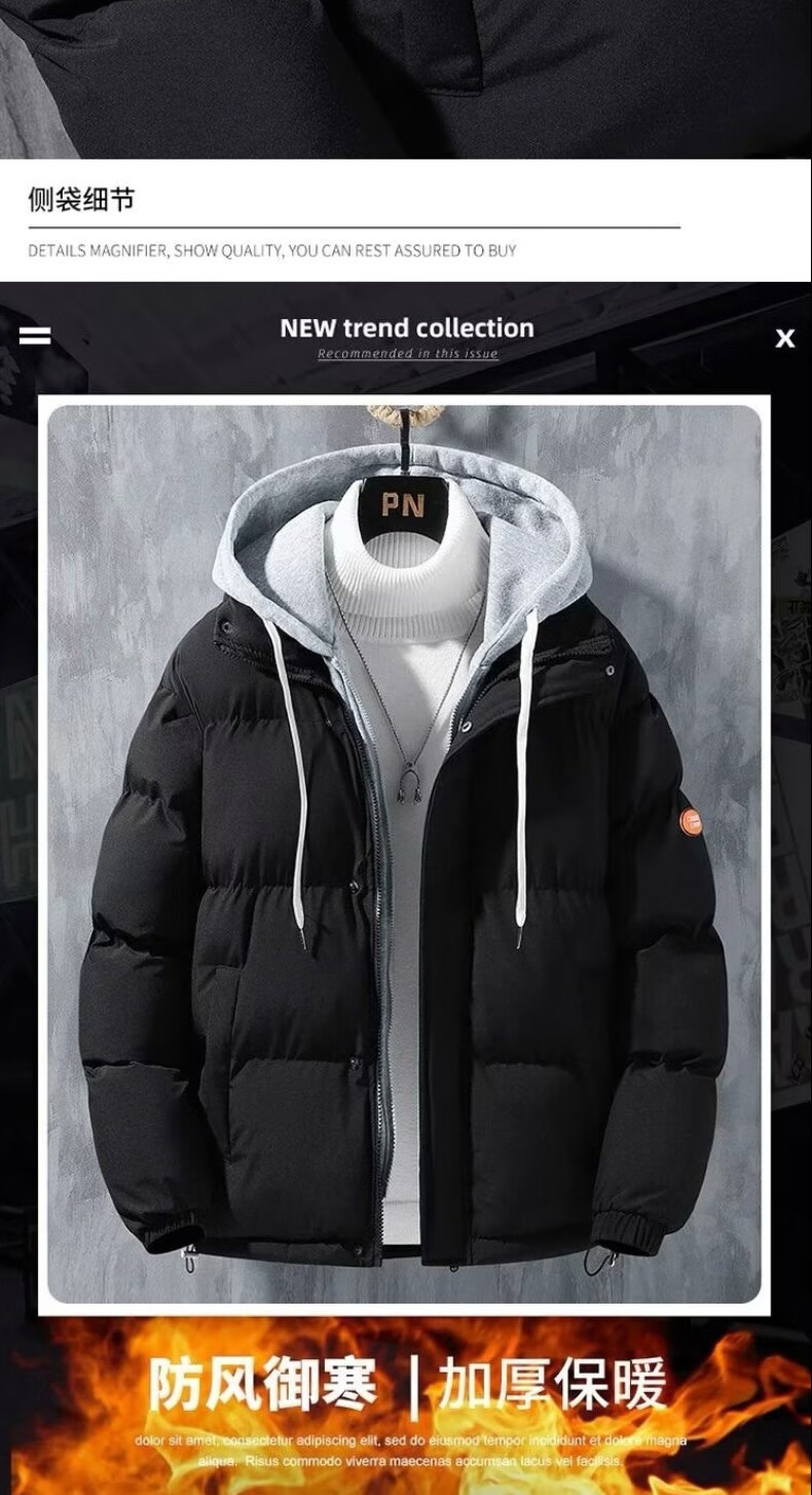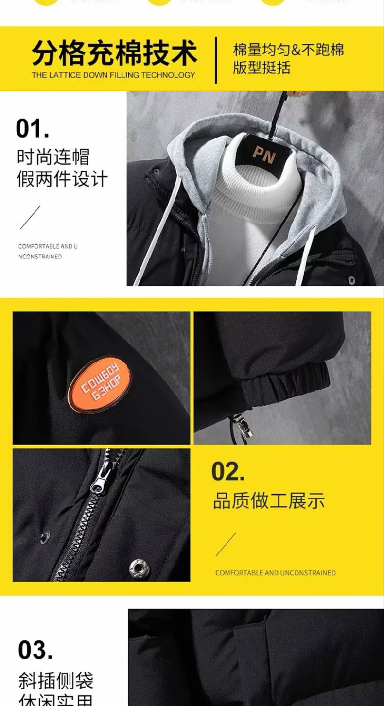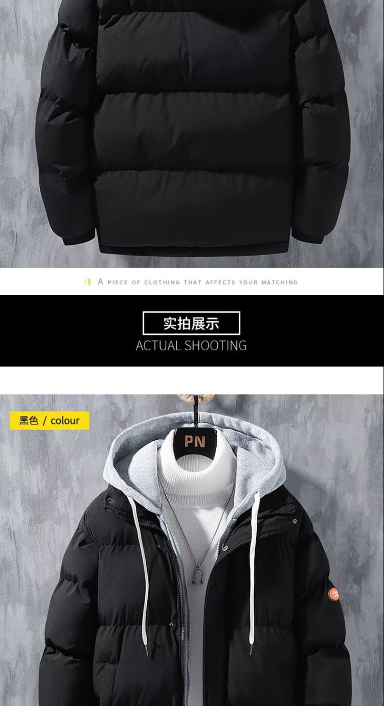Insulation and warmth Winter thickened cotton coat men's loose bread coat fake two-piece hooded cotton coat jacket black XL recommended 125-145Jin Jin equals 0.5 kg