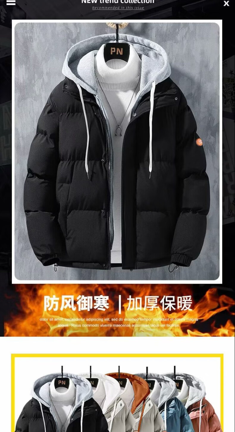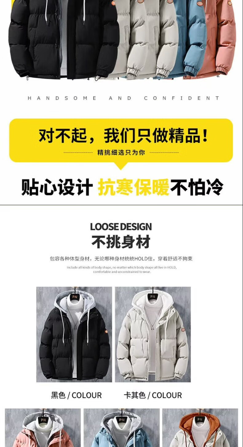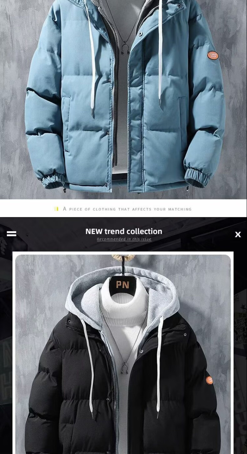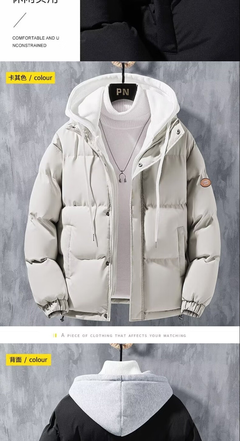 Insulation and warmth Winter thickened cotton coat men's loose bread coat fake two-piece hooded cotton coat jacket black XL recommended 125-145Jin Jin equals 0.5 kg