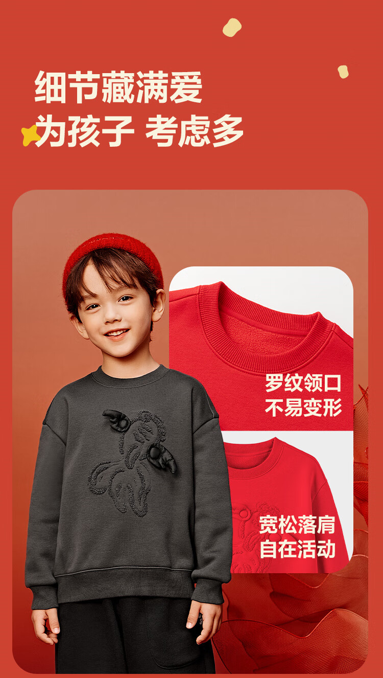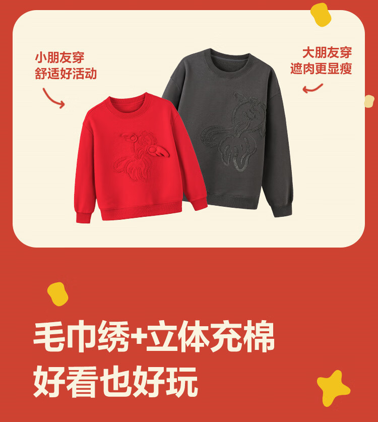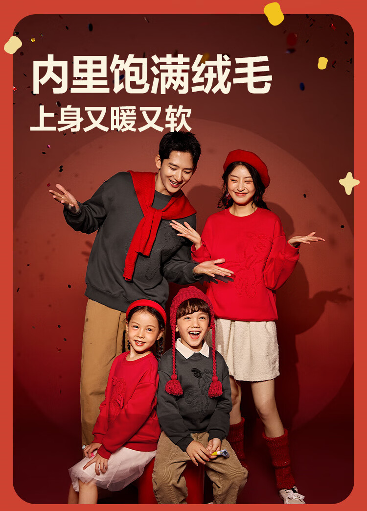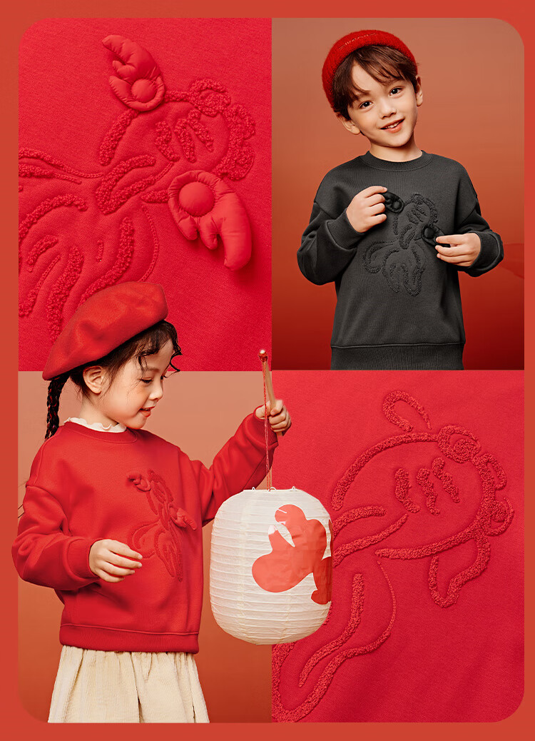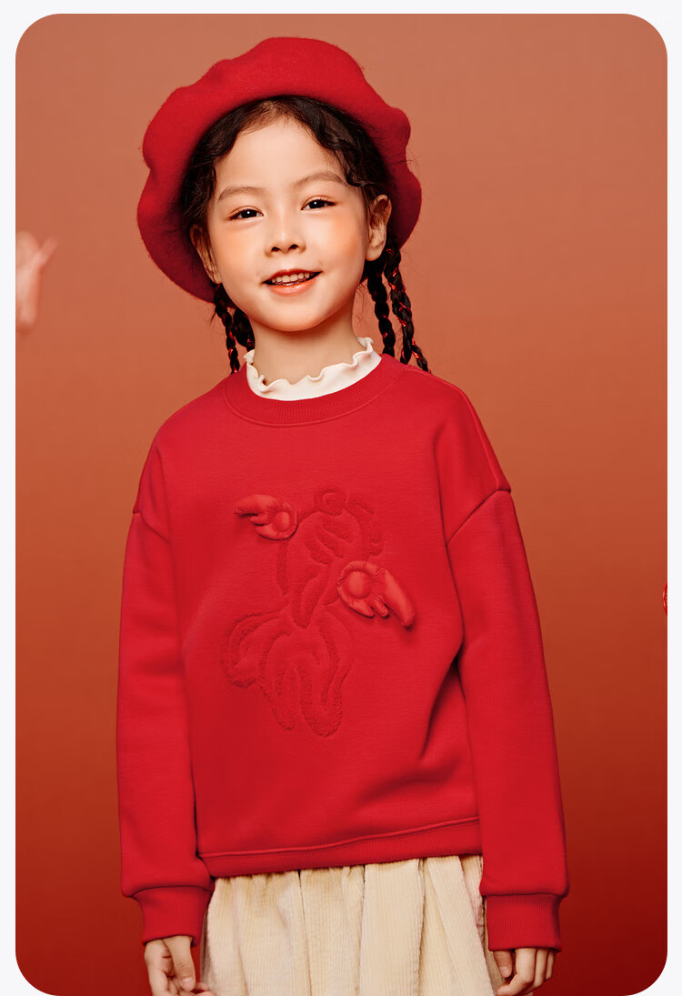 Minibala (minibala) Same style in the mall Mini Balabala sweatshirt for boys and girls, parent-child wear, autumn red top for a family of three, Chinese red 60611 160