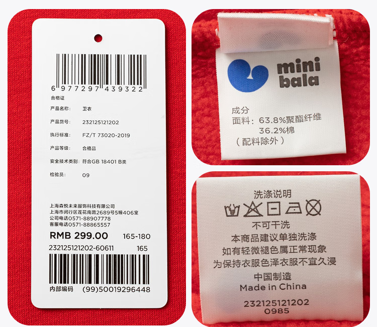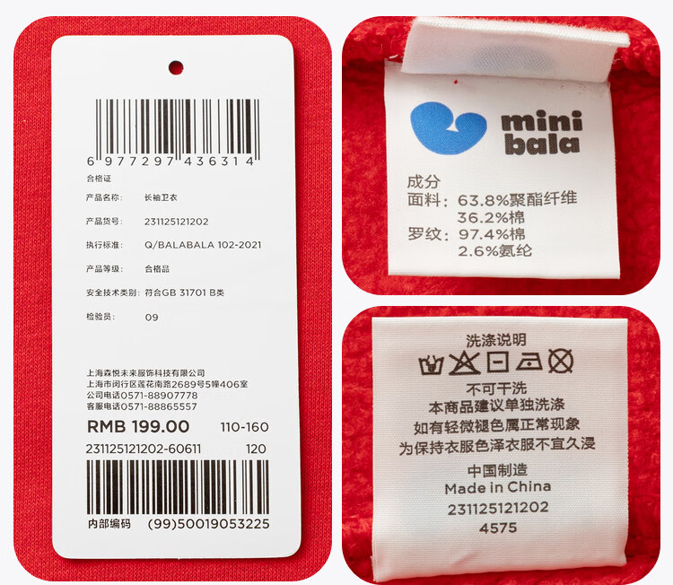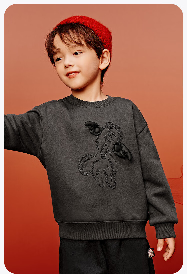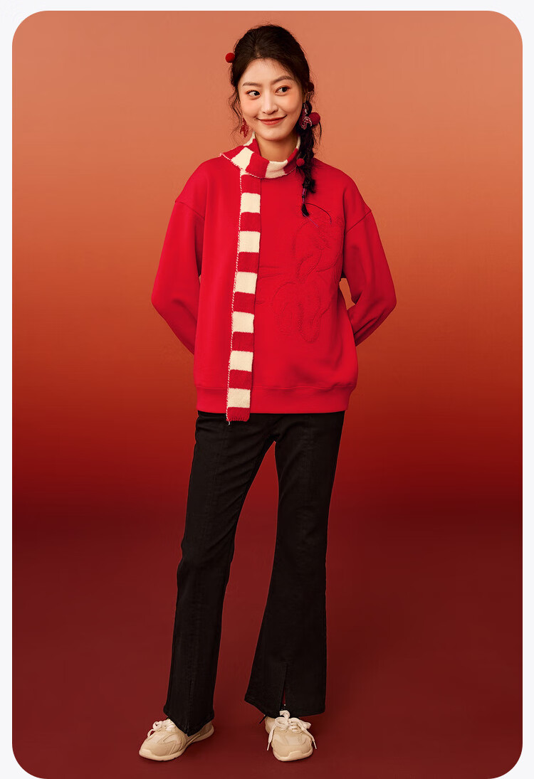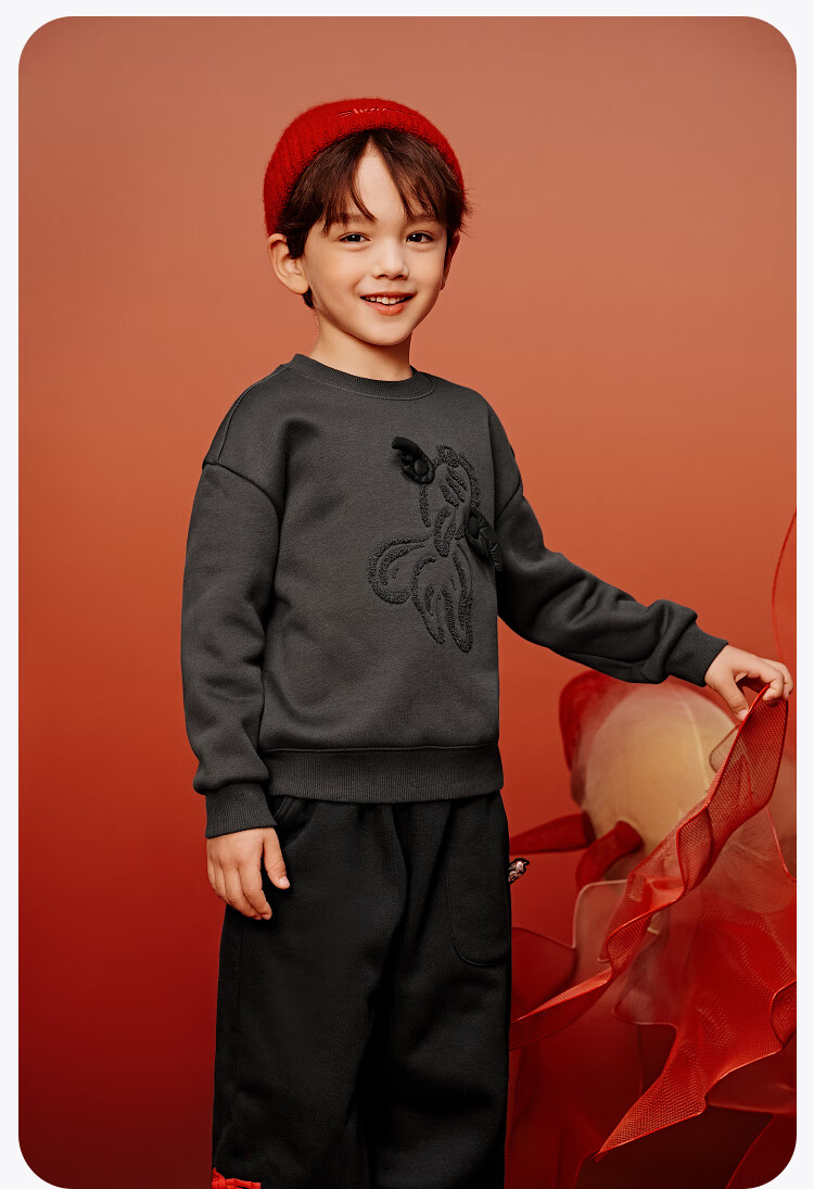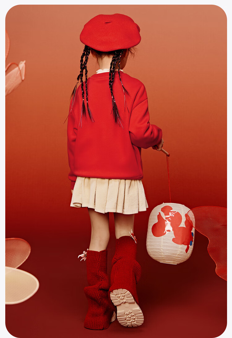 Minibala (minibala) Same style in the mall Mini Balabala sweatshirt for boys and girls, parent-child wear, autumn red top for a family of three, Chinese red 60611 160