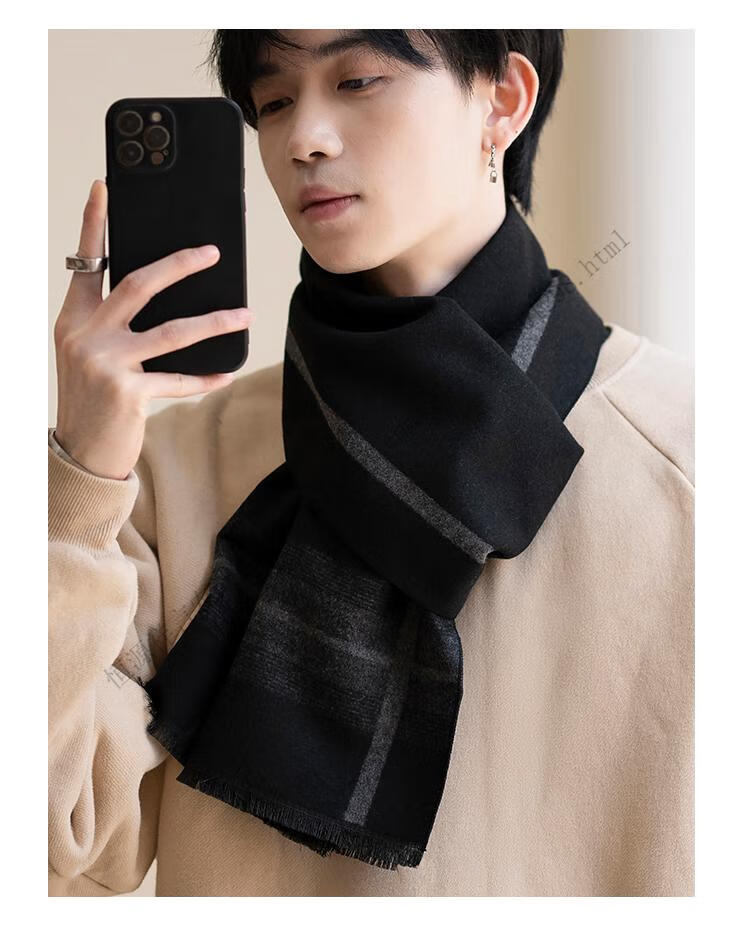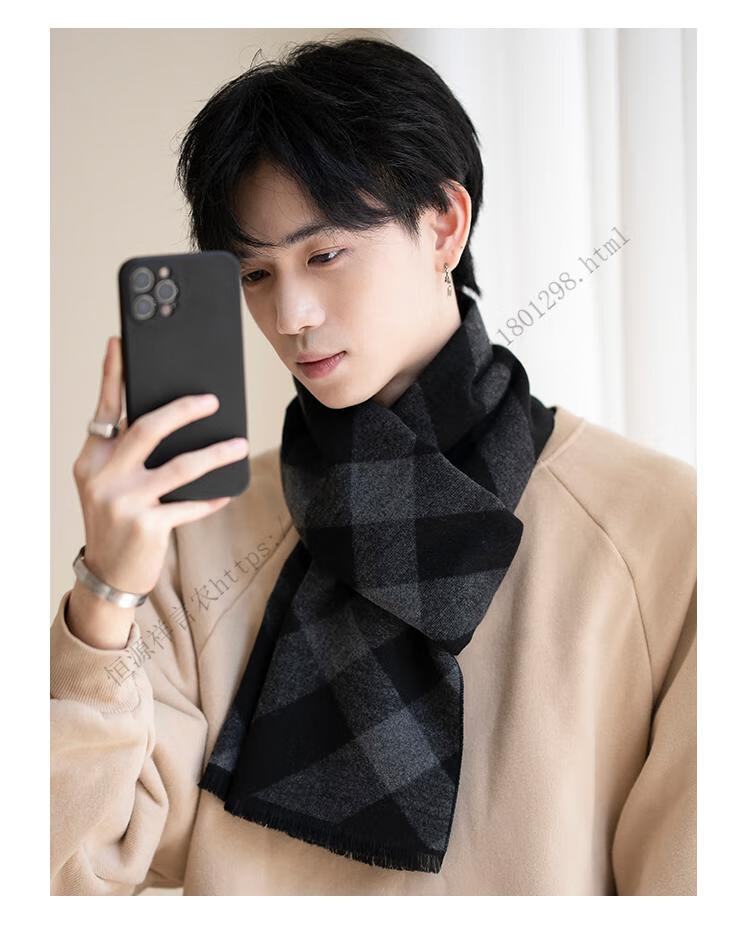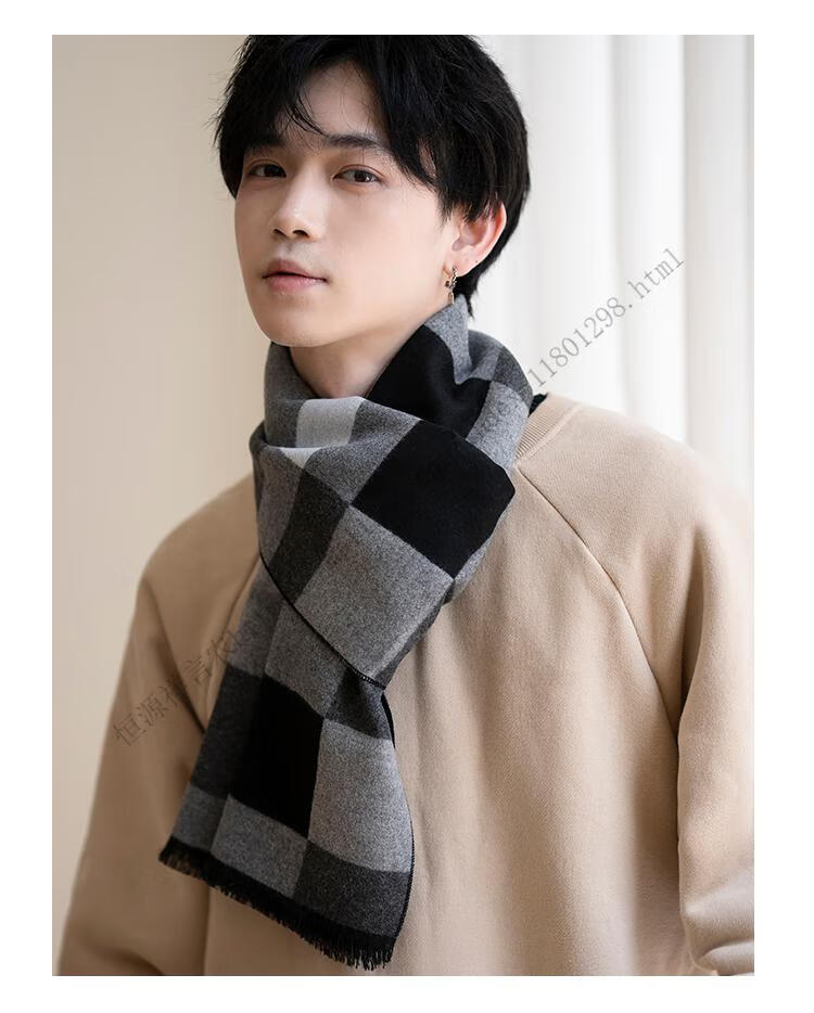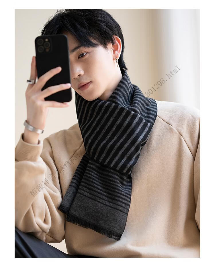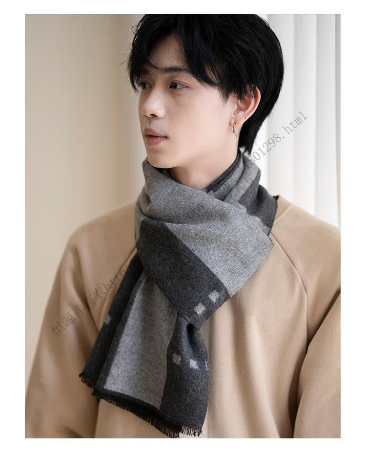 Hengyuanxiang men's scarf black Korean style young people's warm wool scarf men's autumn and winter couple style student versatile scarf 5507-light gray gift box