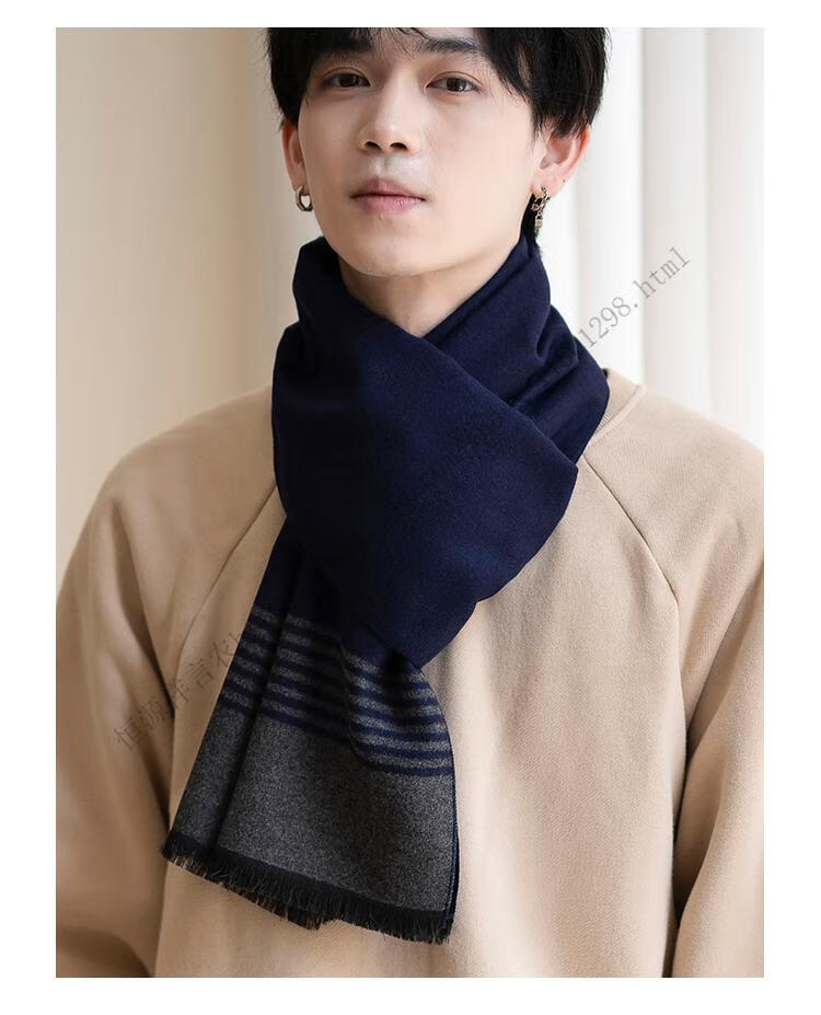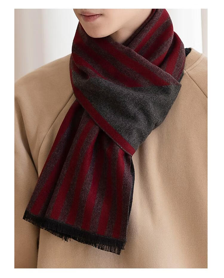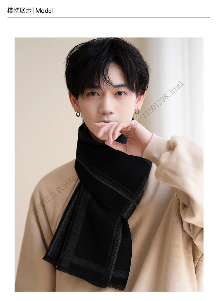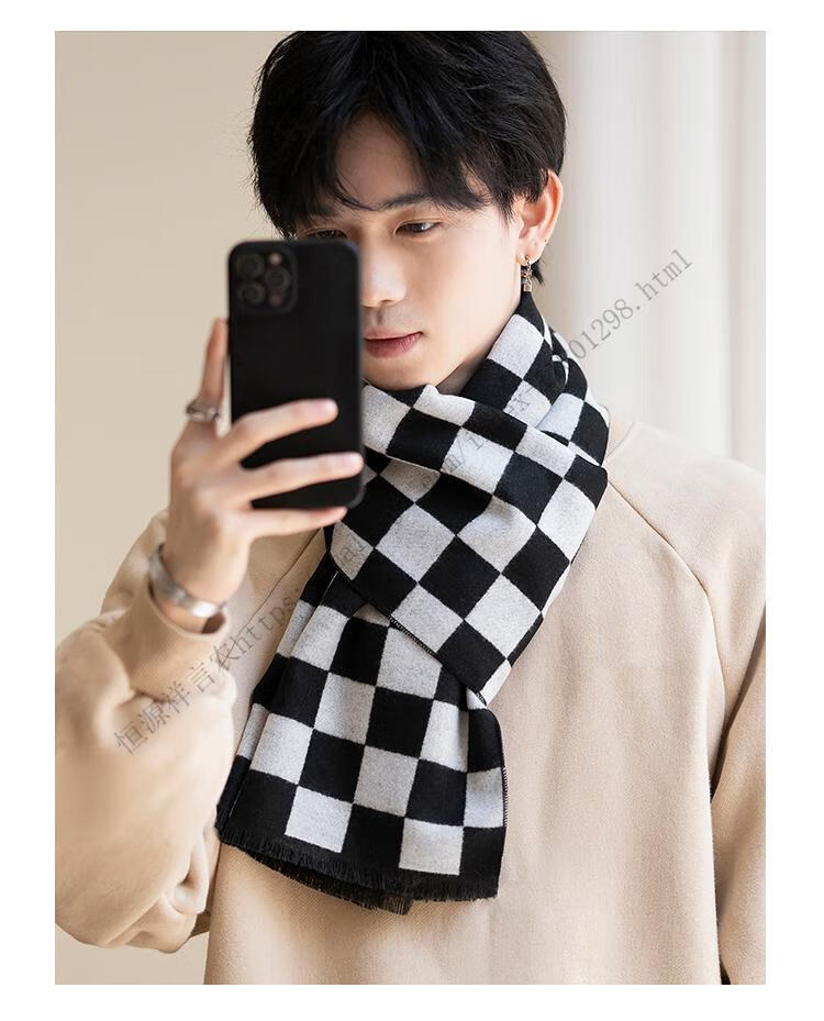 Hengyuanxiang men's scarf black Korean style young people's warm wool scarf men's autumn and winter couple style student versatile scarf 5507-light gray gift box