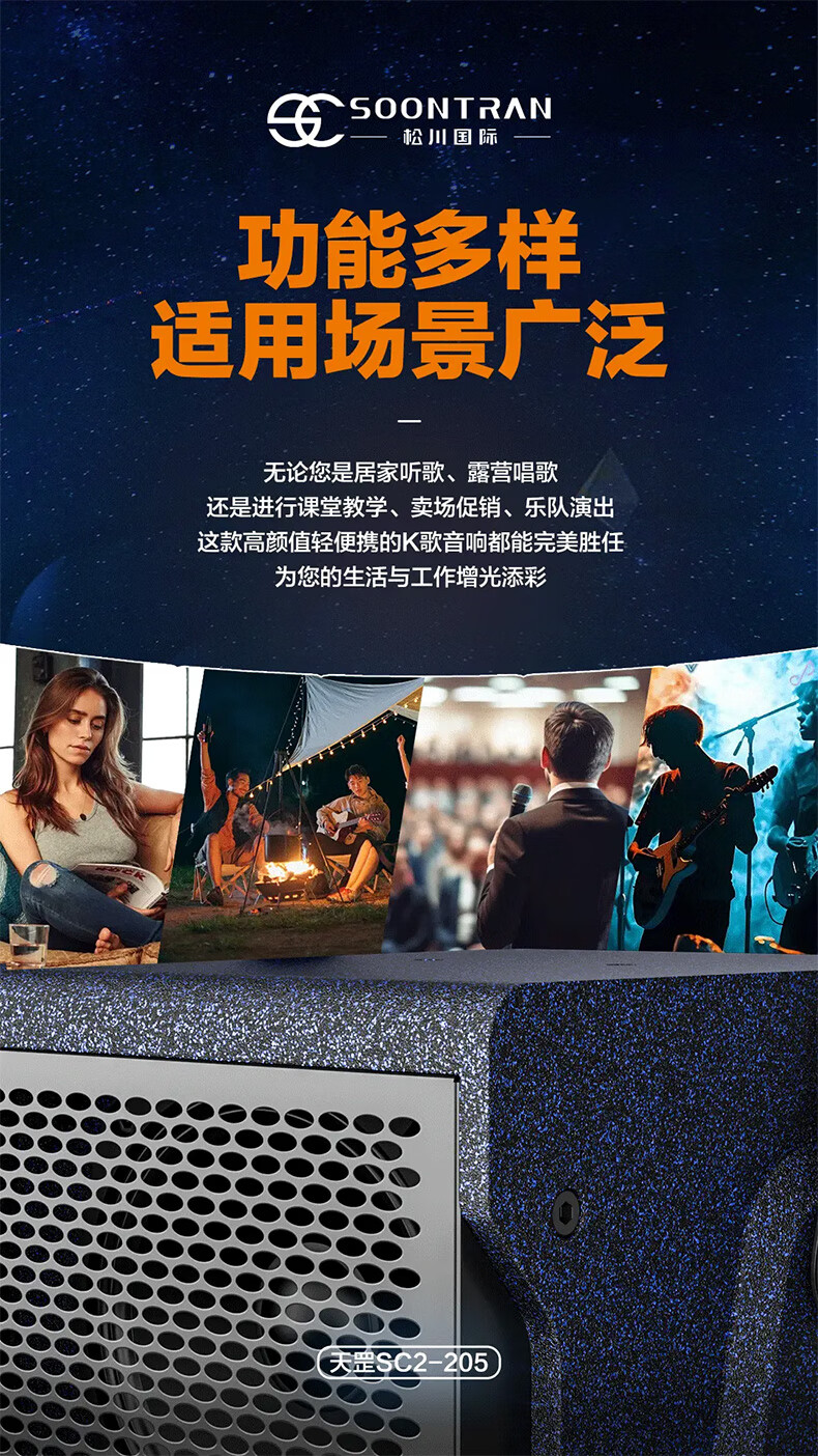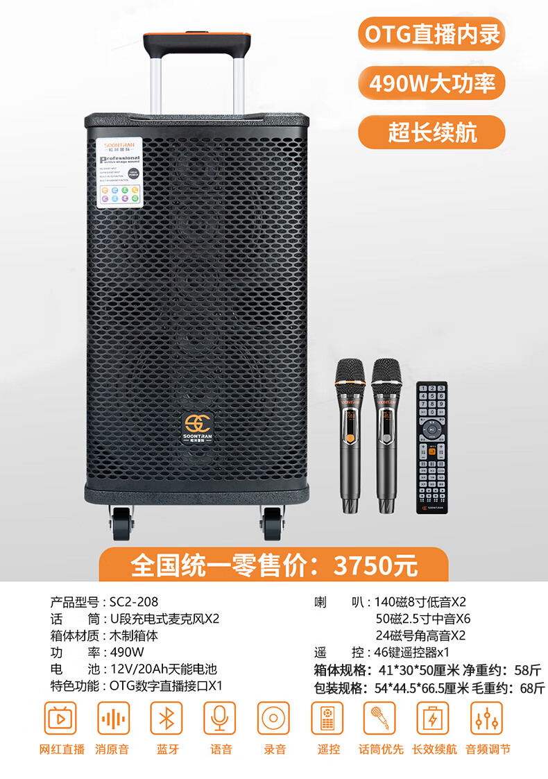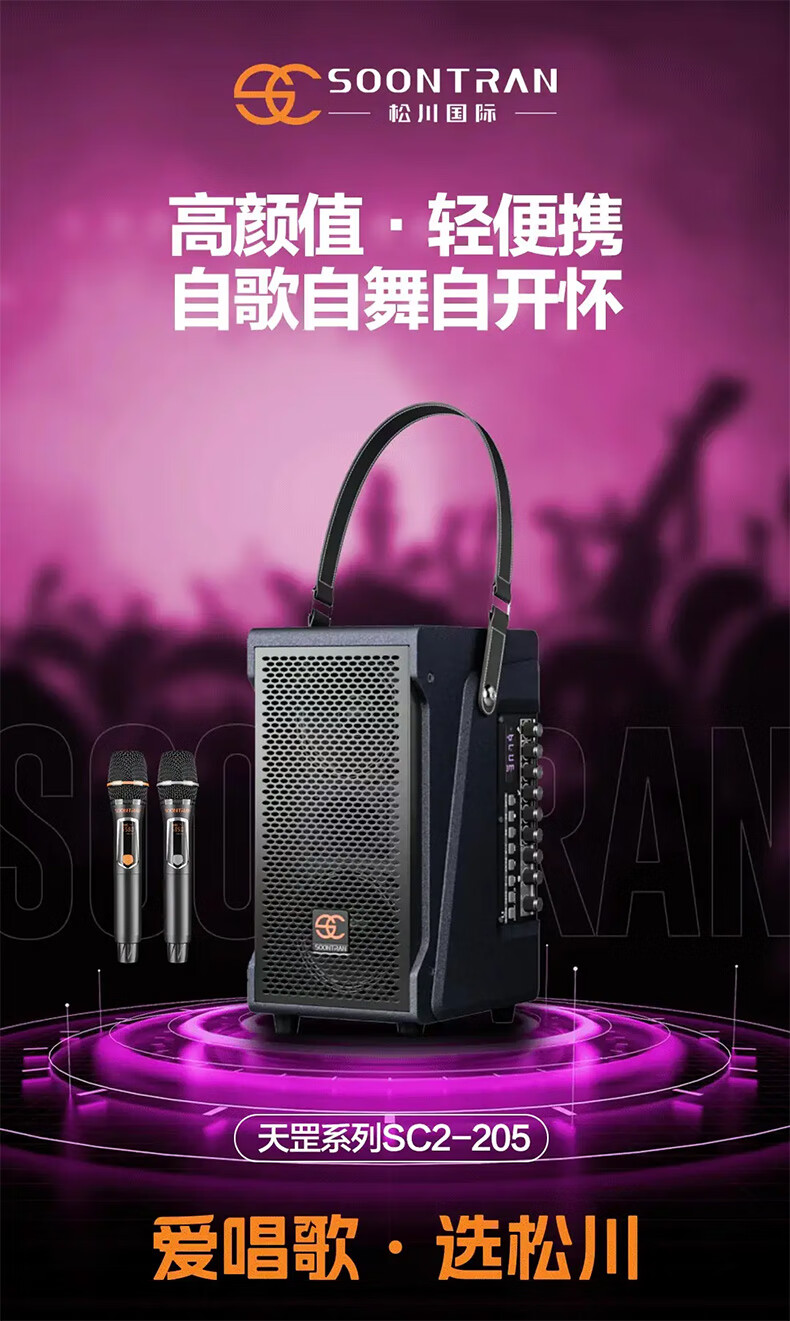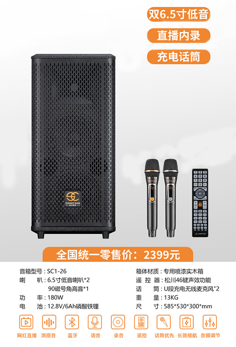 Songchuan International SC2-205 professional high-power performance karaoke audio sound card live karaoke outdoor trolley Bluetooth large speaker SC1-26 dual 6.5-inch live broadcast high-power speakers