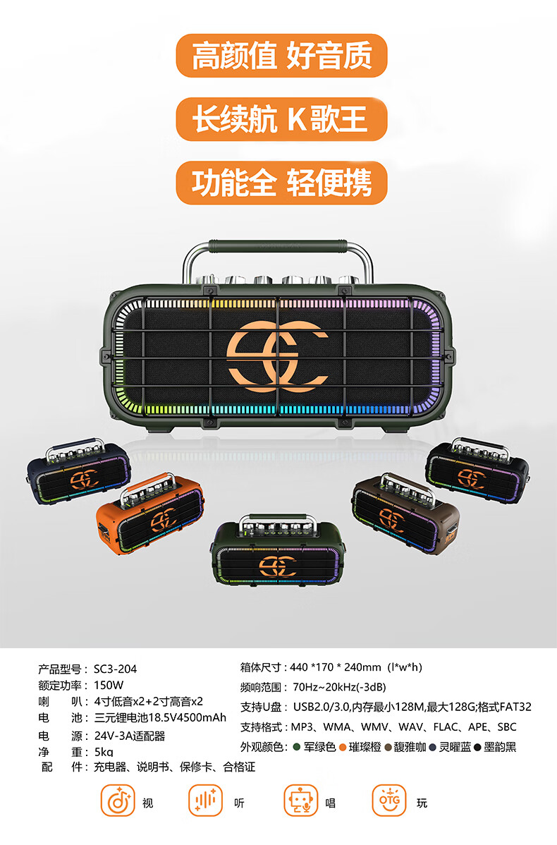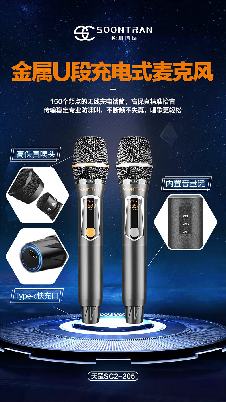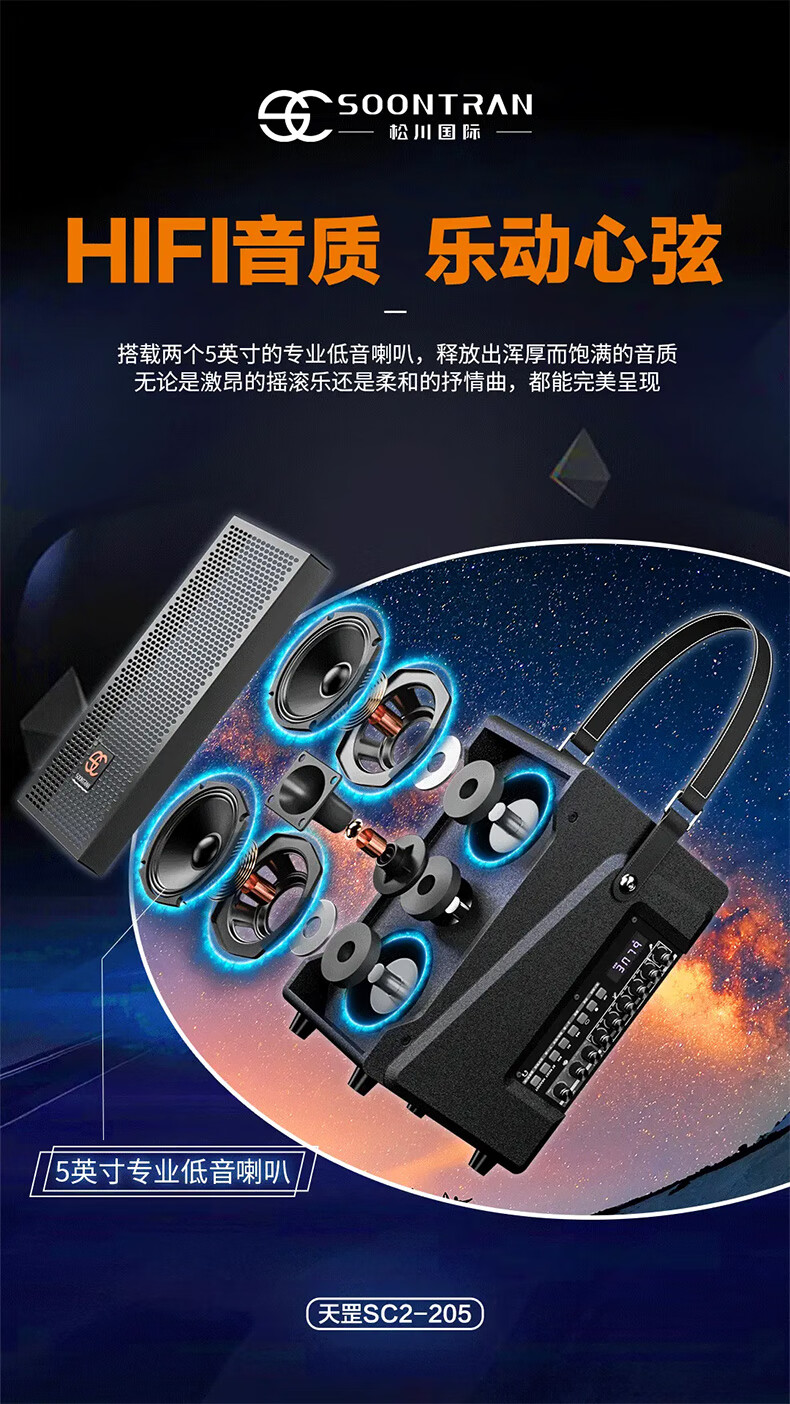 Songchuan International SC2-205 professional high-power performance karaoke audio sound card live karaoke outdoor trolley Bluetooth large speaker SC1-26 dual 6.5-inch live broadcast high-power speakers