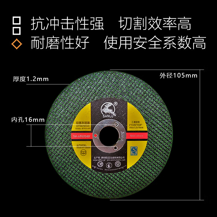 Sanlu 107 green cutting disc grinding wheel disc metal stainless steel special sharp durable safety non-collapse disc 50 pieces/box green 50 pieces/box