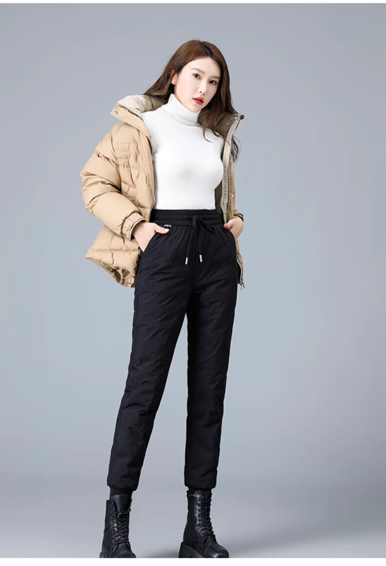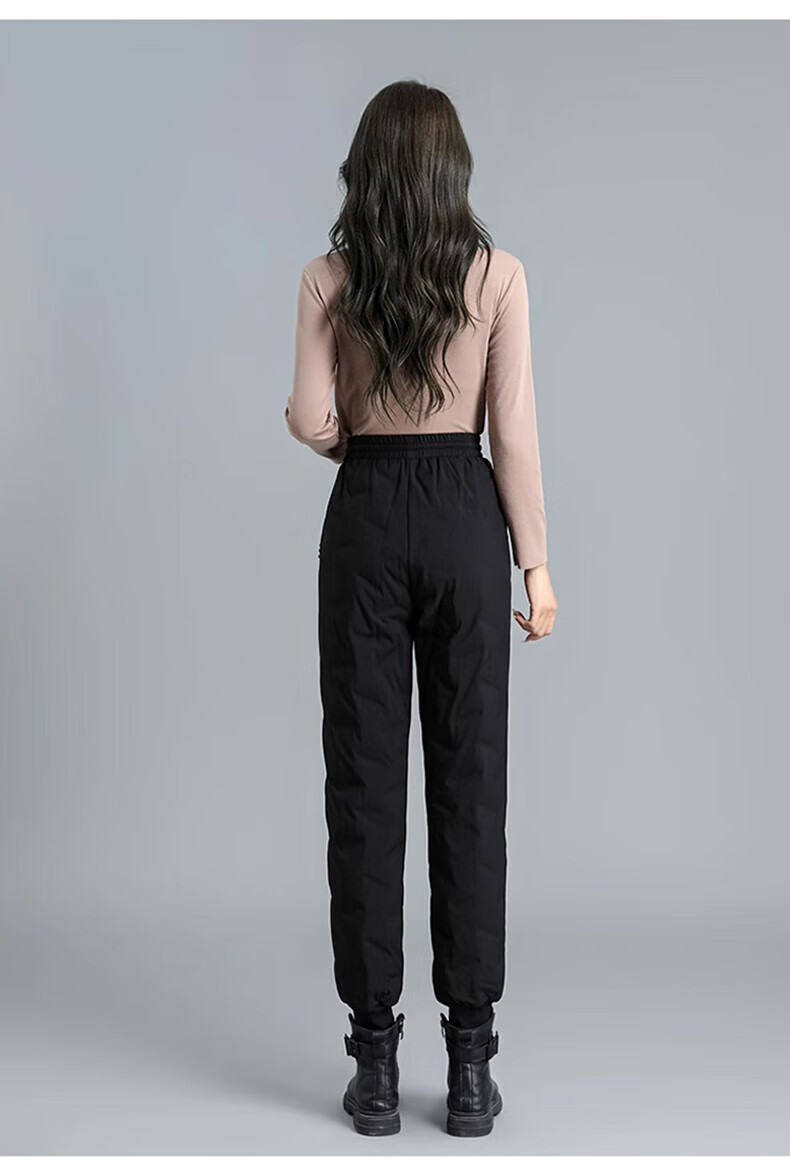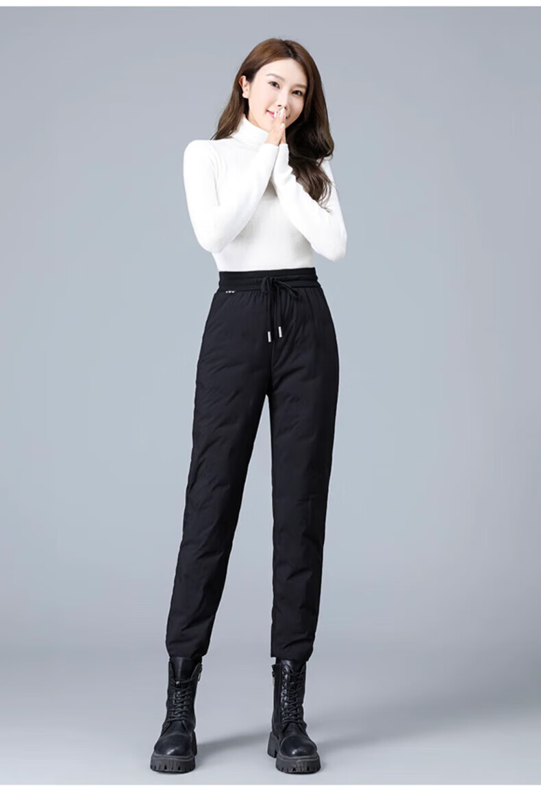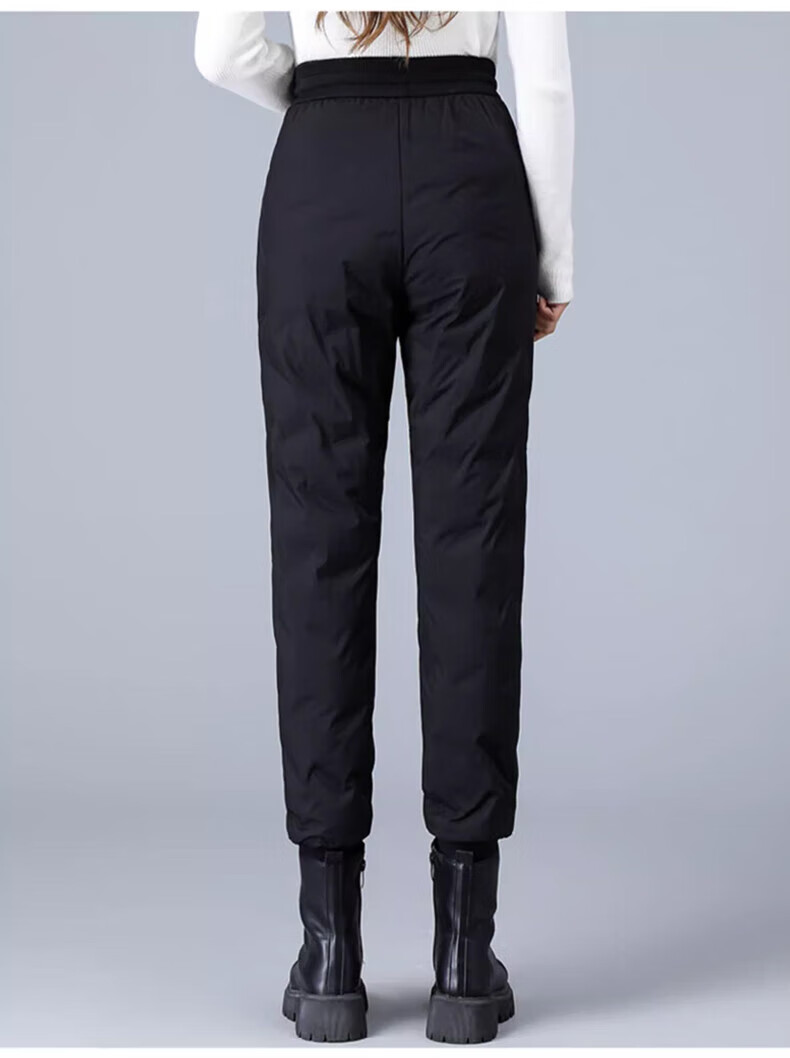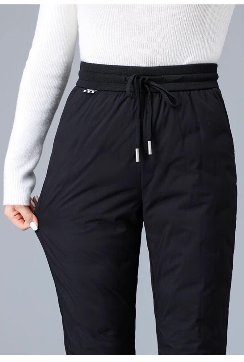 Yalu down pants women's outer wear 2025 winter new style warm slimming high-waisted winter duck down thickened elastic cuffed sweatpants black XL recommended 120-135Jin Jin equals 0.5 kg