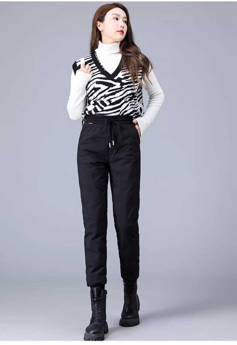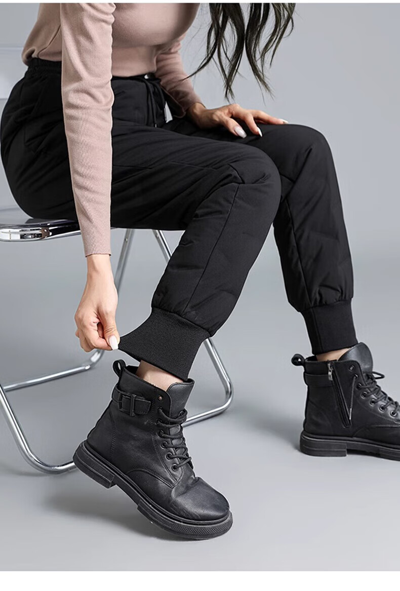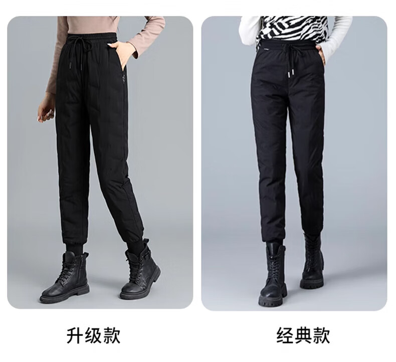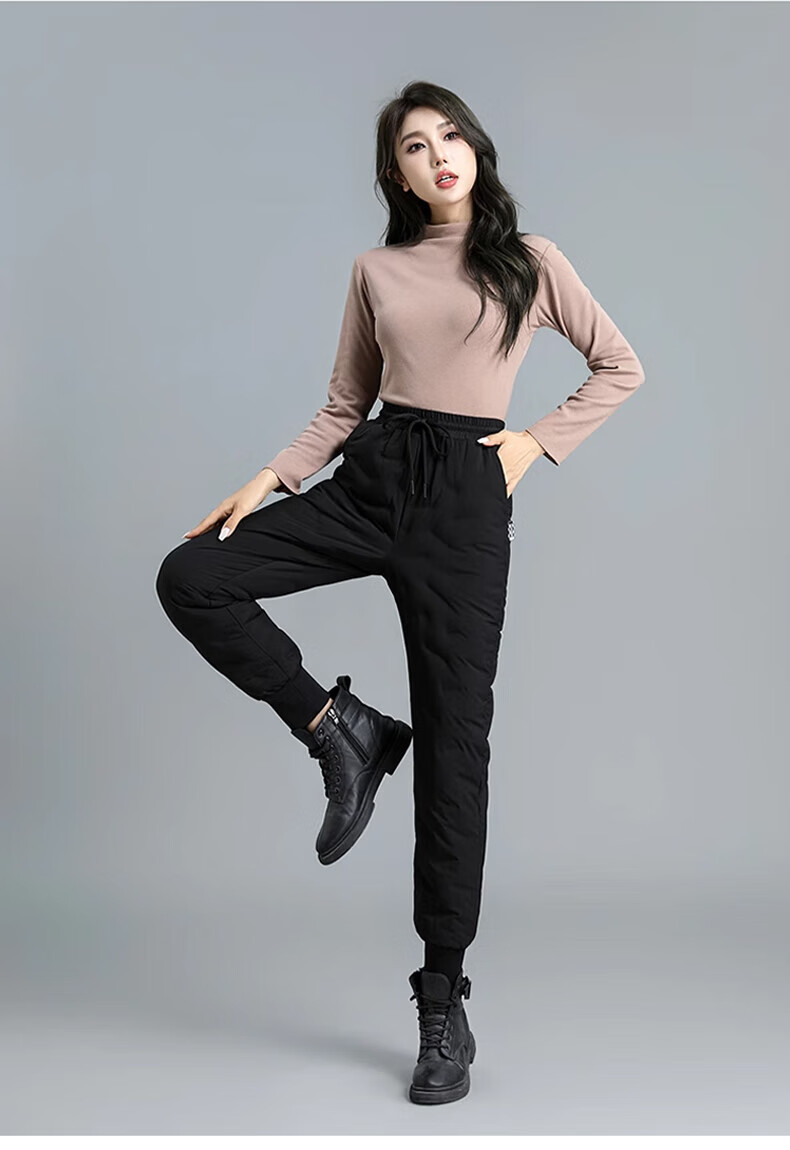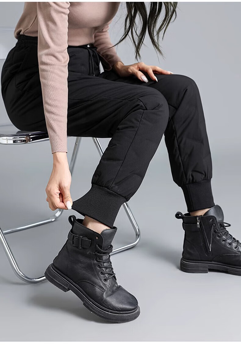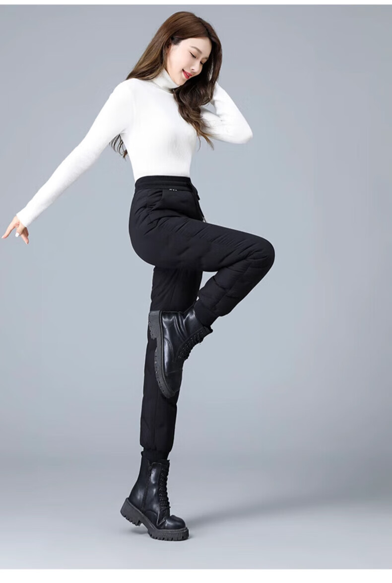 Yalu down pants women's outer wear 2025 winter new style warm slimming high-waisted winter duck down thickened elastic cuffed sweatpants black XL recommended 120-135Jin Jin equals 0.5 kg