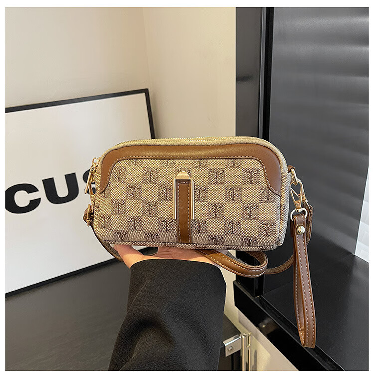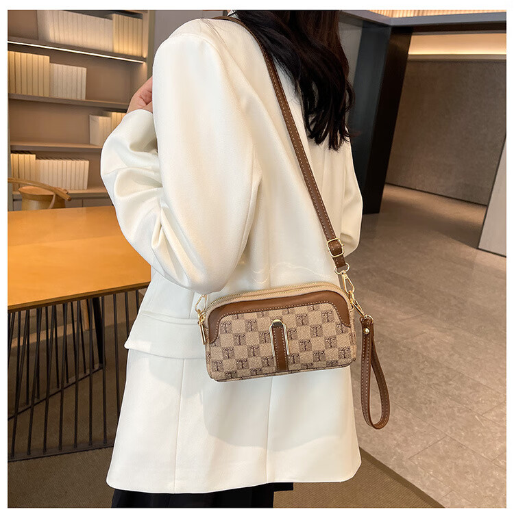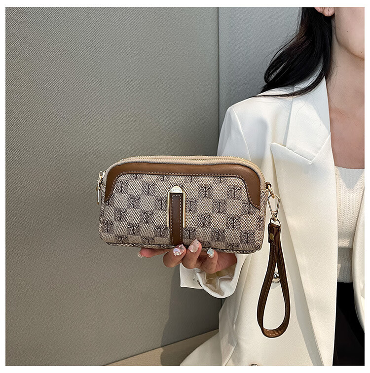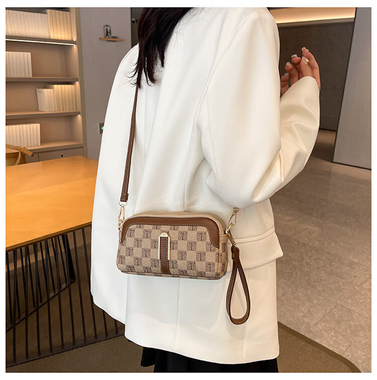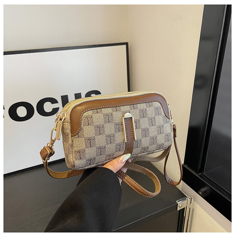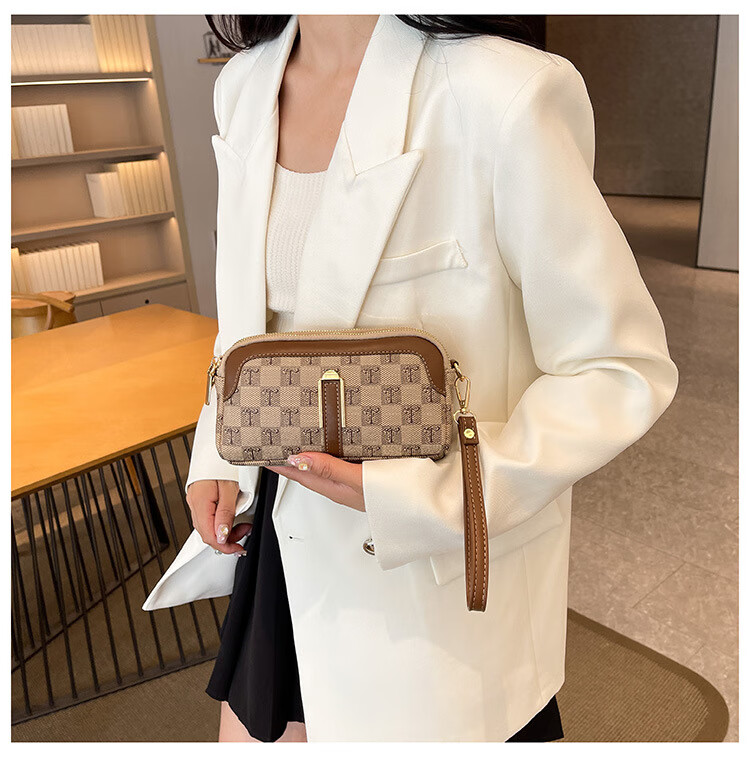 Hao'e clutch bag coin purse women's new high-end portable small fragrance style women's bag casual square bag single shoulder crossbody bag multi-compartment high-end women's square bag khaki color