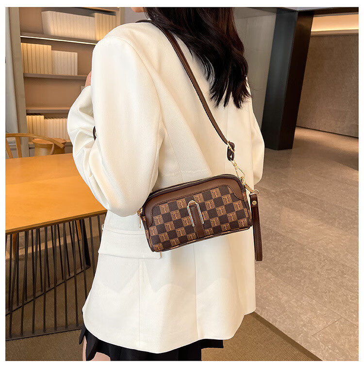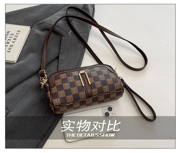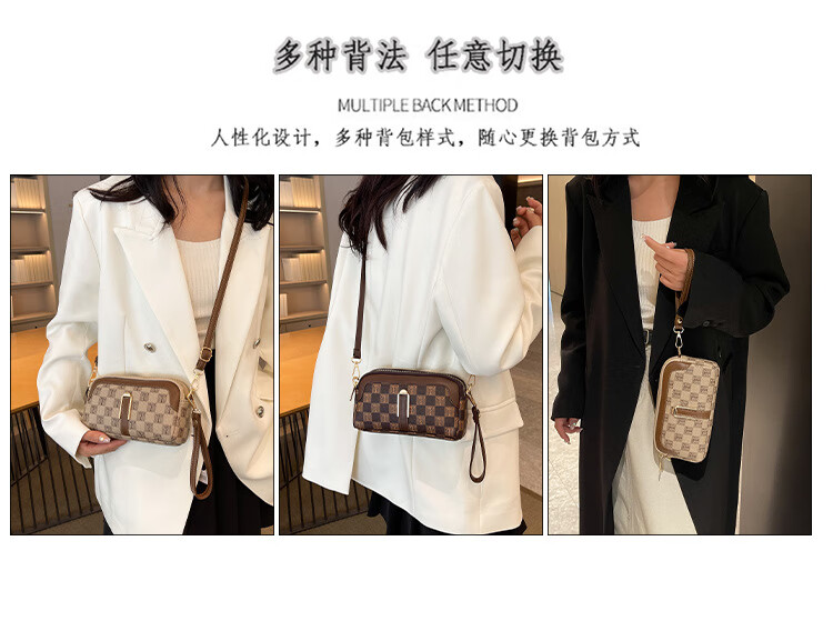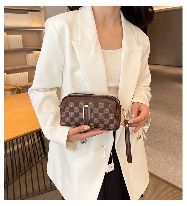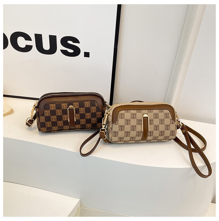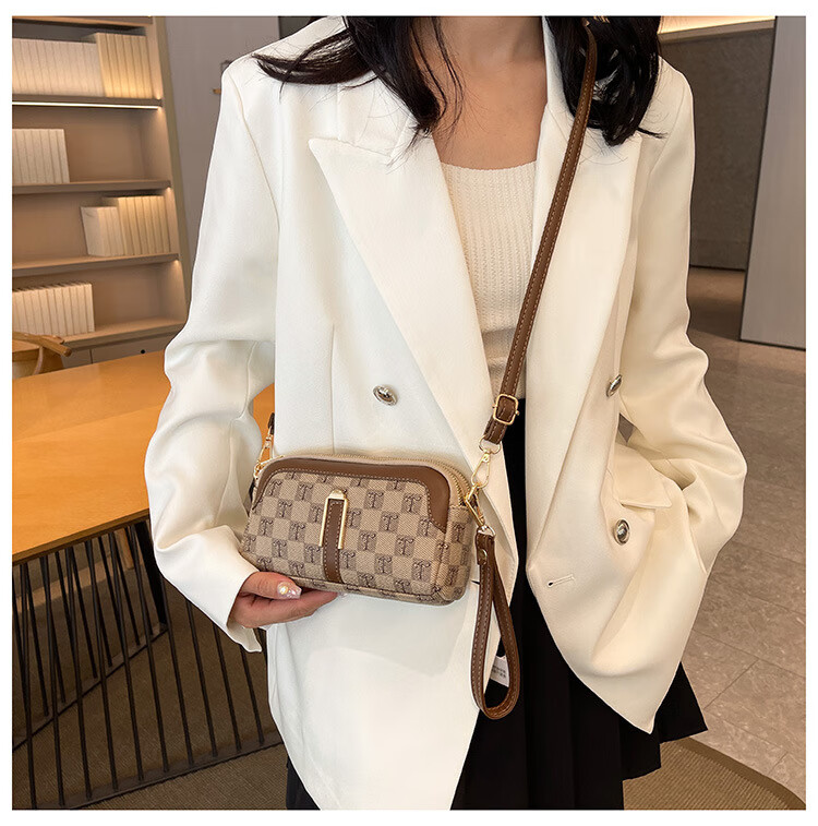 Hao'e clutch bag coin purse women's new high-end portable small fragrance style women's bag casual square bag single shoulder crossbody bag multi-compartment high-end women's square bag khaki color