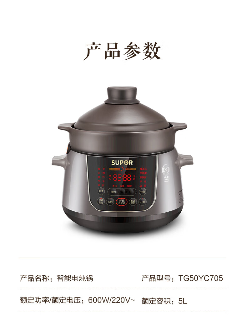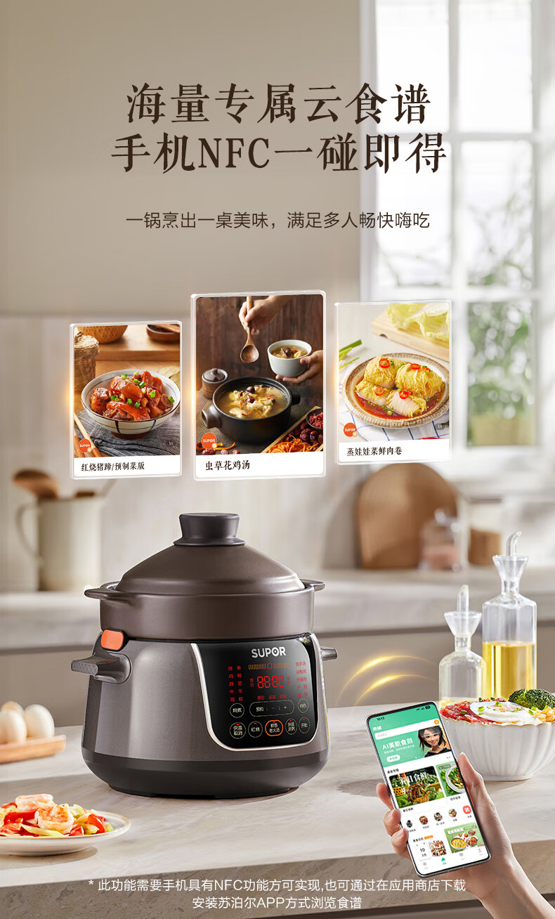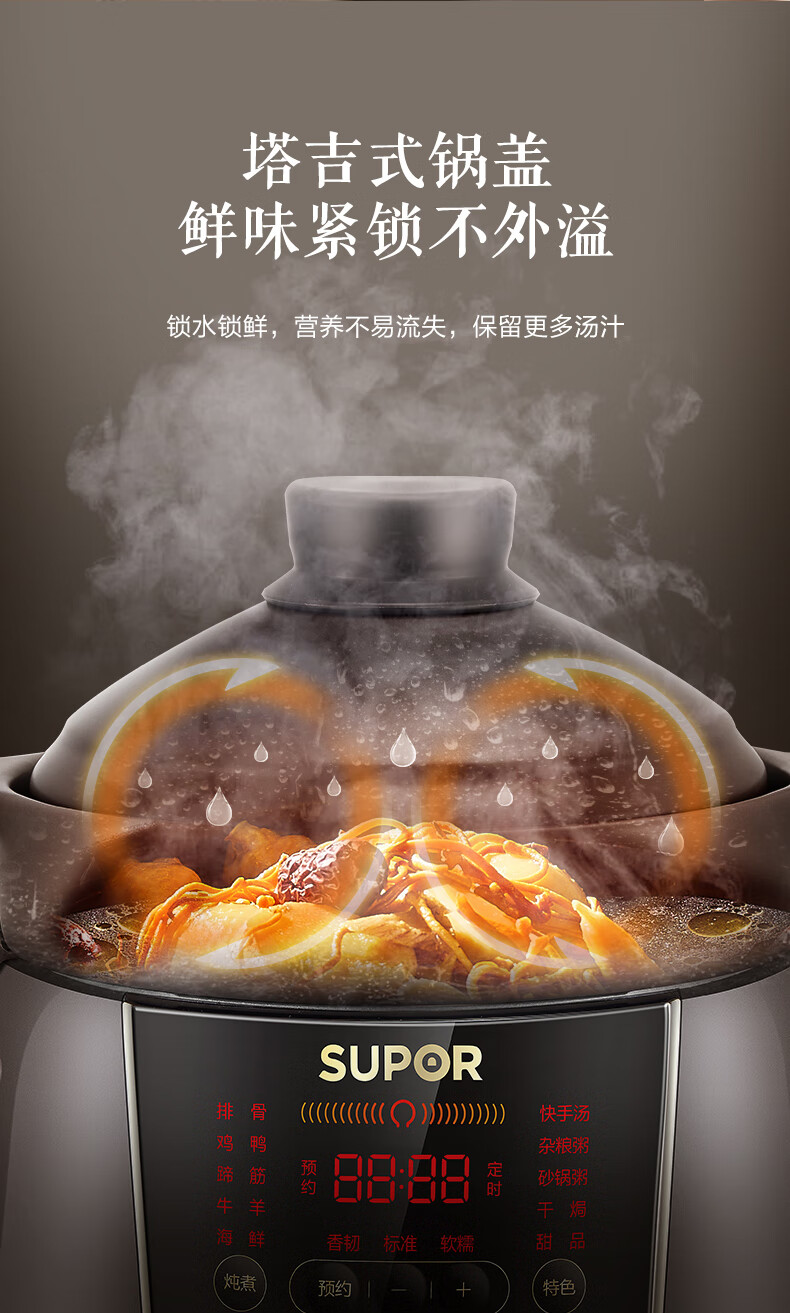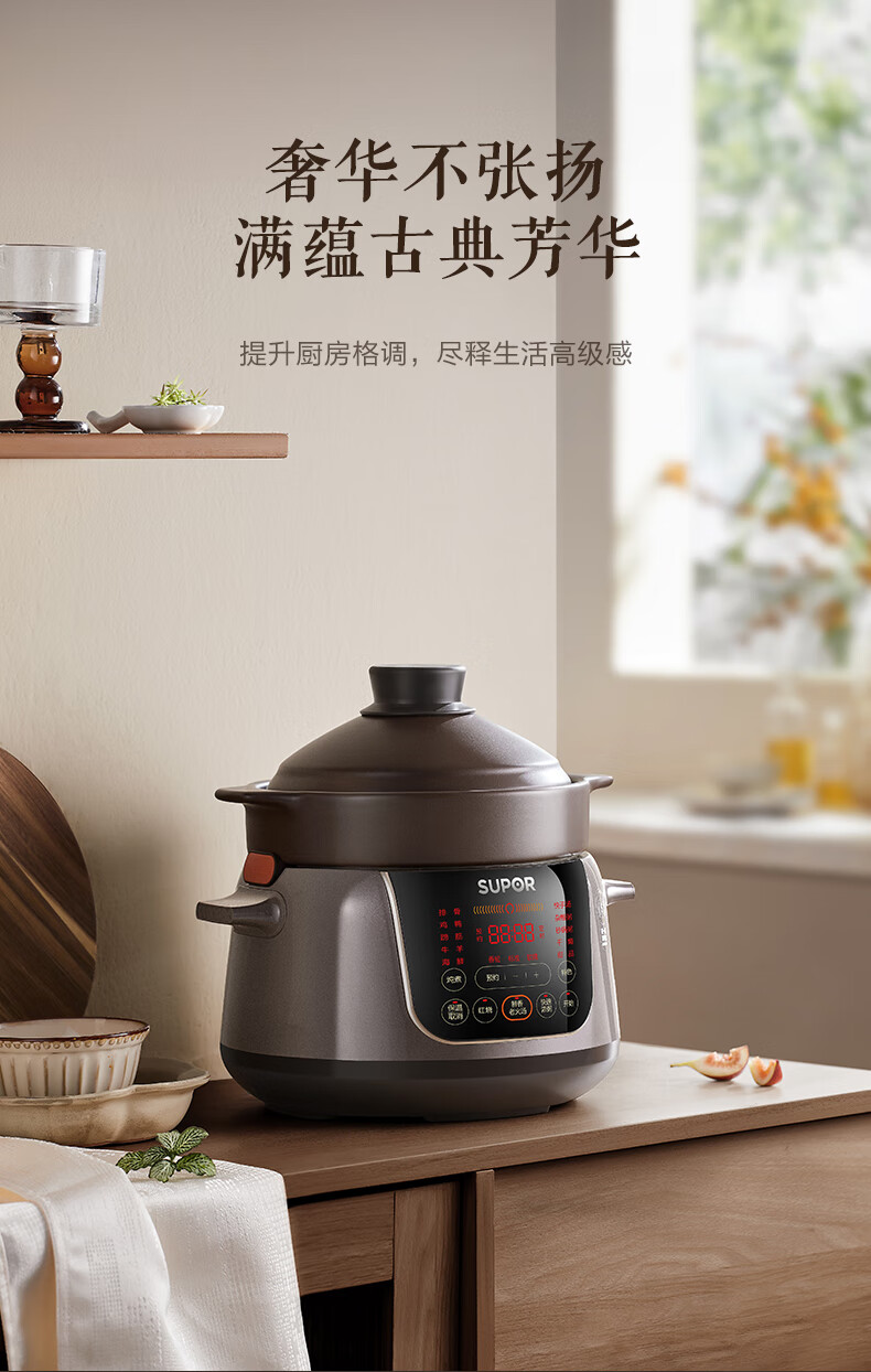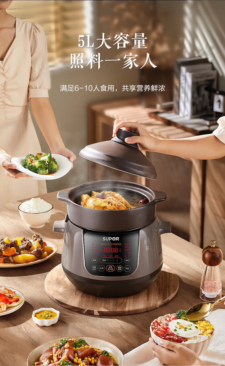 SUPOR electric stew pot, household 5L large-capacity soup pot, electric stew pot, multi-function pot, high-power electric stew pot, direct stew electric stew pot, nutritional food supplement pot, porridge artifact, micro-pressure stew + 1.5H fast soup, Chinese incandescent pottery liner 5L