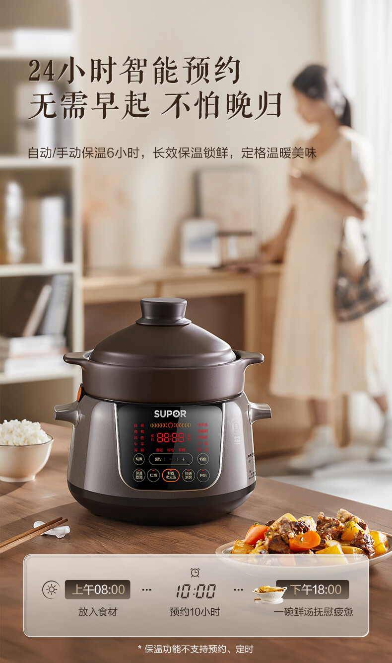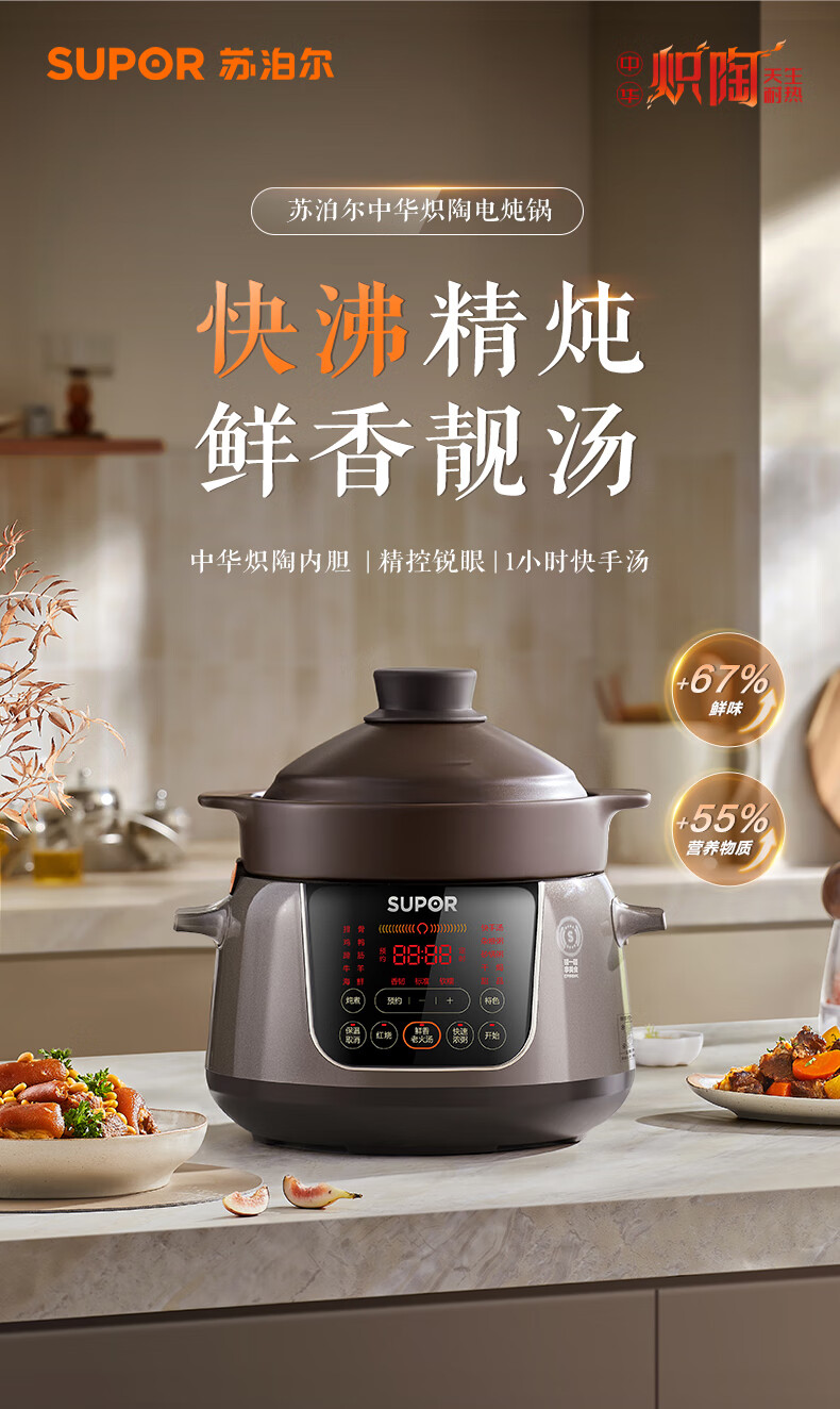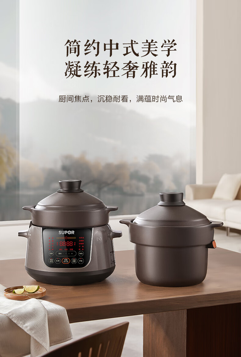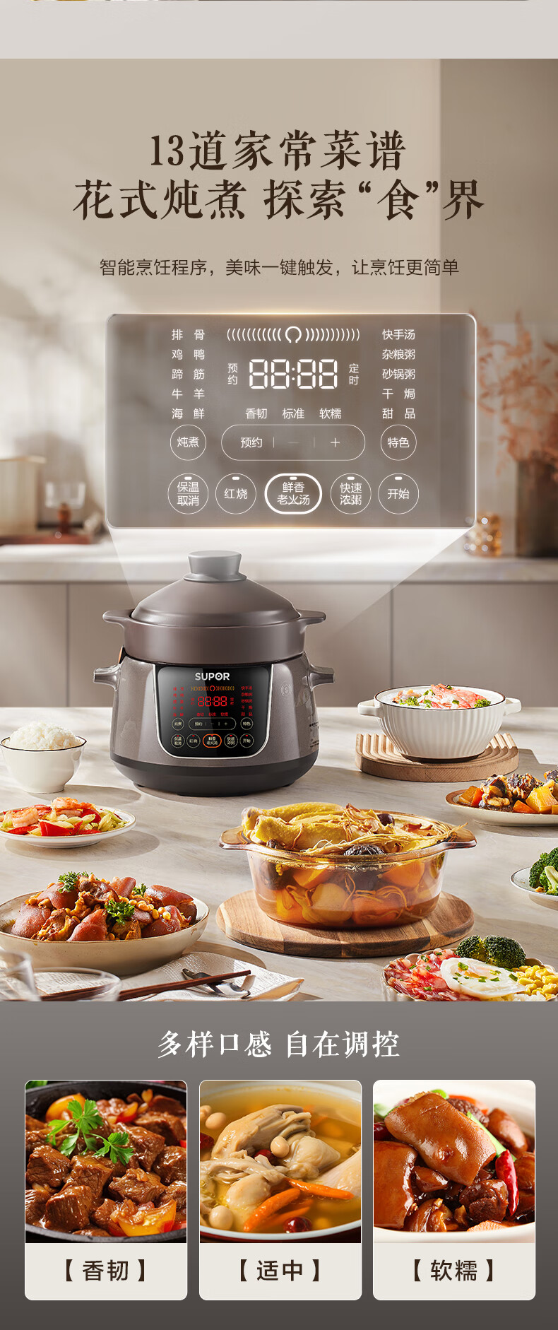 SUPOR electric stew pot, household 5L large-capacity soup pot, electric stew pot, multi-function pot, high-power electric stew pot, direct stew electric stew pot, nutritional food supplement pot, porridge artifact, micro-pressure stew + 1.5H fast soup, Chinese incandescent pottery liner 5L