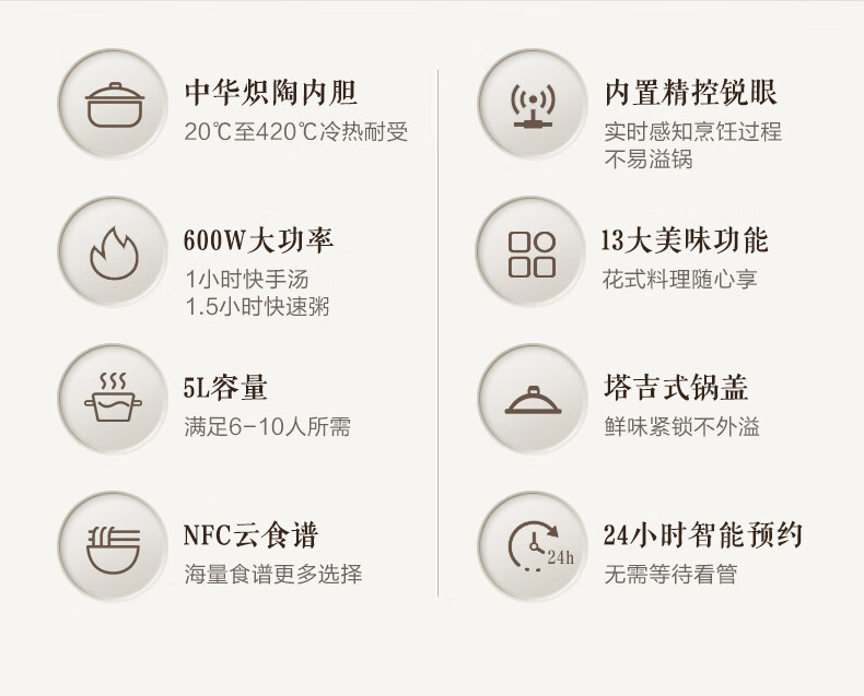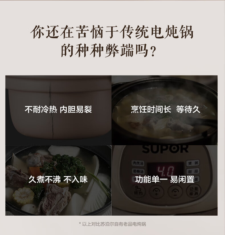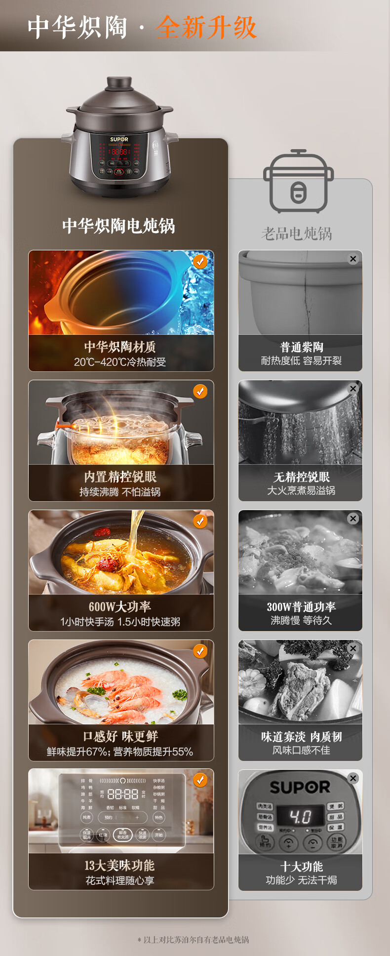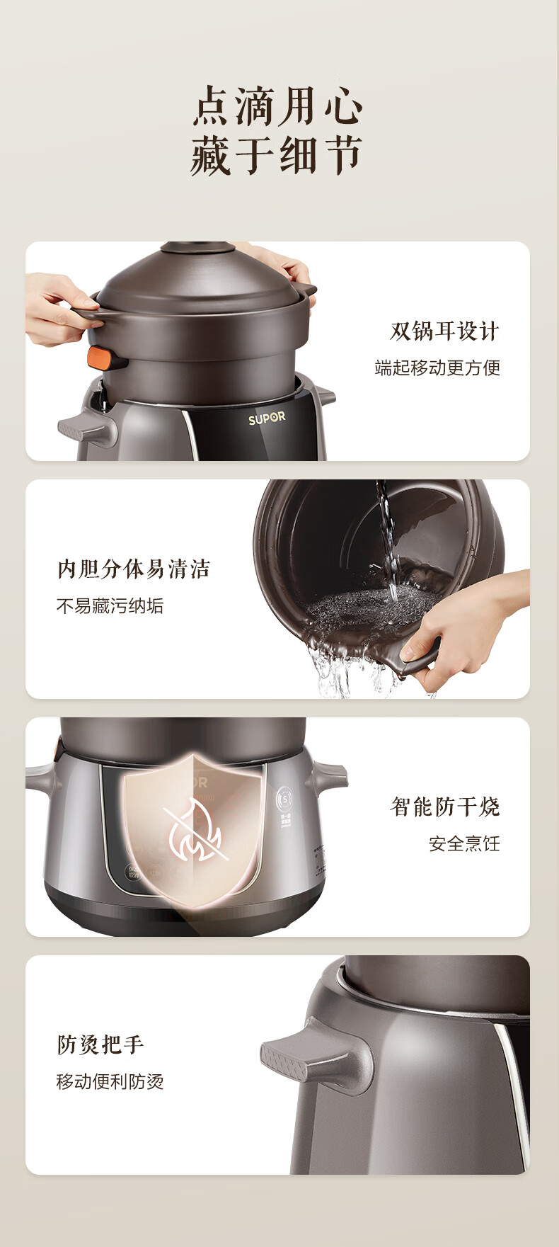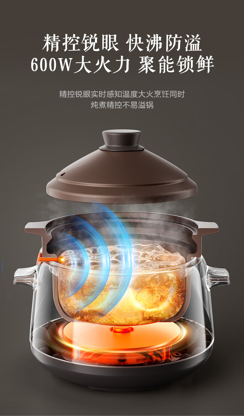 SUPOR electric stew pot, household 5L large-capacity soup pot, electric stew pot, multi-function pot, high-power electric stew pot, direct stew electric stew pot, nutritional food supplement pot, porridge artifact, micro-pressure stew + 1.5H fast soup, Chinese incandescent pottery liner 5L