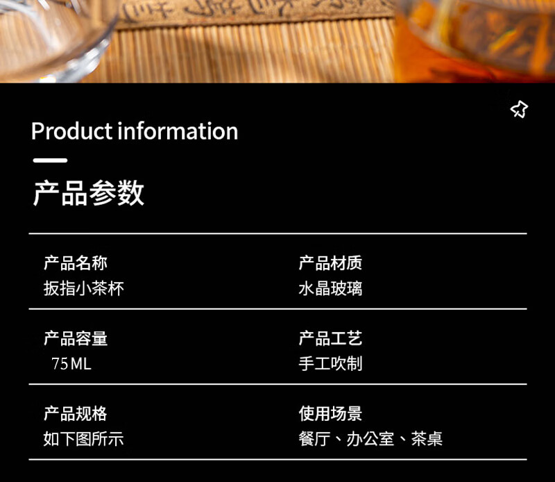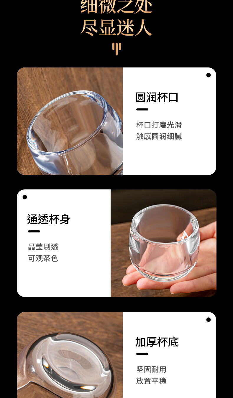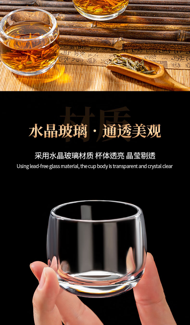 Toggle cup, high-end glass master cup, personal single cup, transparent Kung Fu tea cup, tea set, war drum cup, high-end 75ml (1 piece)