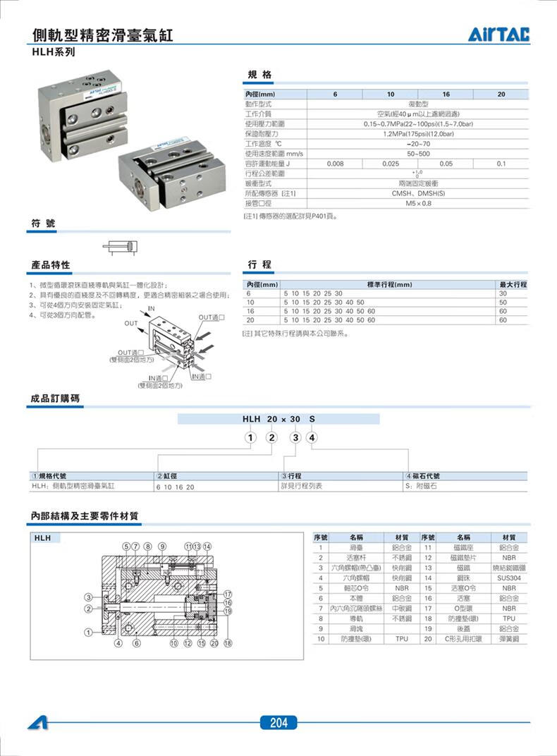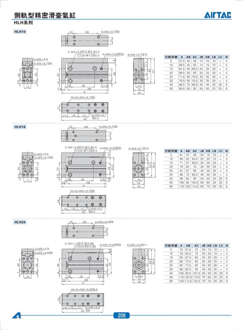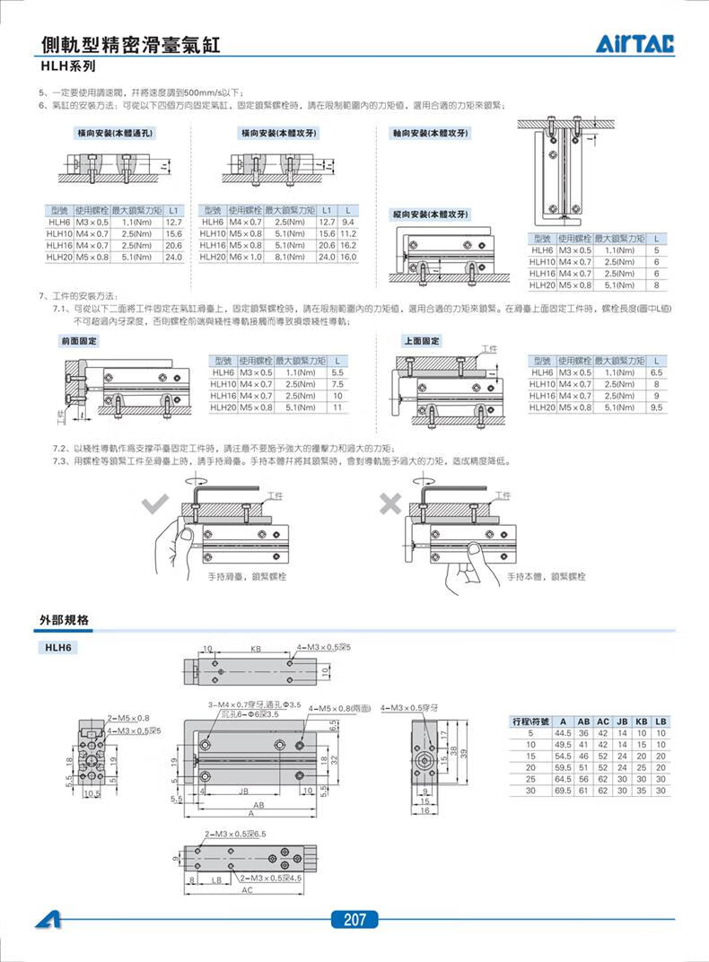AirTAC HLH6X5X10X15X20X25X30S side track precision slide cylinder HLH6X15S