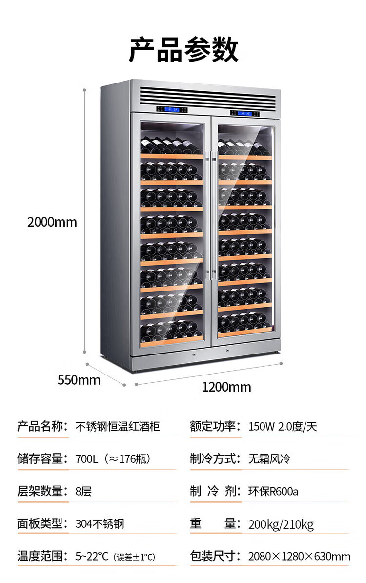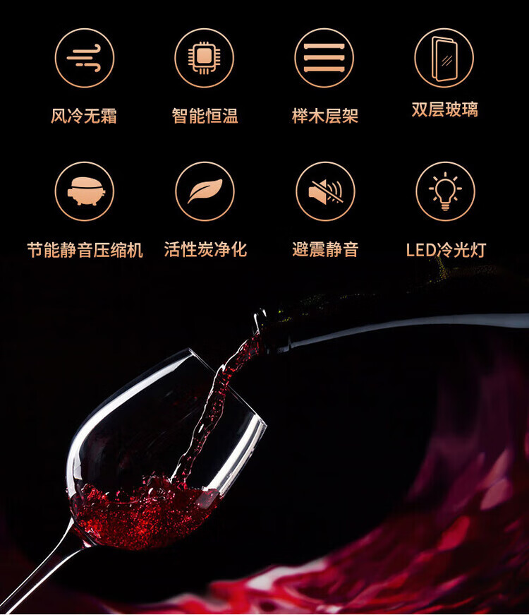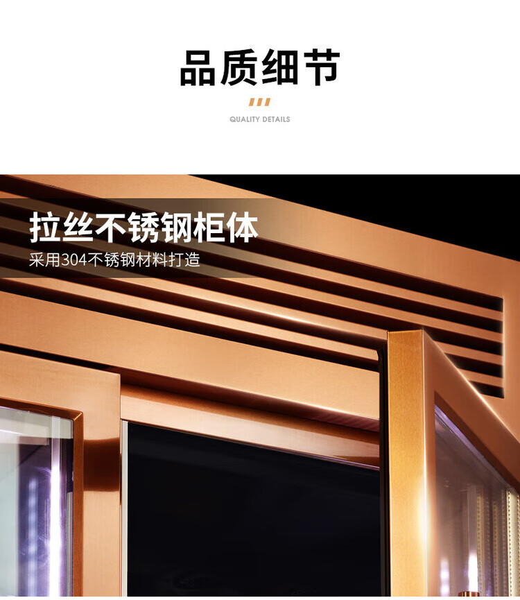CIGARLOONG CL-320WB Red Wine Cabinet Stainless Steel Constant Temperature Wine Cabinet Intelligent Negative Ion Purification Double Door Air Cooling Rose Gold Full Version