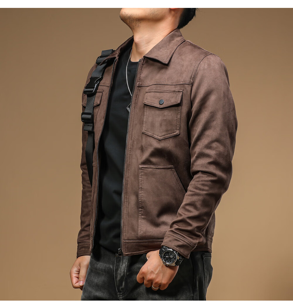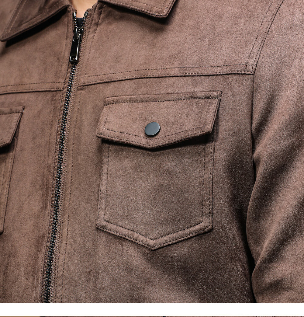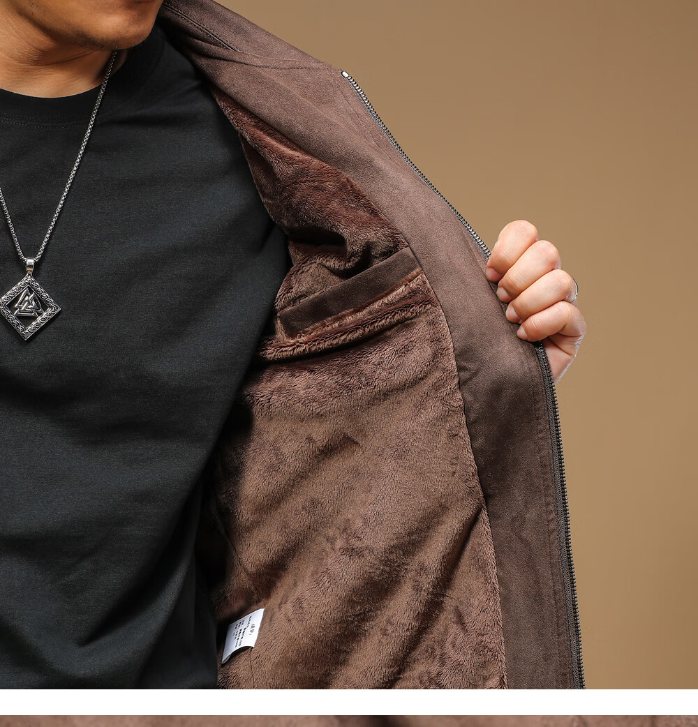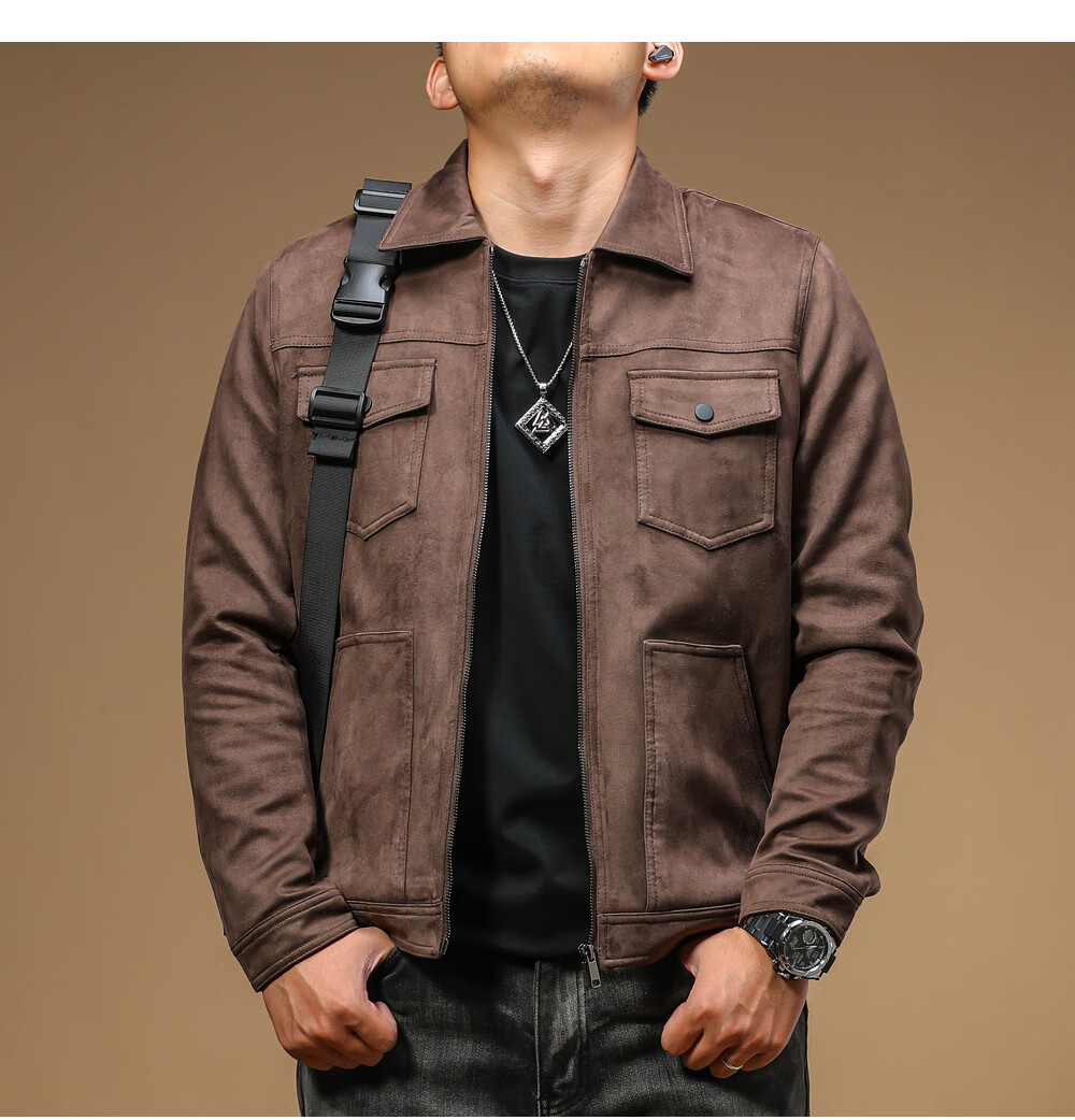 Jiyan Chao Luxury Leather Jacket Men's Winter Velvet Thickened Windproof Warm Lapel Multi-Pocket Men's Casual Jacket Coat Premium Khaki 2XL