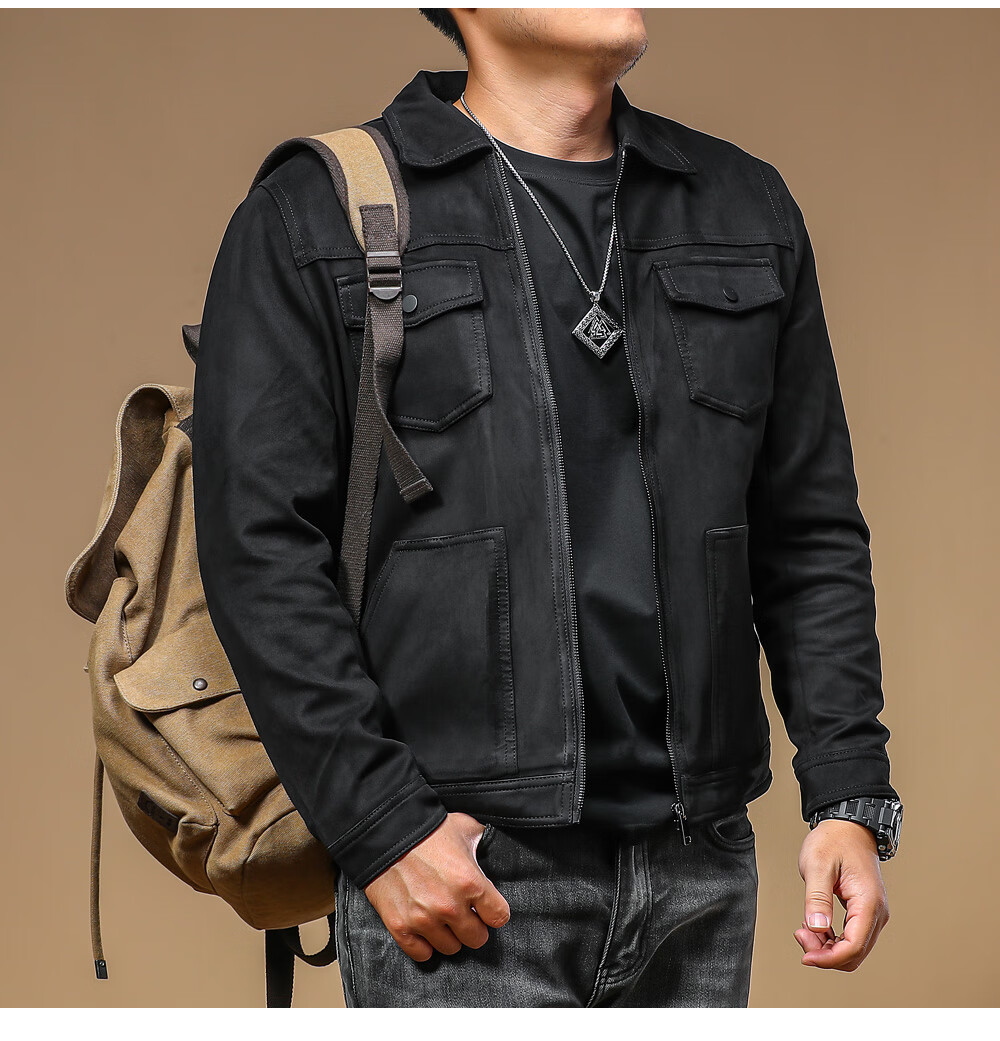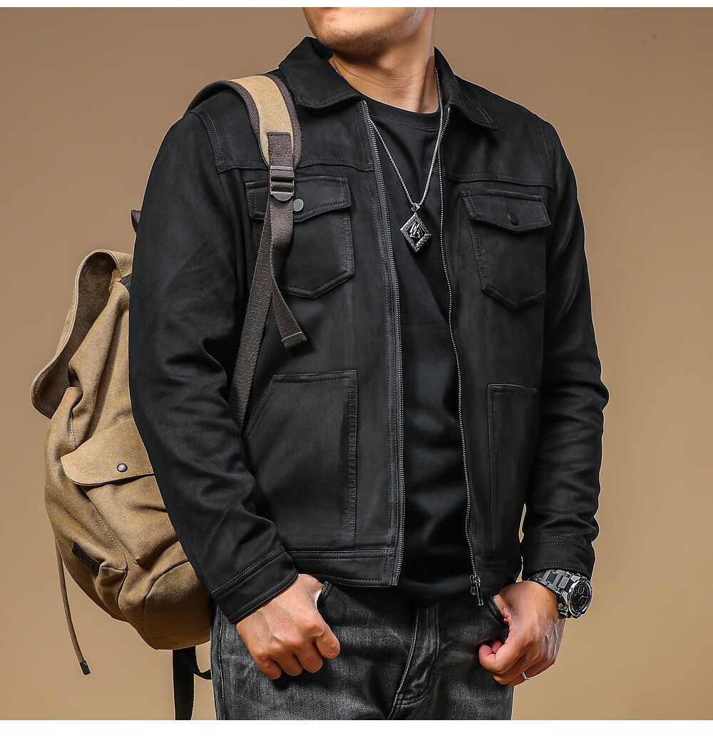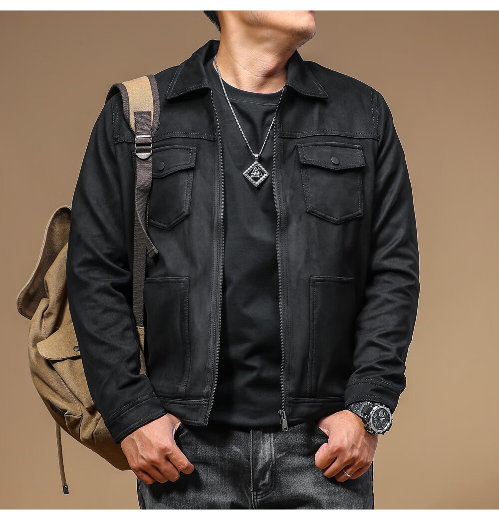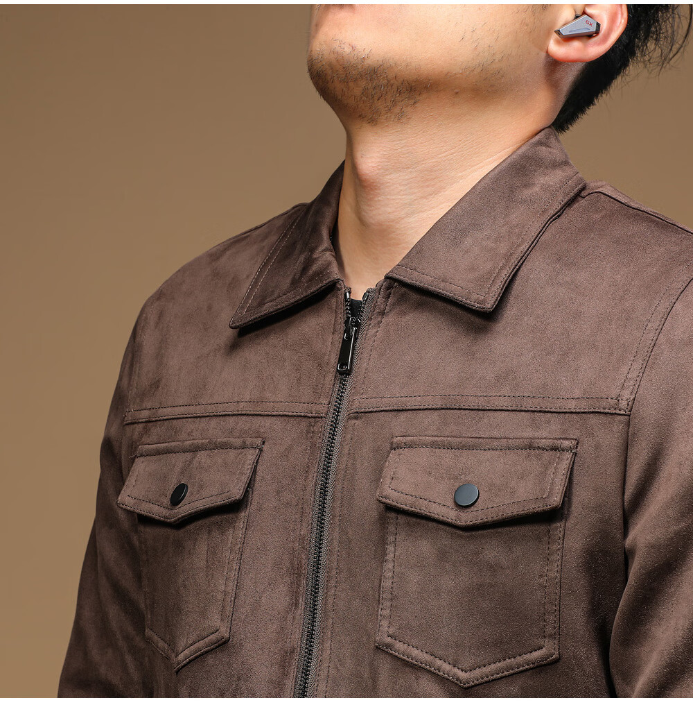 Jiyan Chao Luxury Leather Jacket Men's Winter Velvet Thickened Windproof Warm Lapel Multi-Pocket Men's Casual Jacket Coat Premium Khaki 2XL