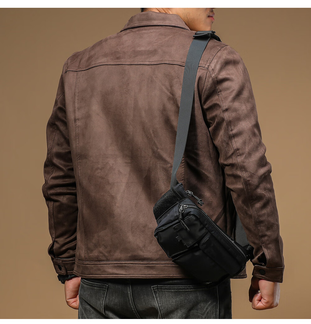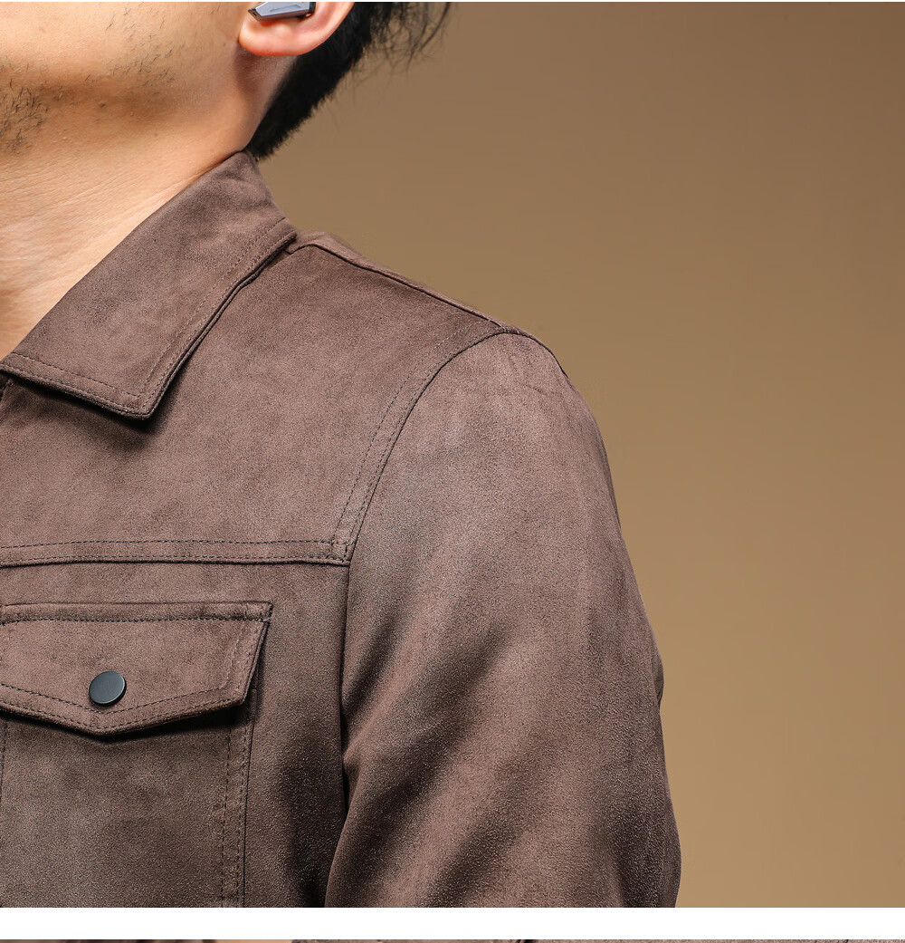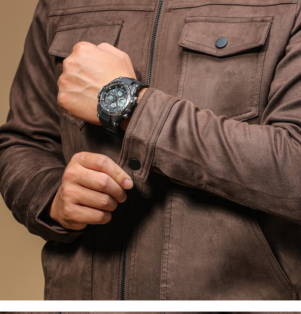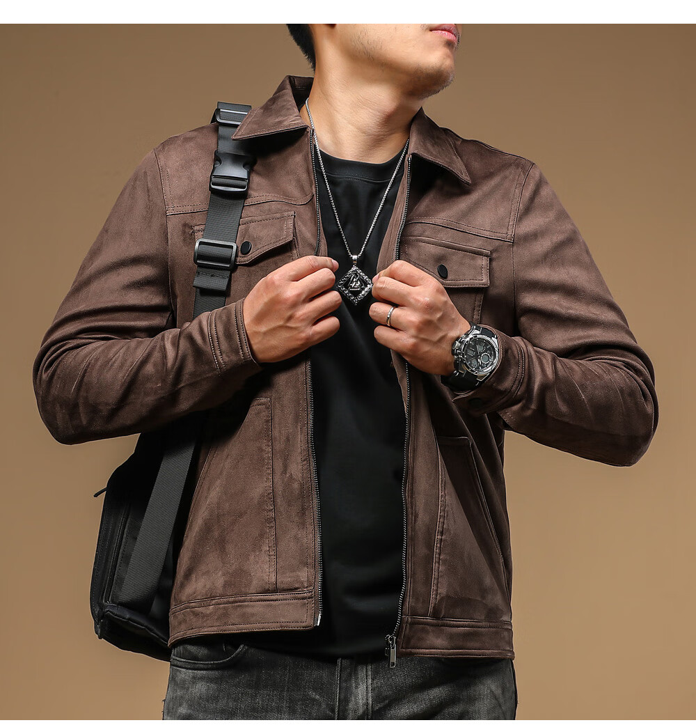 Jiyan Chao Luxury Leather Jacket Men's Winter Velvet Thickened Windproof Warm Lapel Multi-Pocket Men's Casual Jacket Coat Premium Khaki 2XL