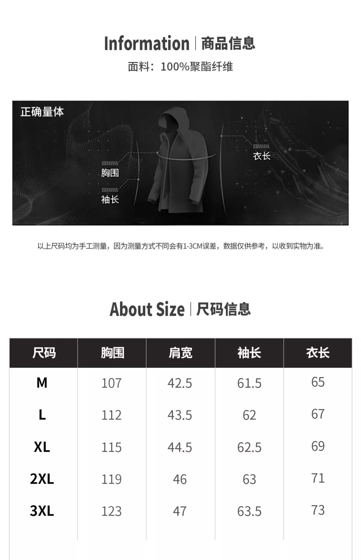 China (cm) 165 / 88-90 170 / 96-98 175 / 108-110 180 / 118-122 185 / 126-130