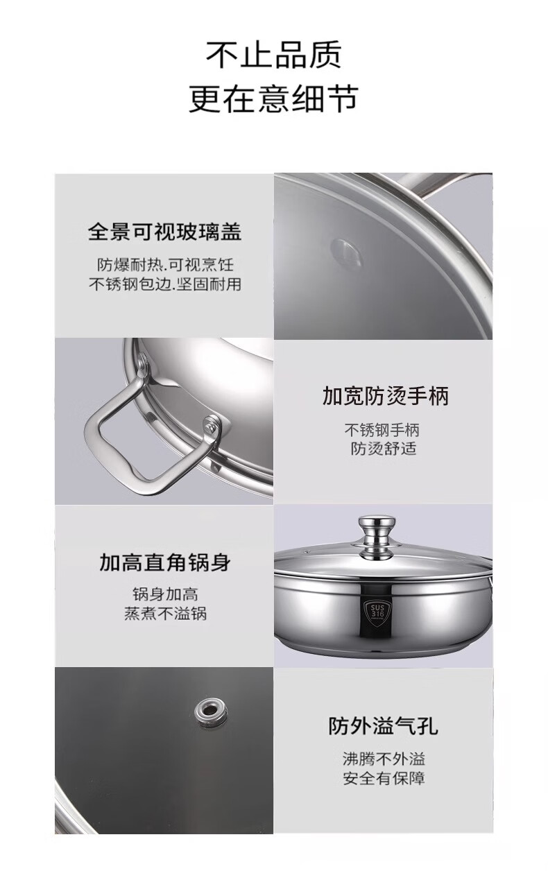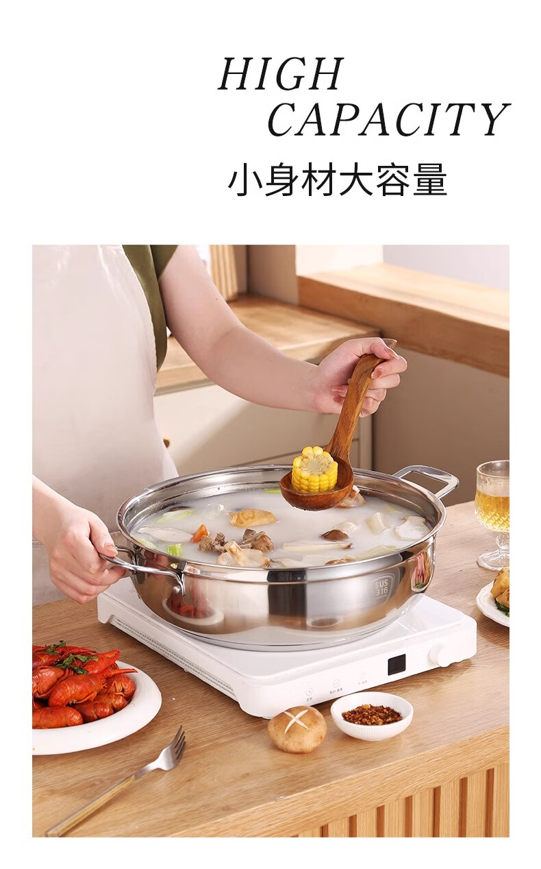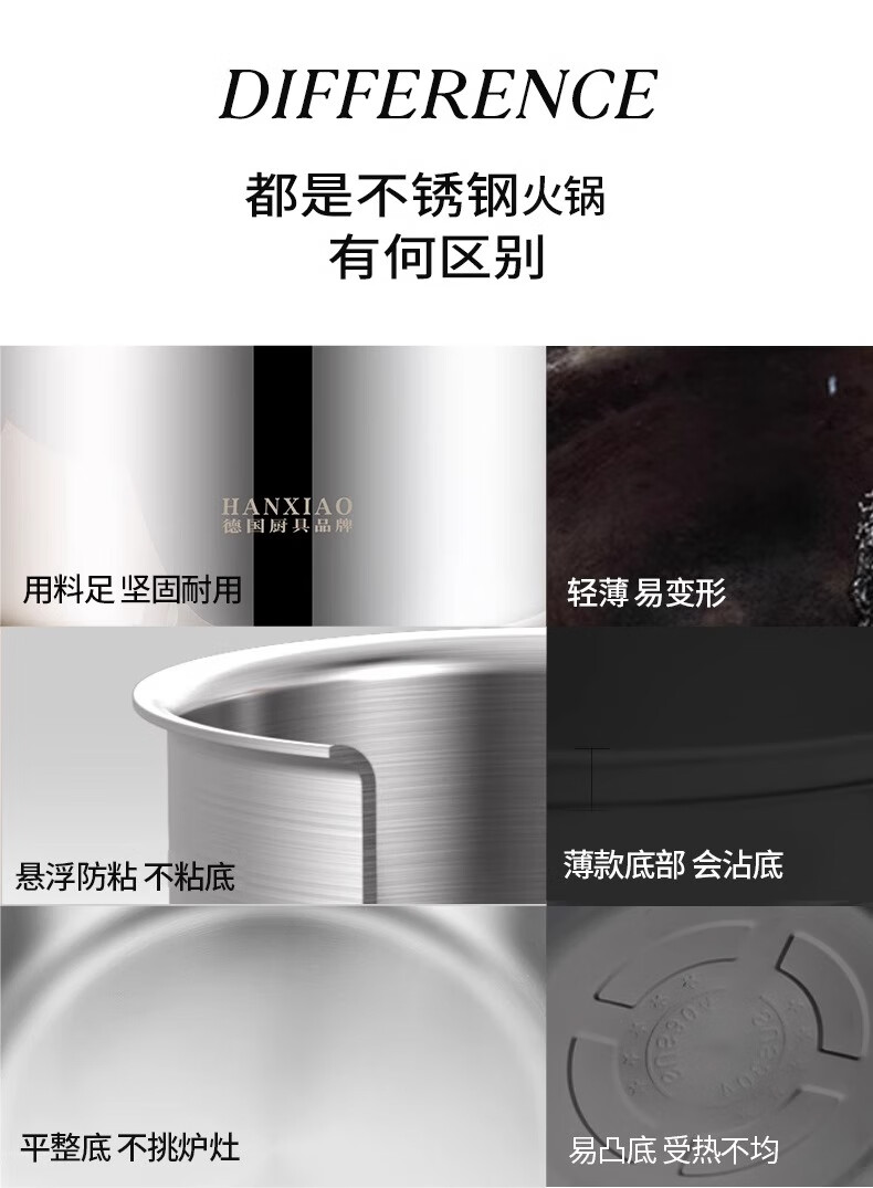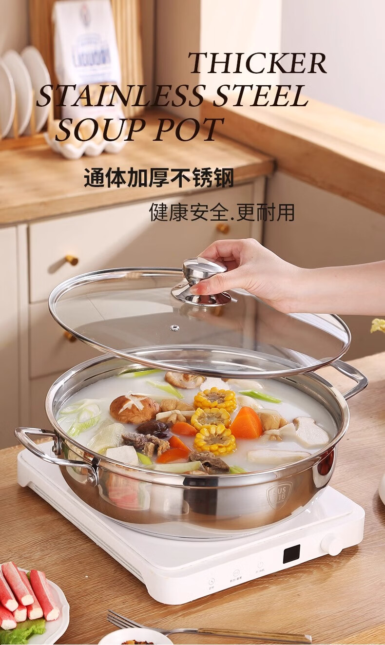 Hanxiao food grade thickened 316 stainless steel soup pot induction cooker hot pot special pot household large capacity hot pot basin German brand 316 soup pot four-piece set 32cm