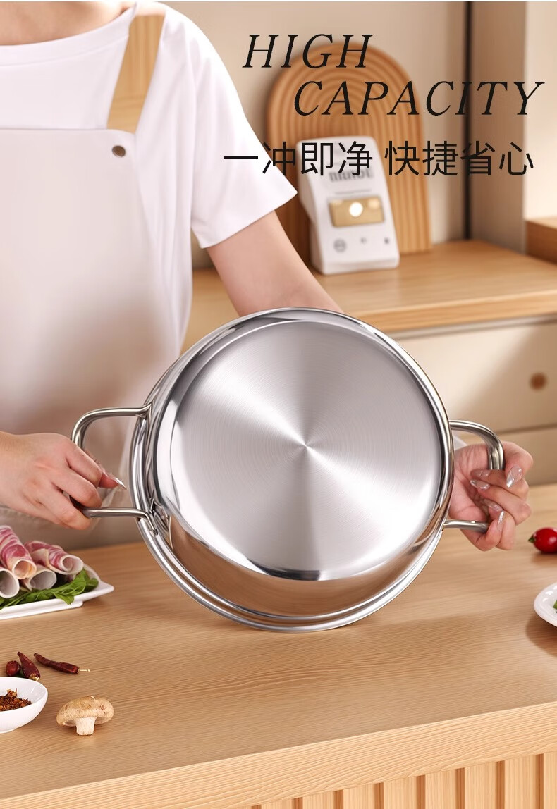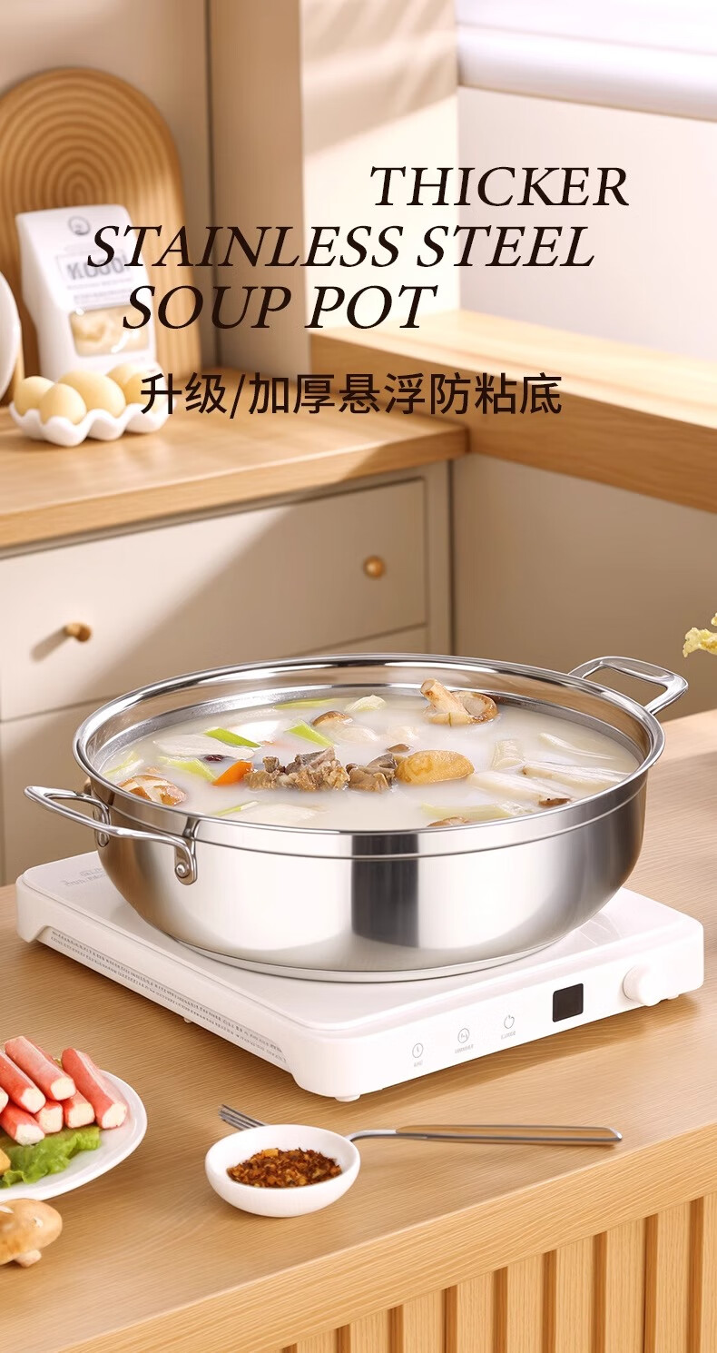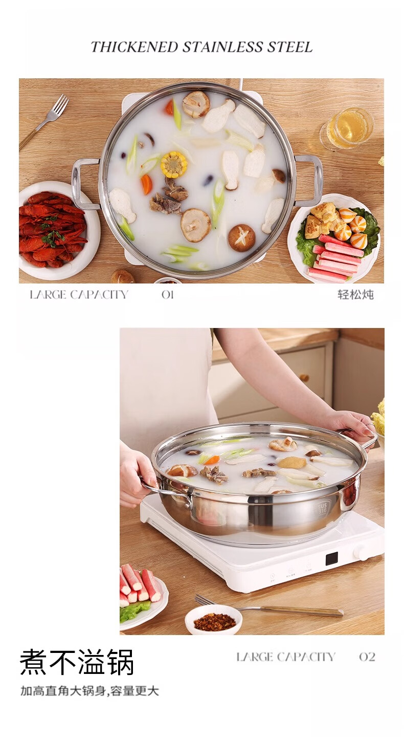 Hanxiao food grade thickened 316 stainless steel soup pot induction cooker hot pot special pot household large capacity hot pot basin German brand 316 soup pot four-piece set 32cm