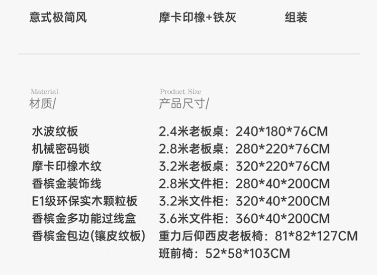 Hengsheng high-end desk boss desk light luxury chairman president executive desk general manager modern office desk and chair combination 2.4m boss desk + gravity reclining boss chair