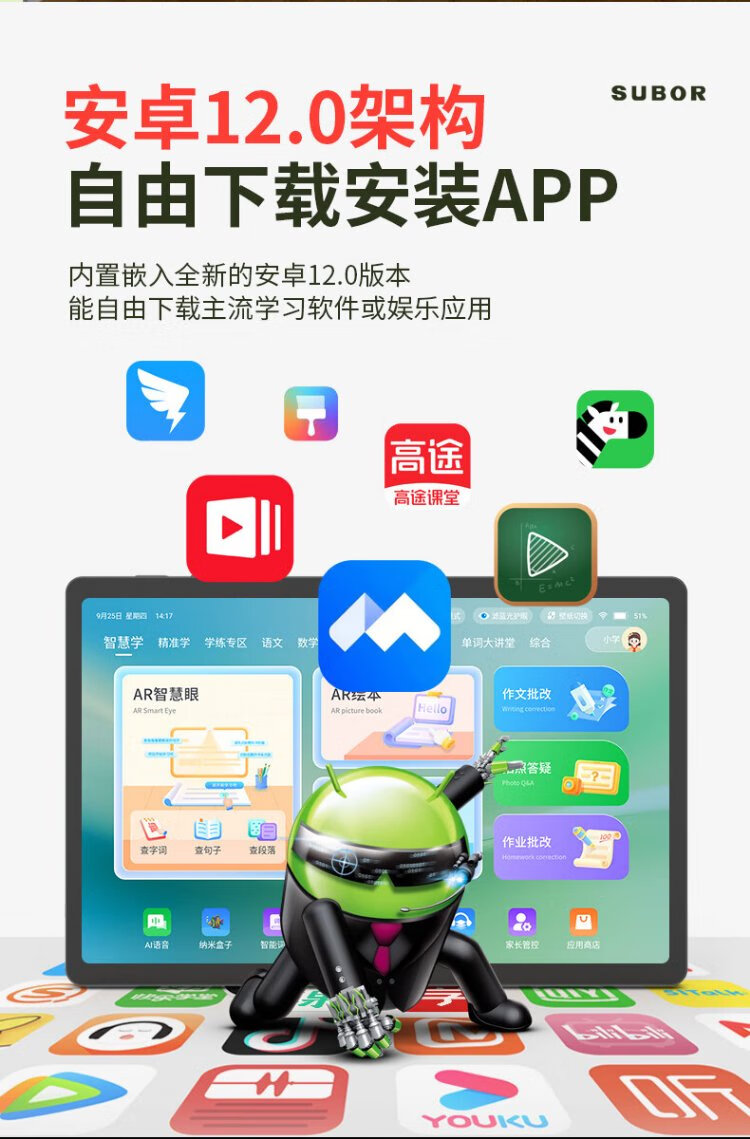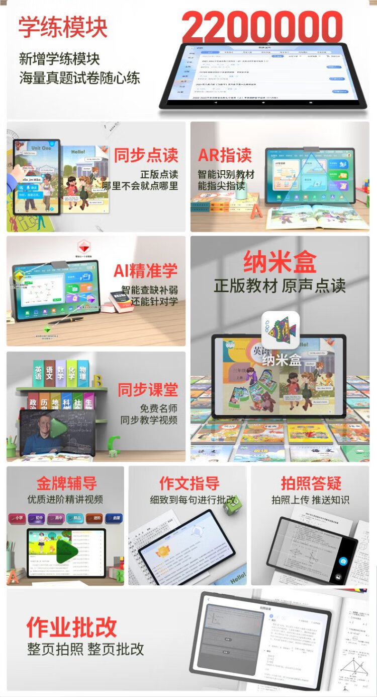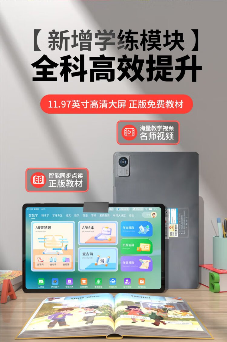 Xiaobawang M7 learning machine, primary school to high school training machine, 11.97-inch eye protection screen 12+512G, tablet teaching materials for children, junior high school students, synchronous tutoring, homework education, helping children, standard version 12+512G new teaching materials + textbook synchronization + photo answering